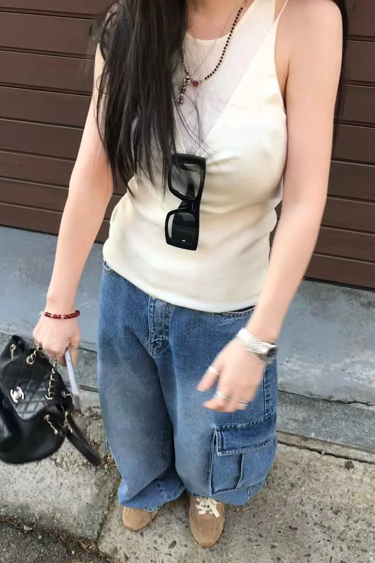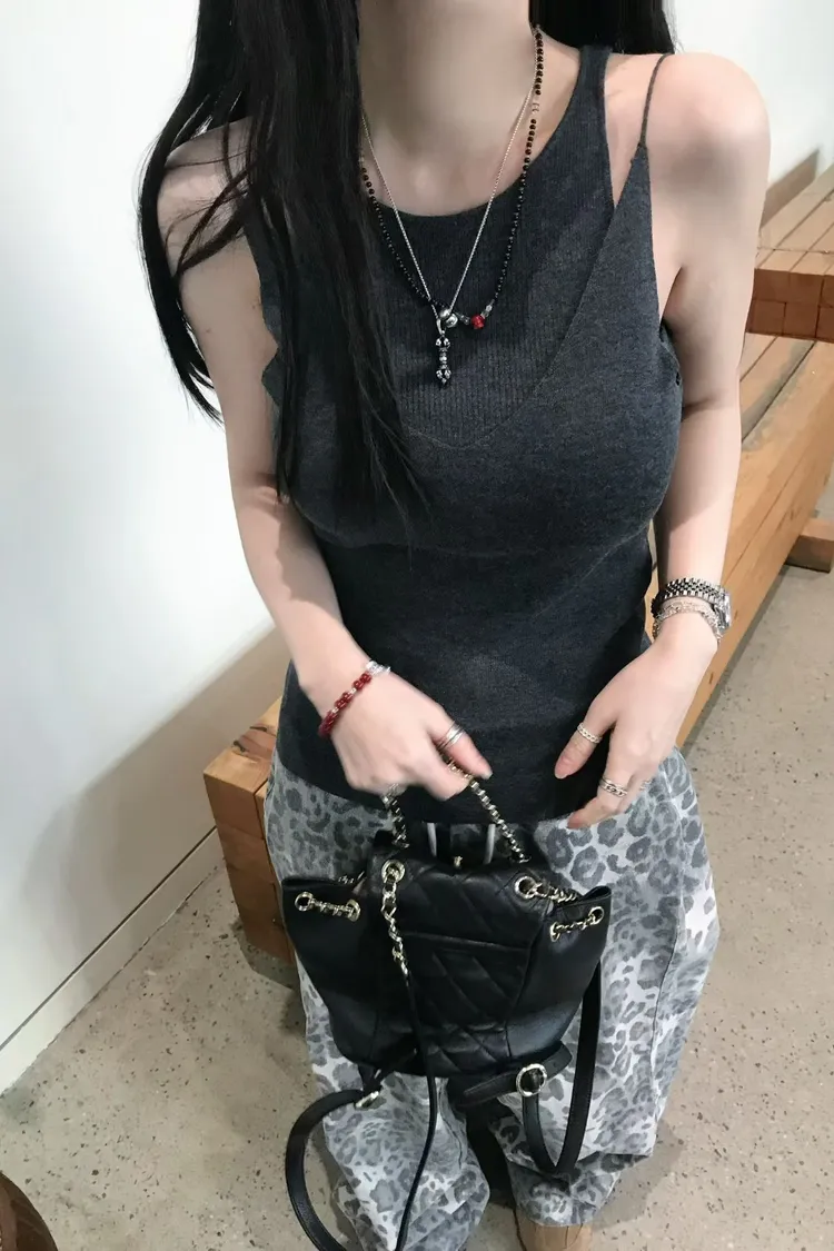 削肩背心+細肩帶真兩件上衣(墨.藍斷)