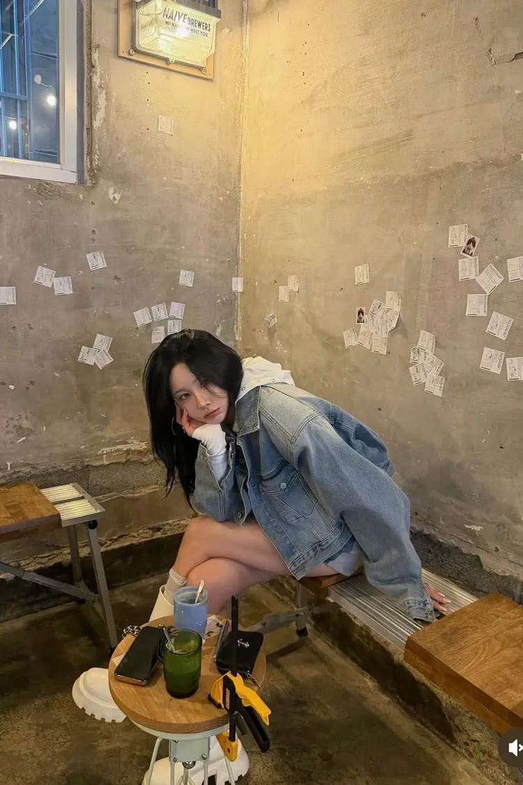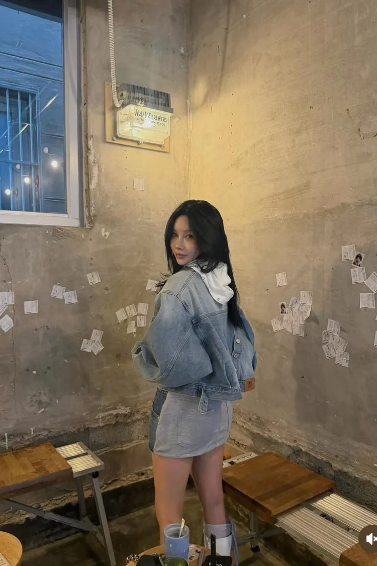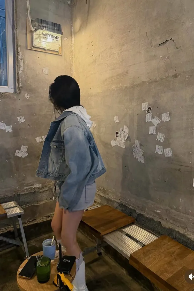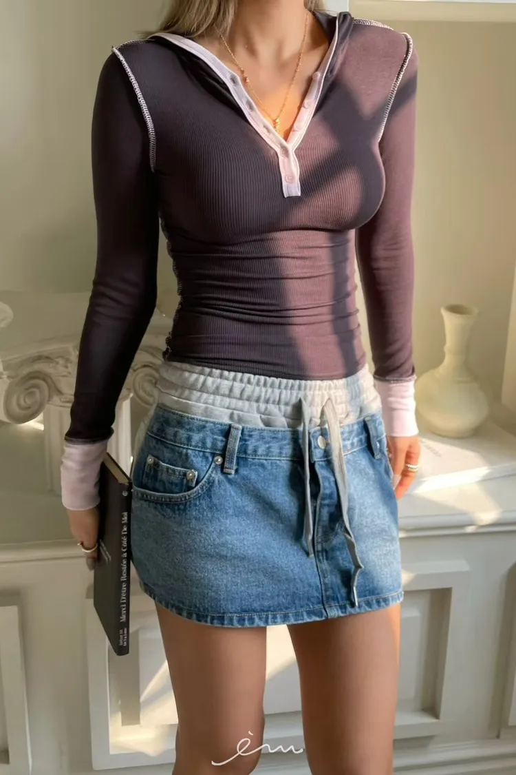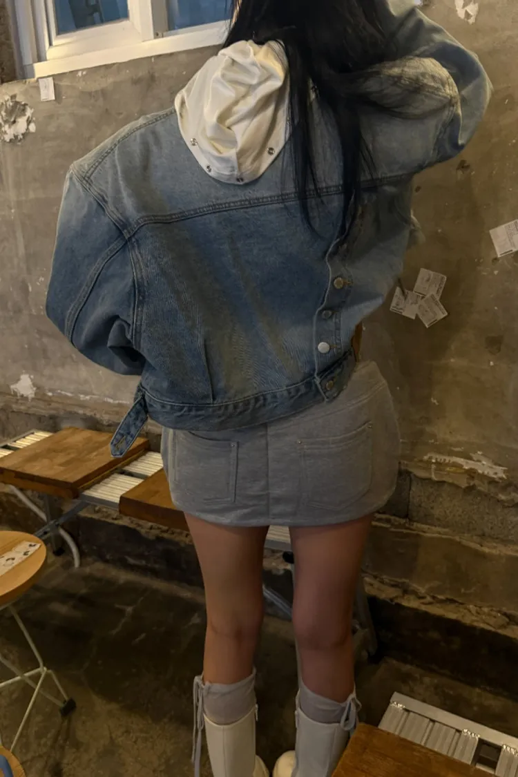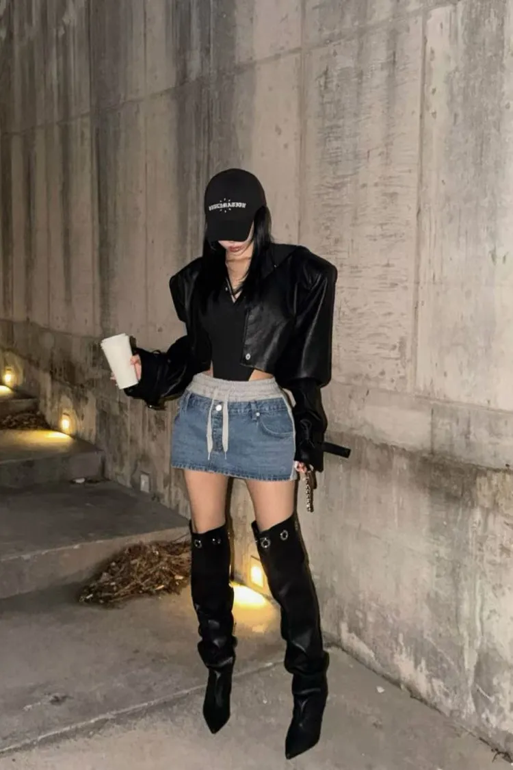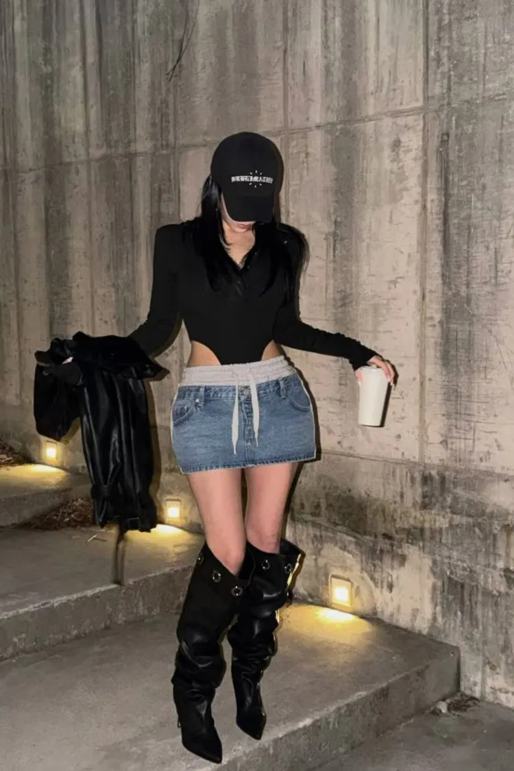 拼異材質抽牛仔短裙