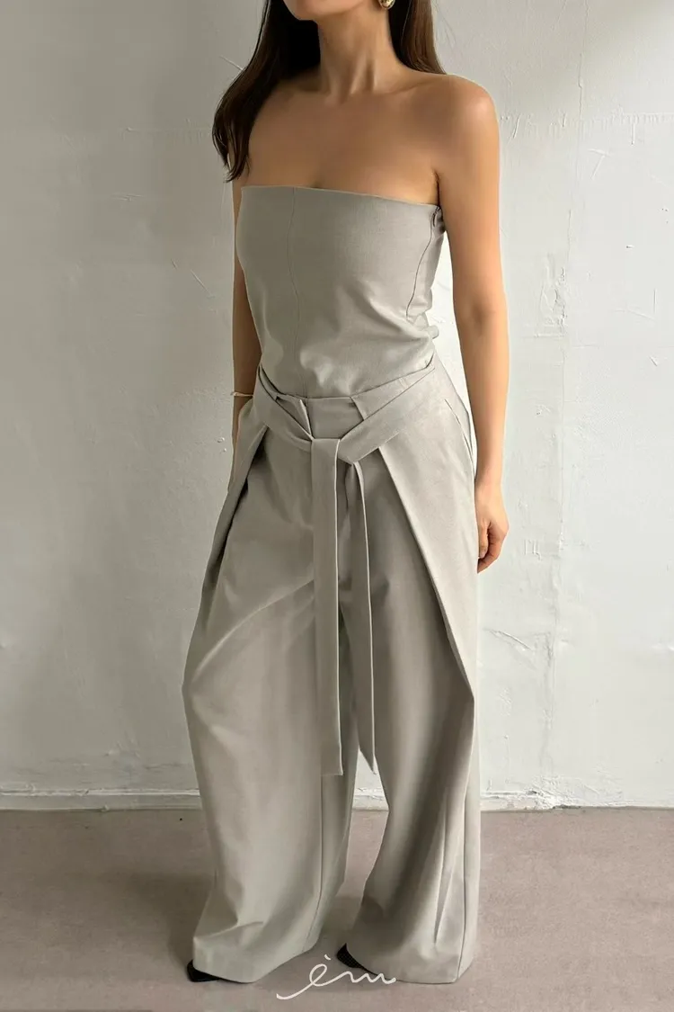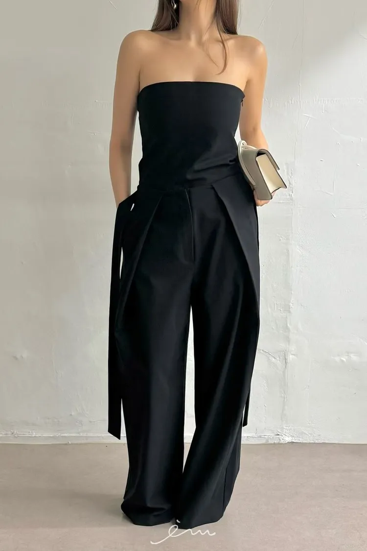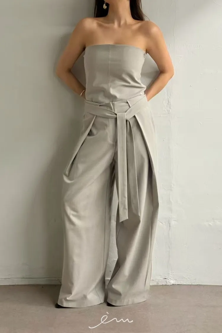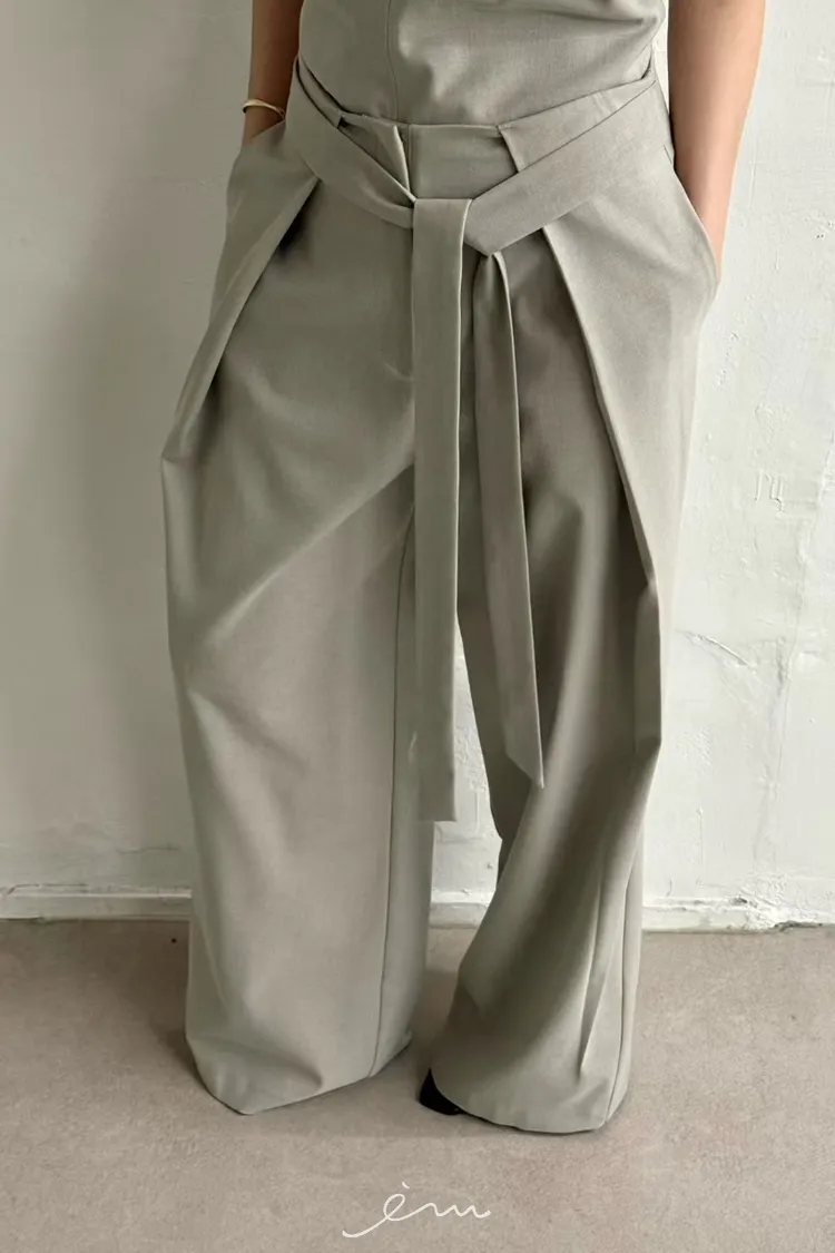 綁腰帶打摺長褲