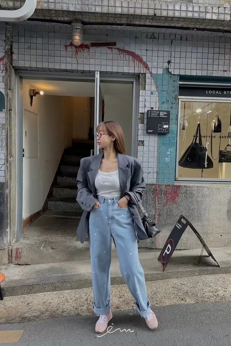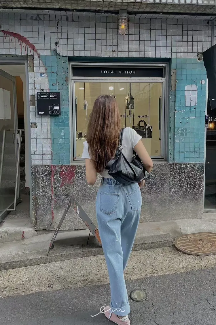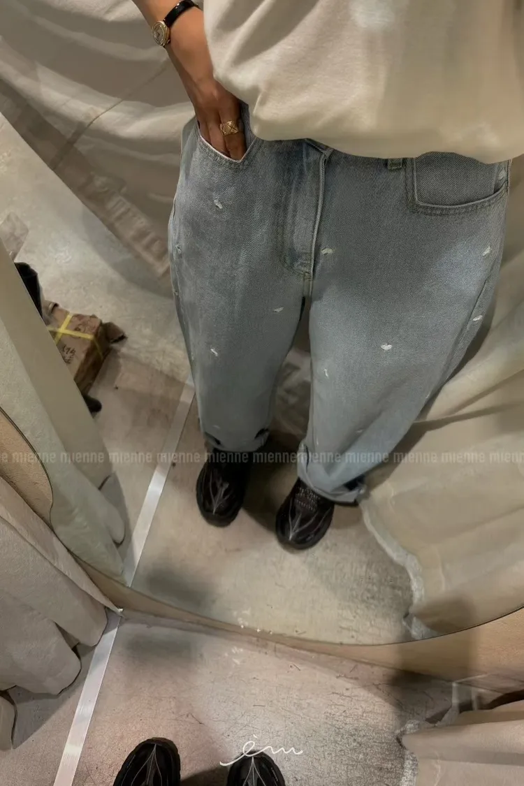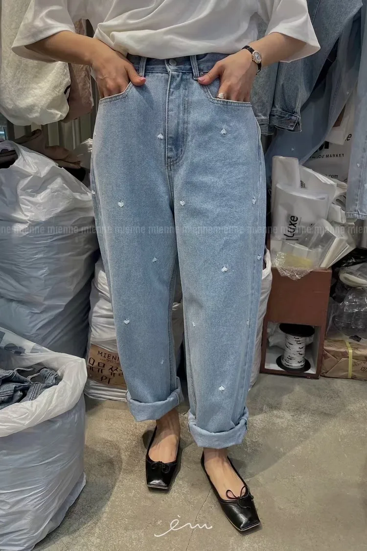 MI滿版刺繡愛心牛仔褲