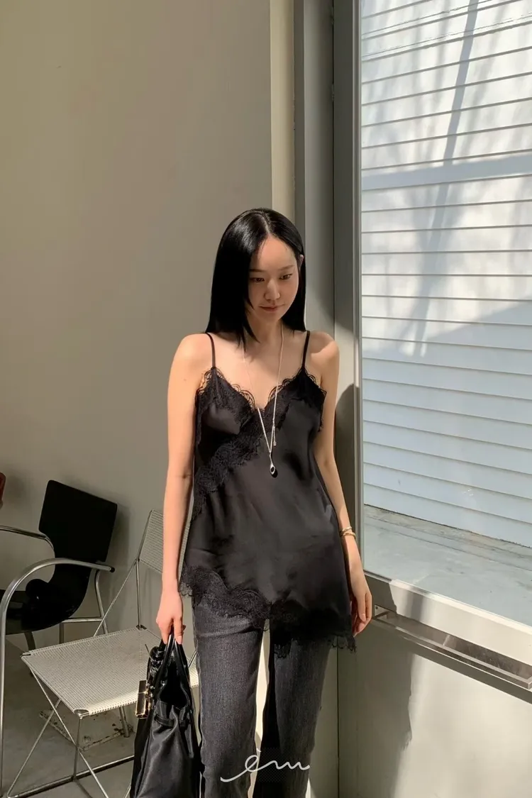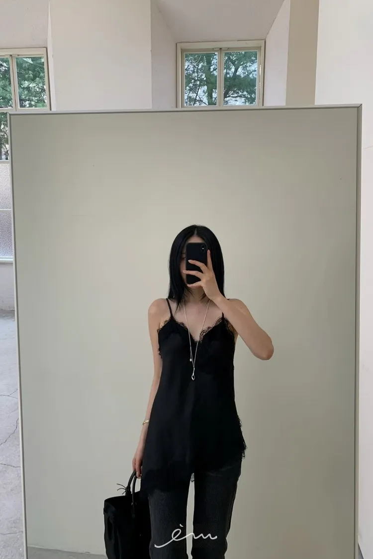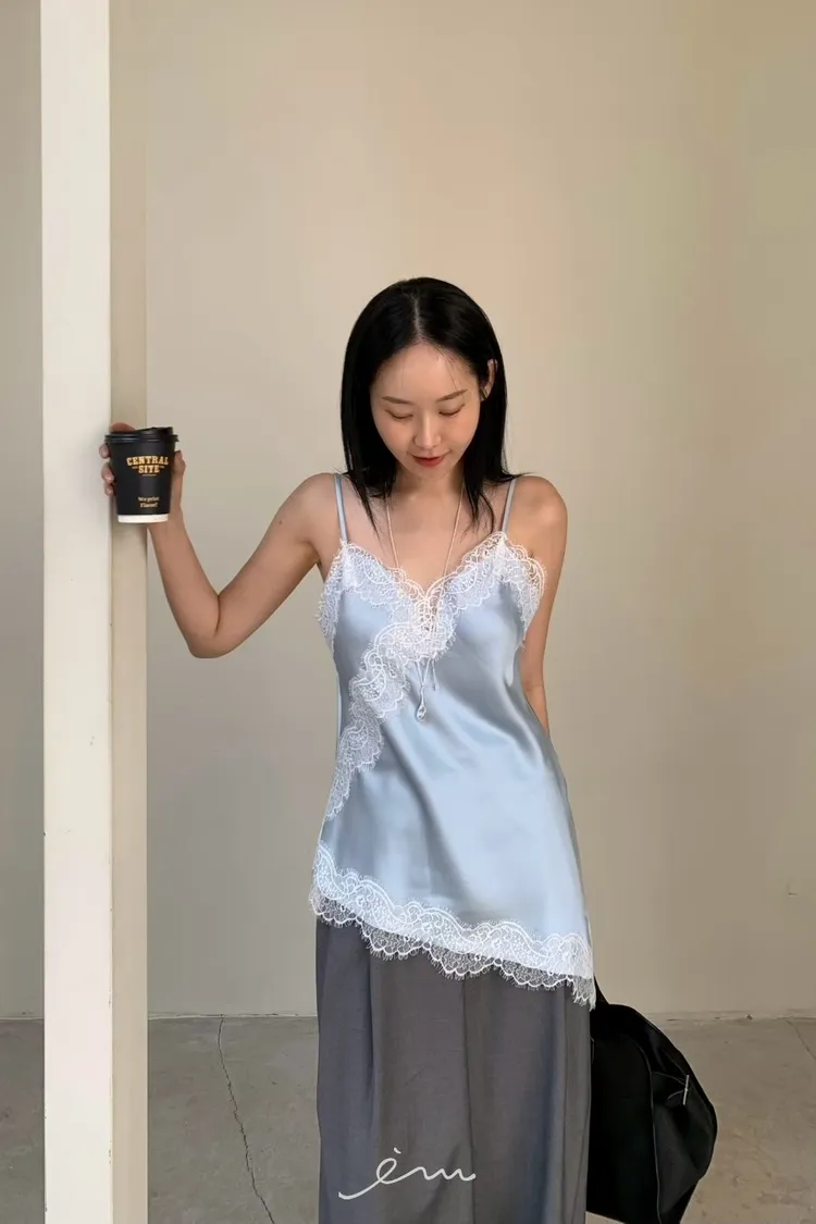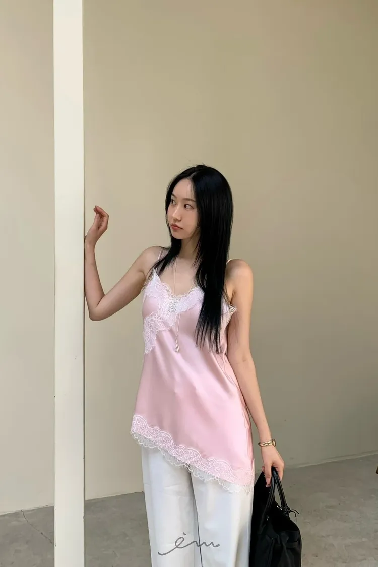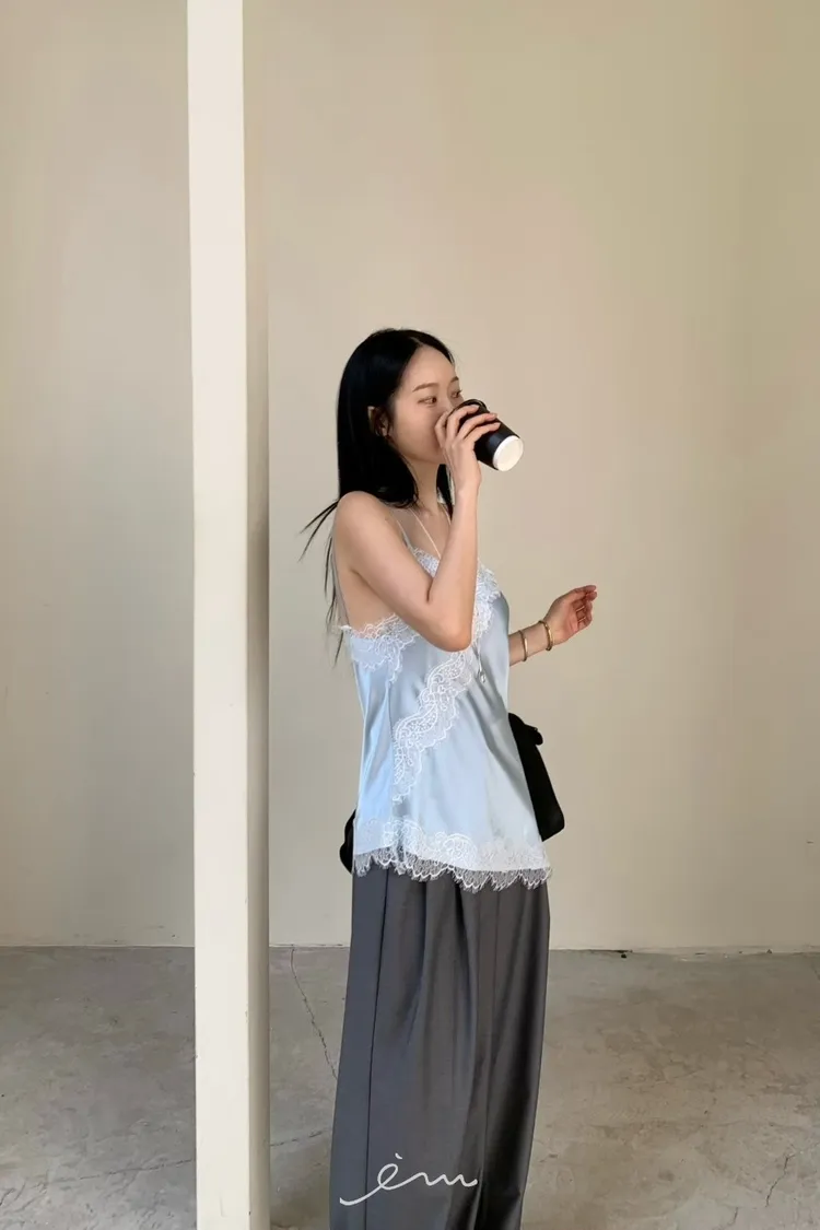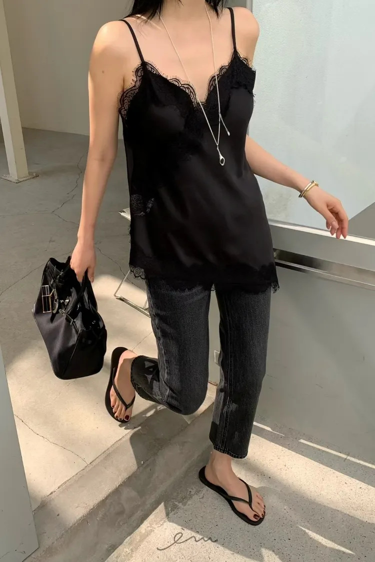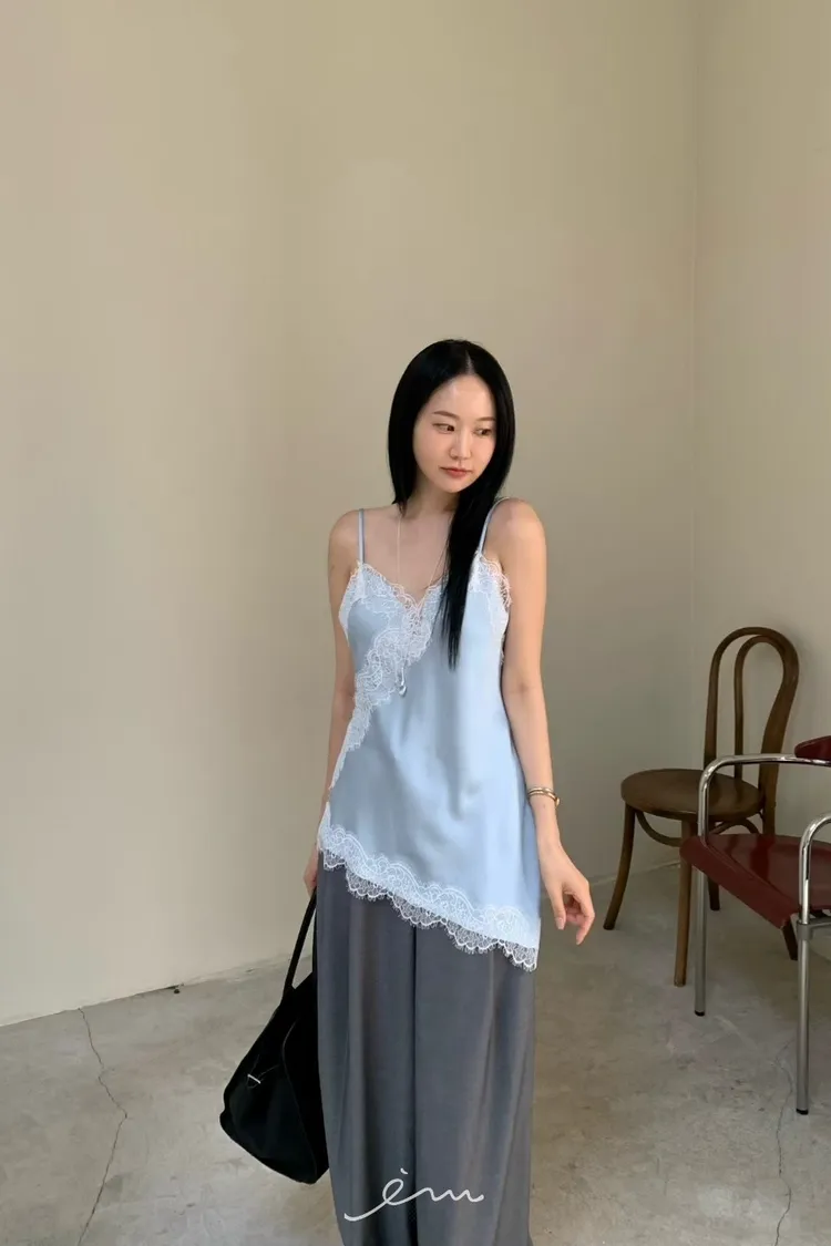 HO下斜邊蕾絲細肩背心(肉0清單)