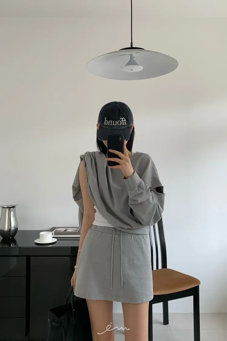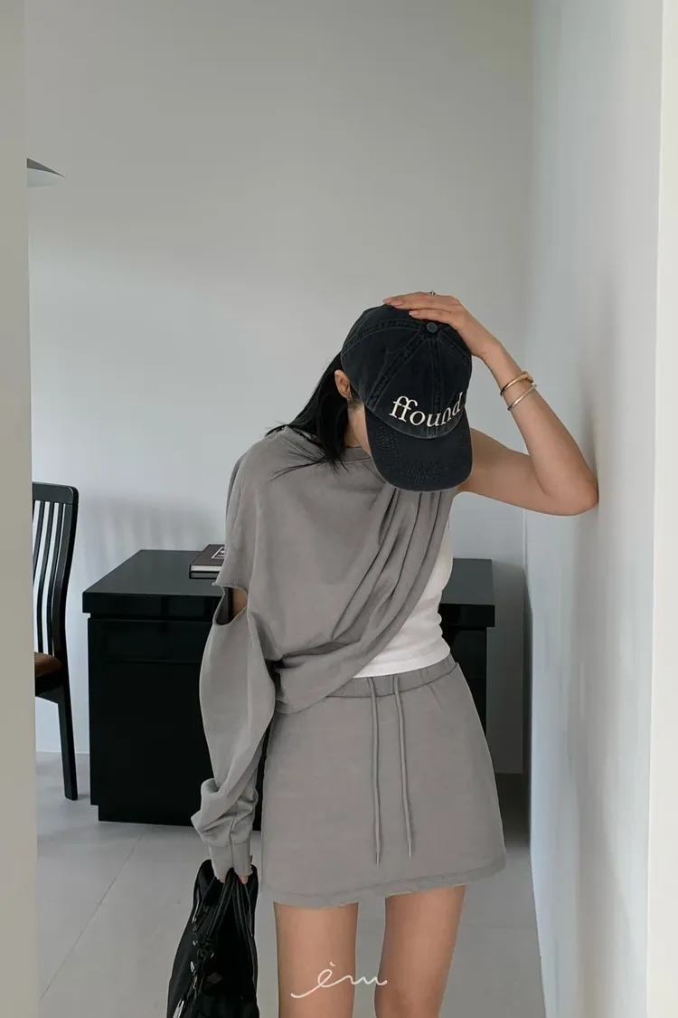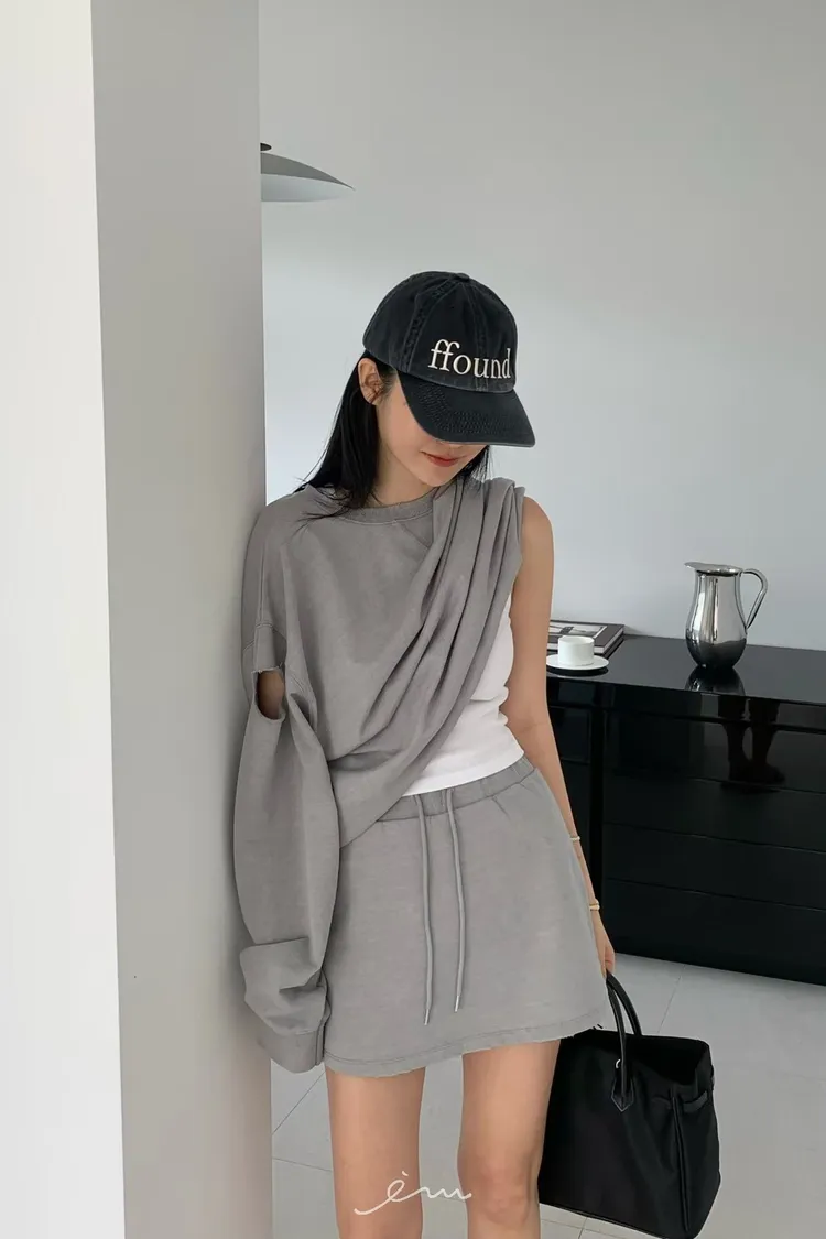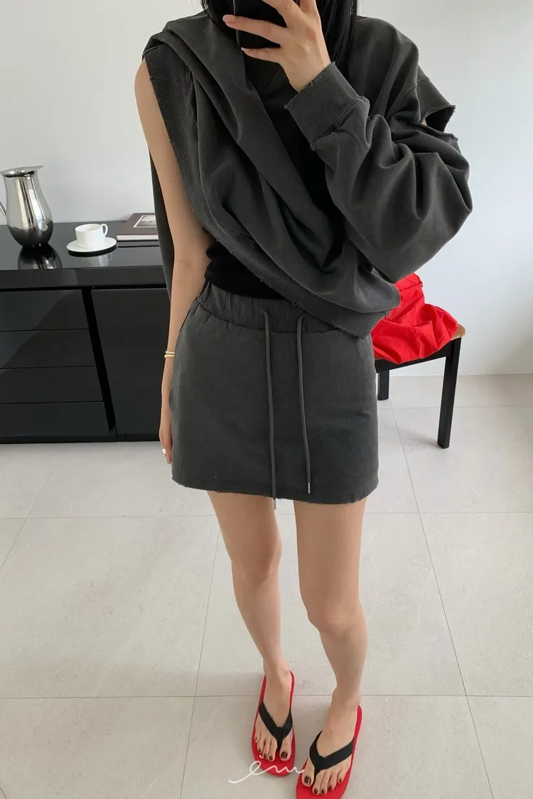 HO抽繩素面下小破損褲裙