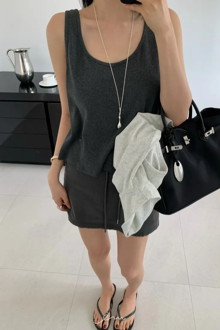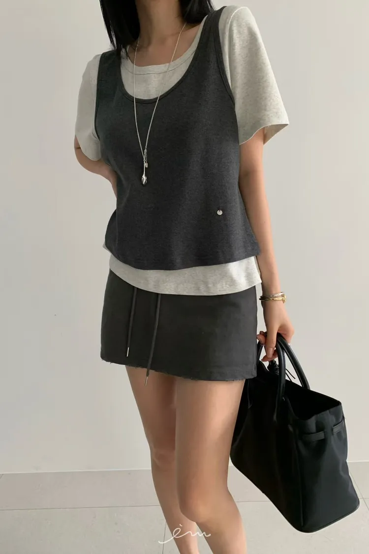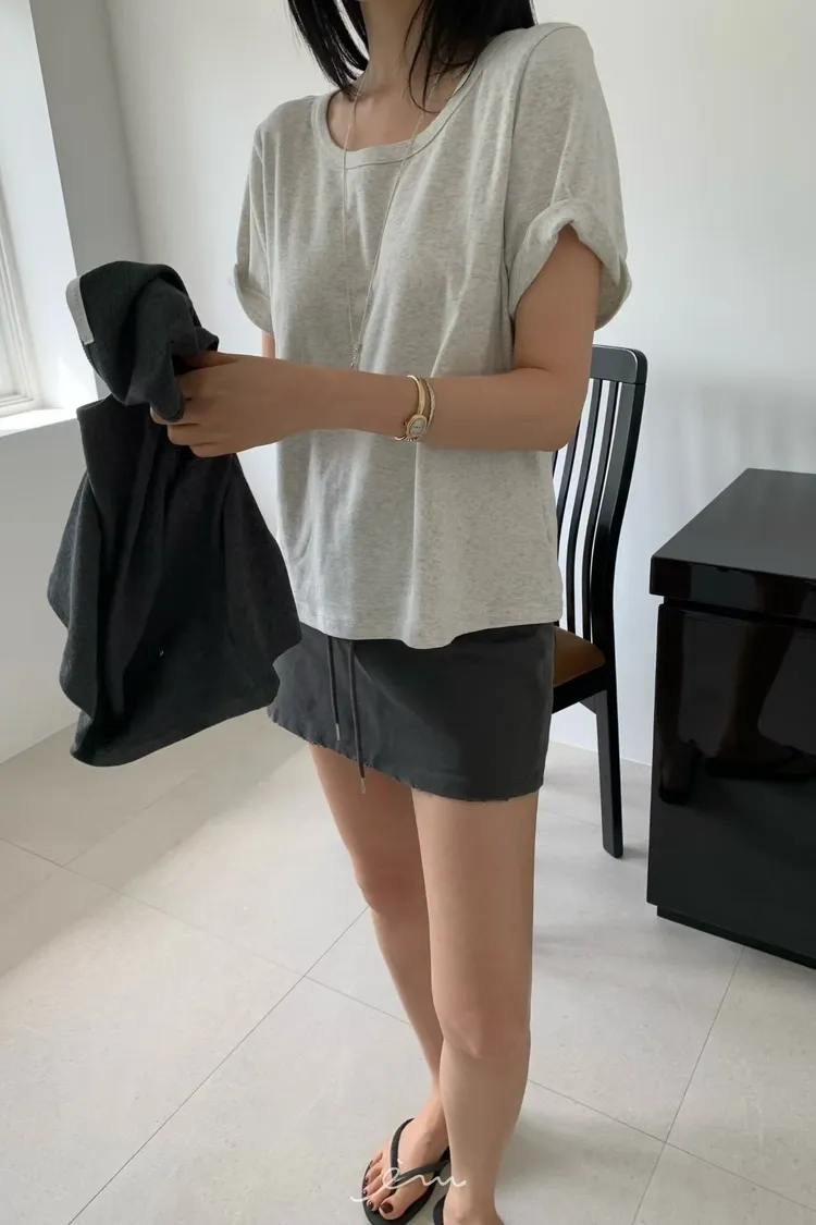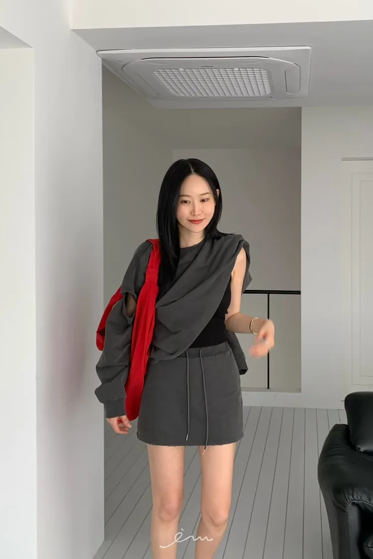 HO抽繩素面下小破損褲裙