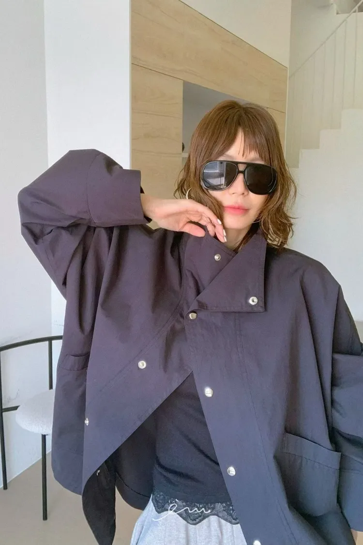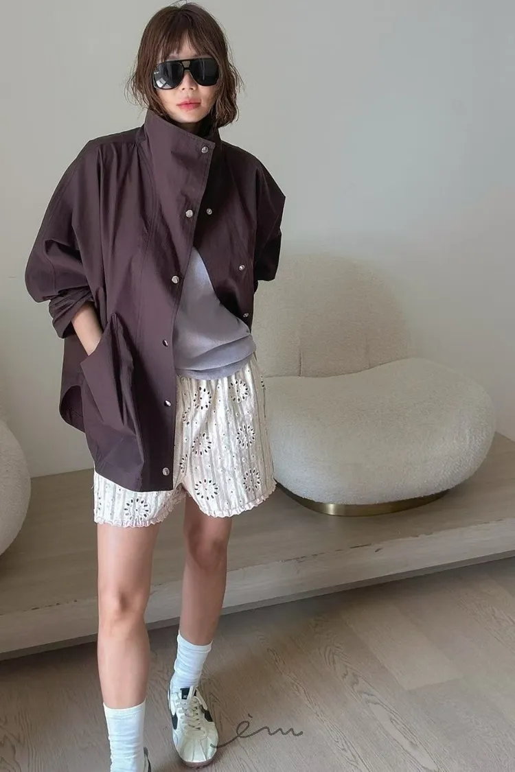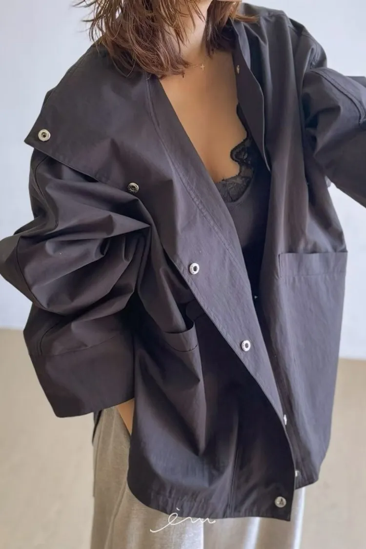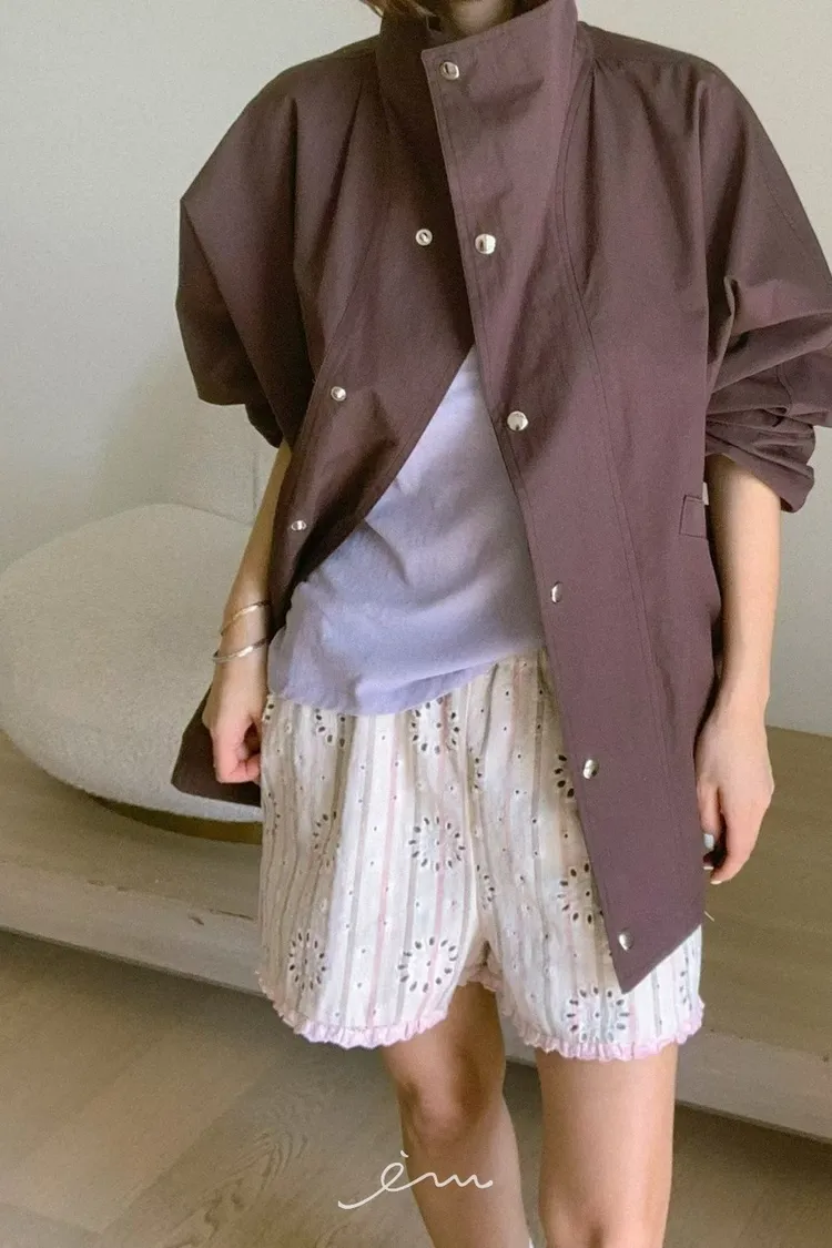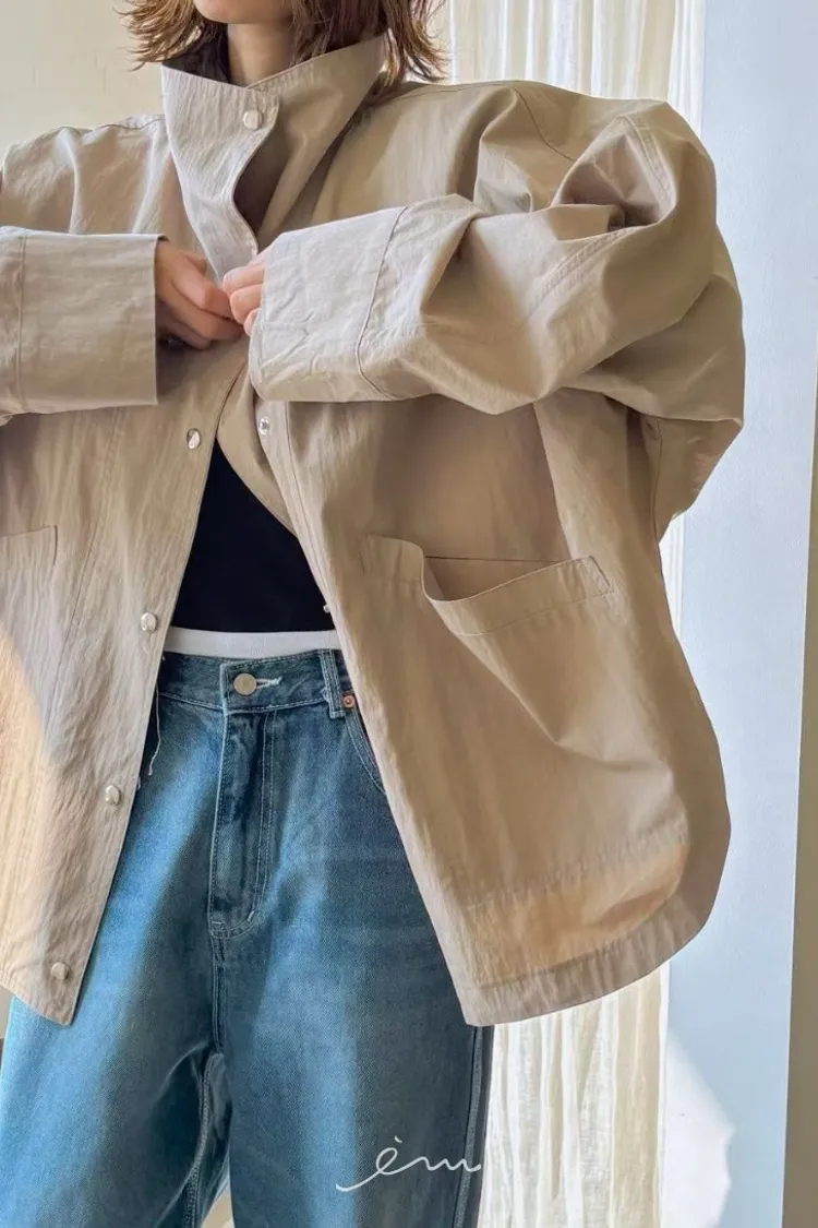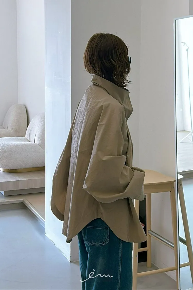 PA高領壓釦下圓弧外套
