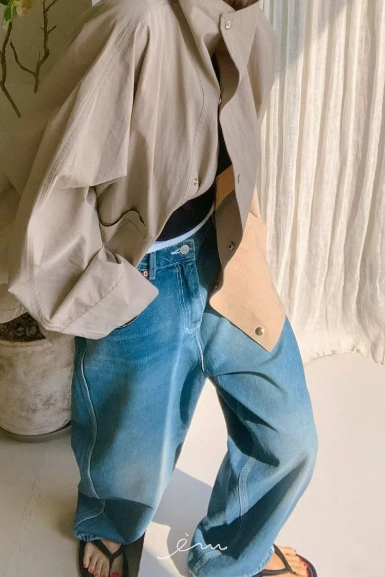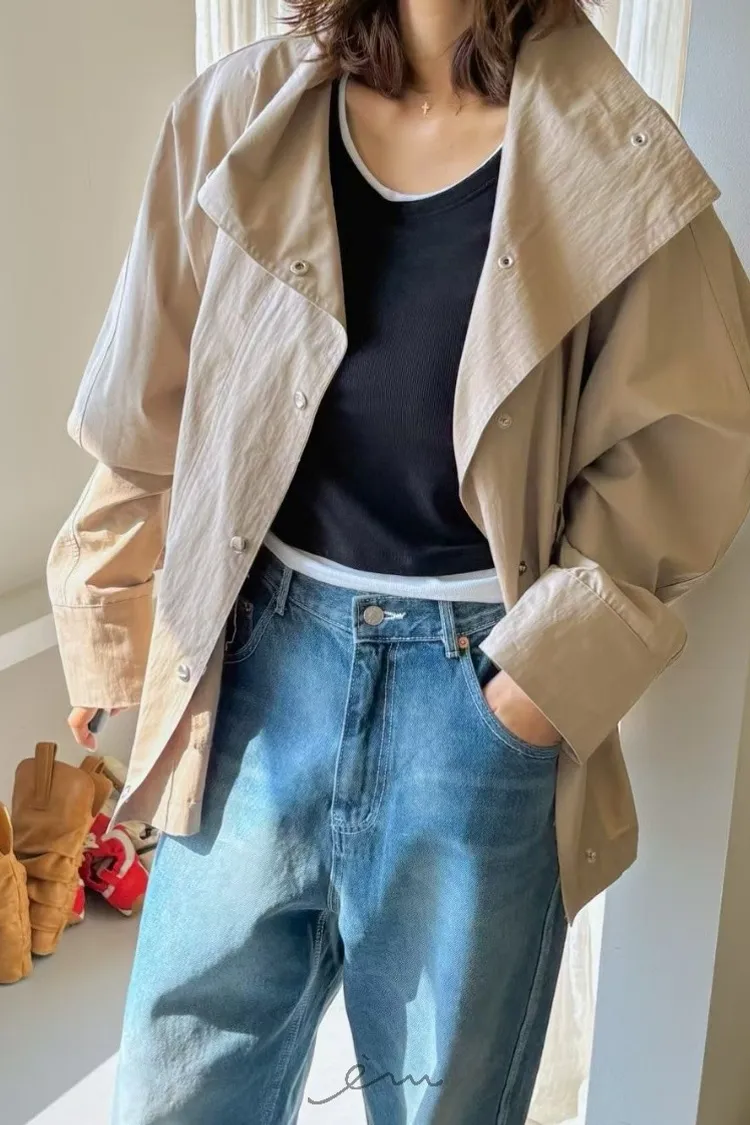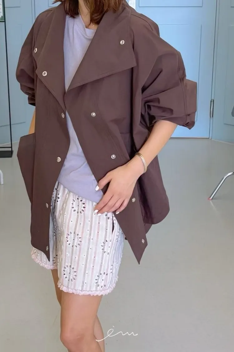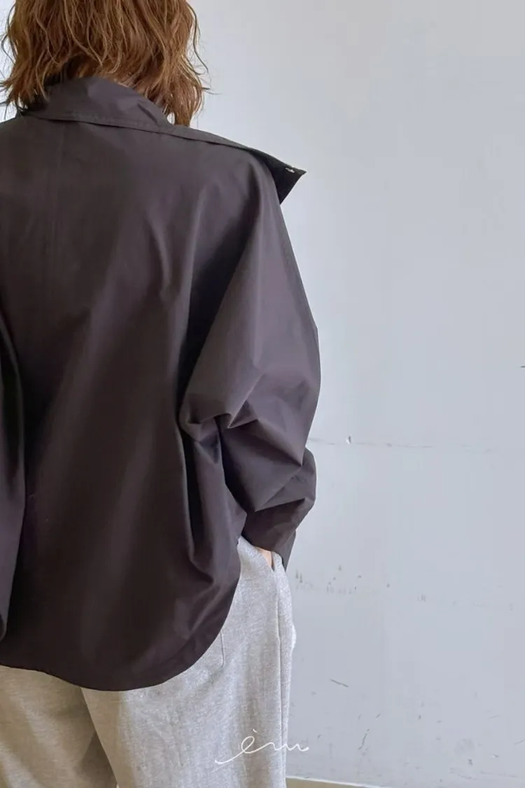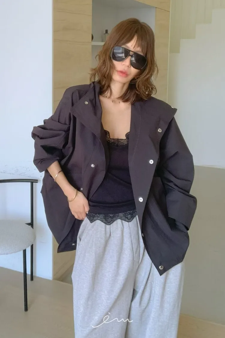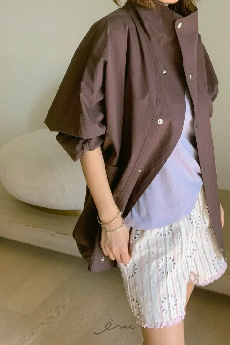 PA高領壓釦下圓弧外套