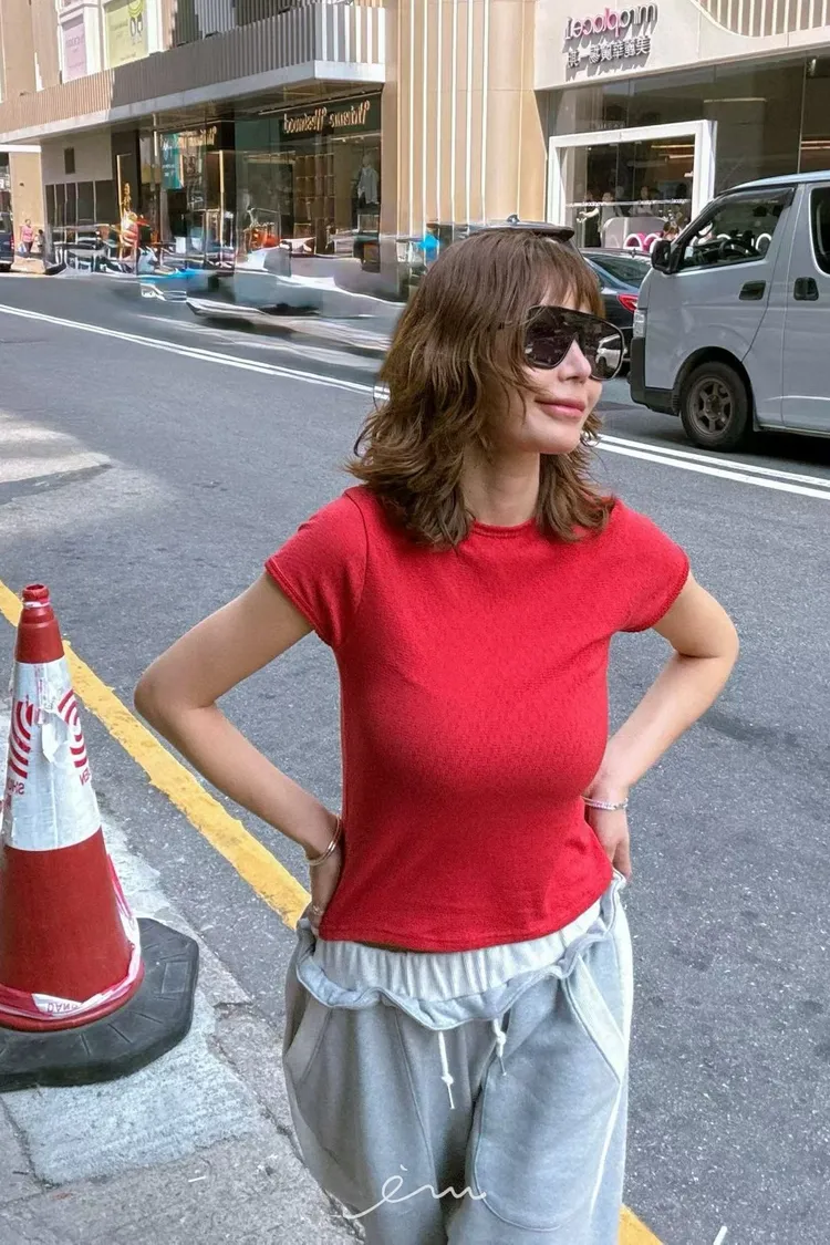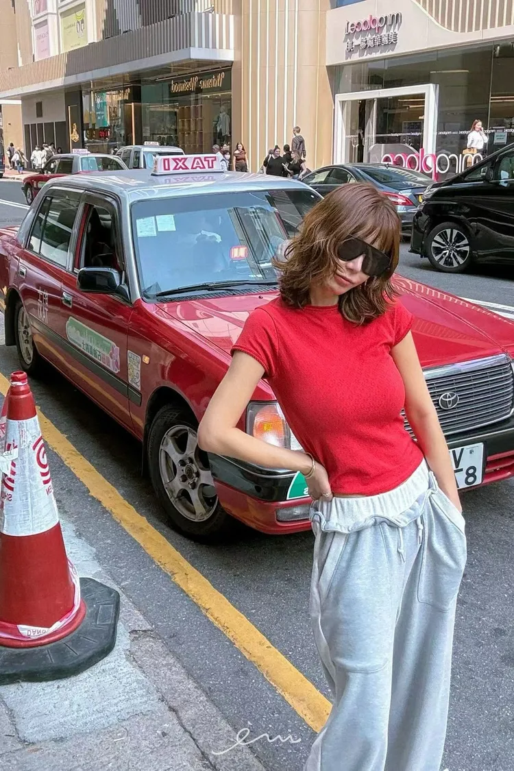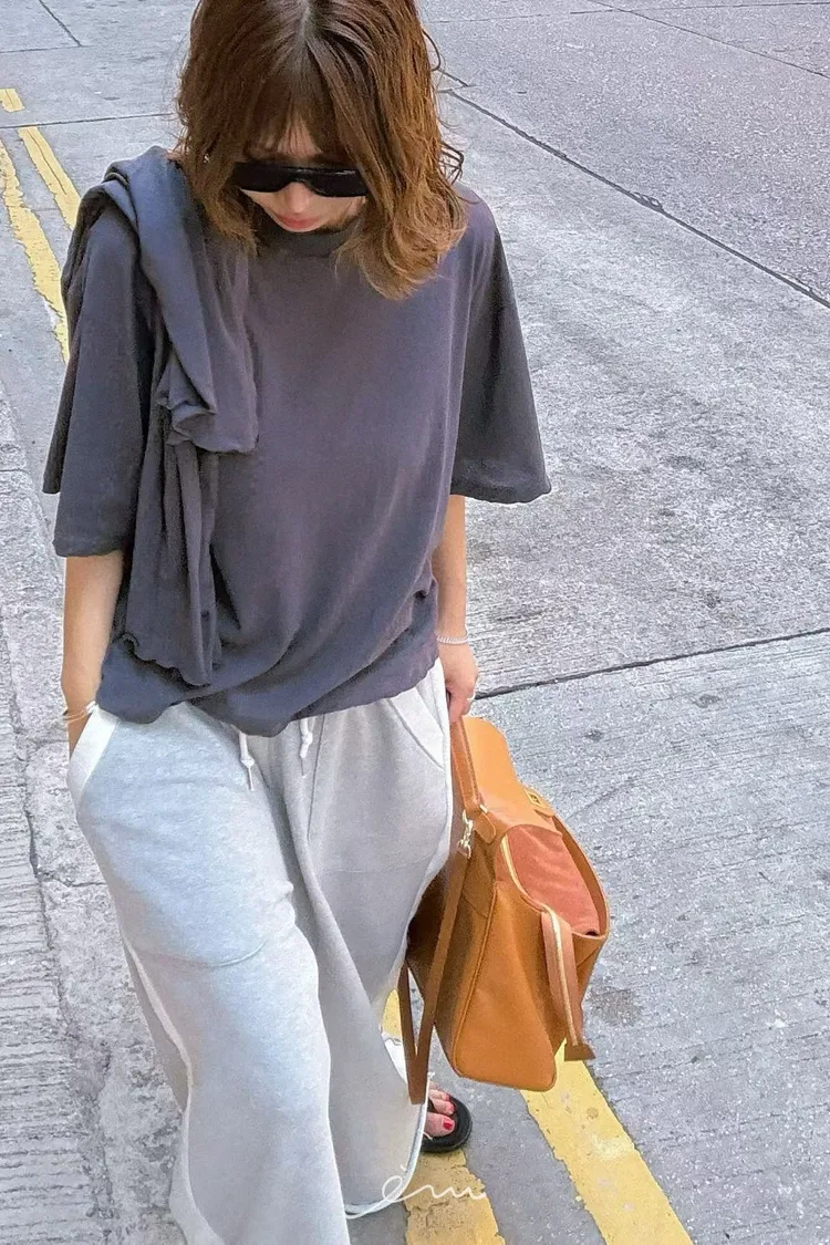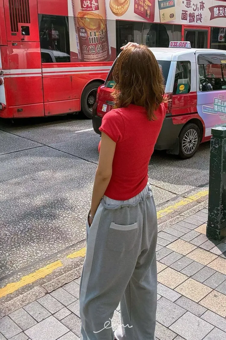 PA撞色邊抽繩長褲