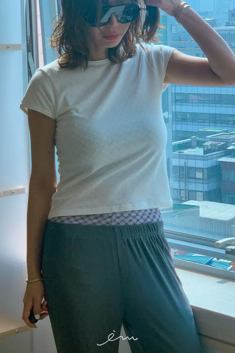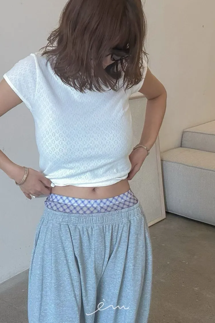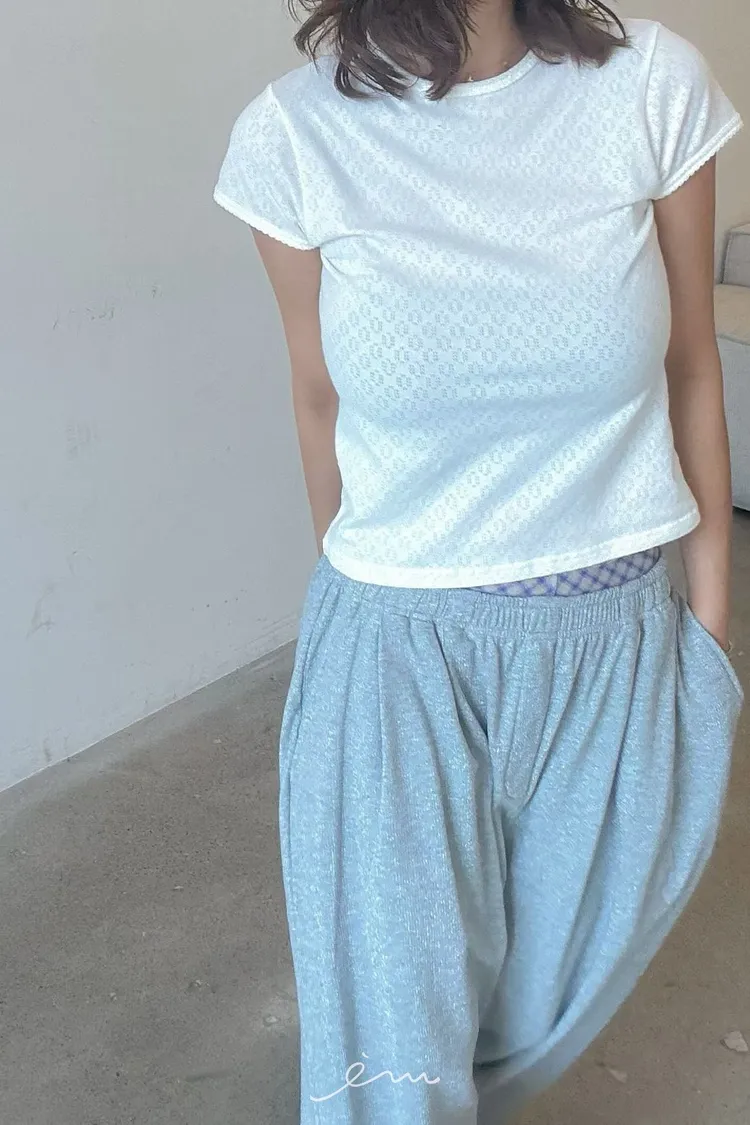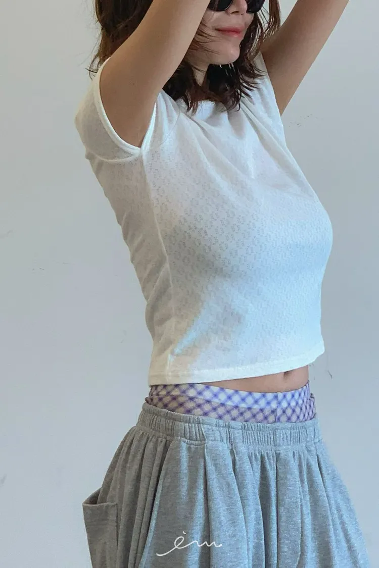 PA洞洞短袖邊蕾絲素面T (肉0清單)