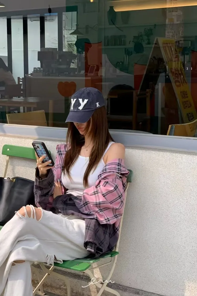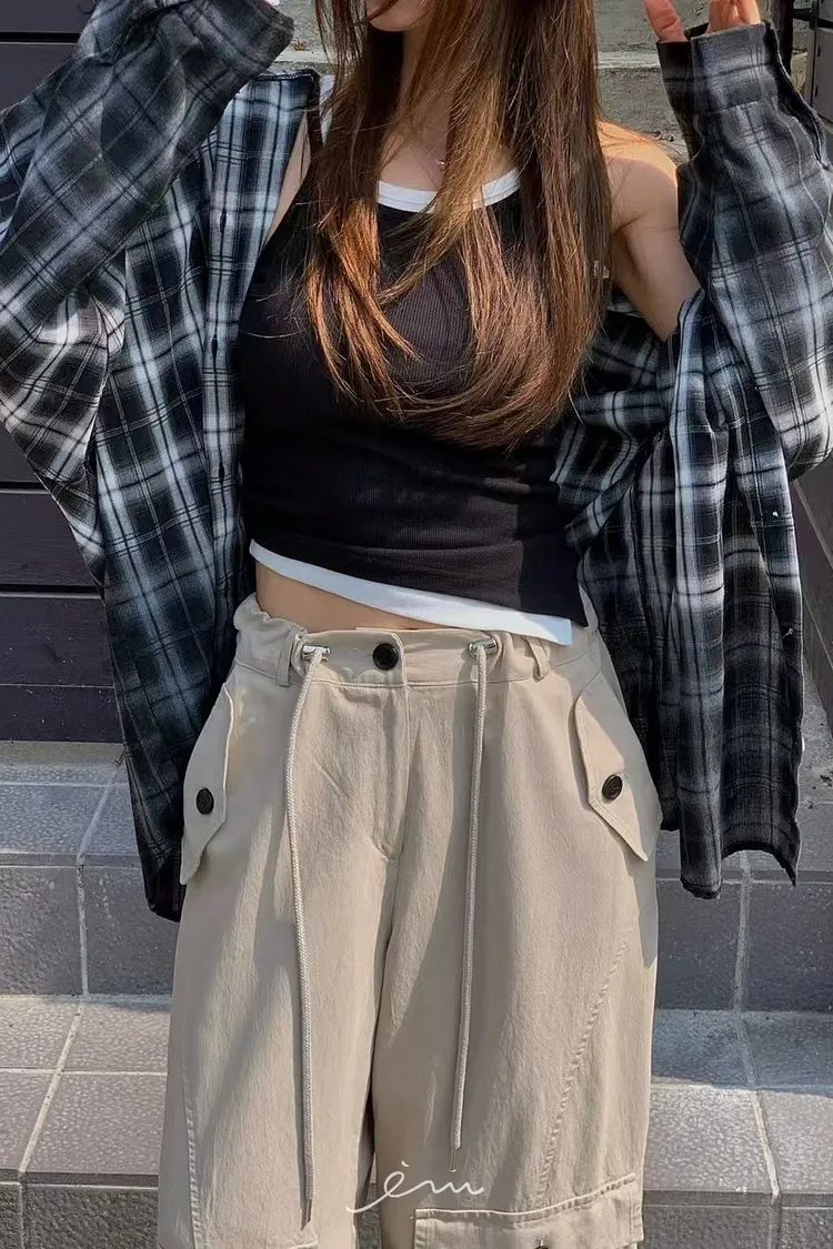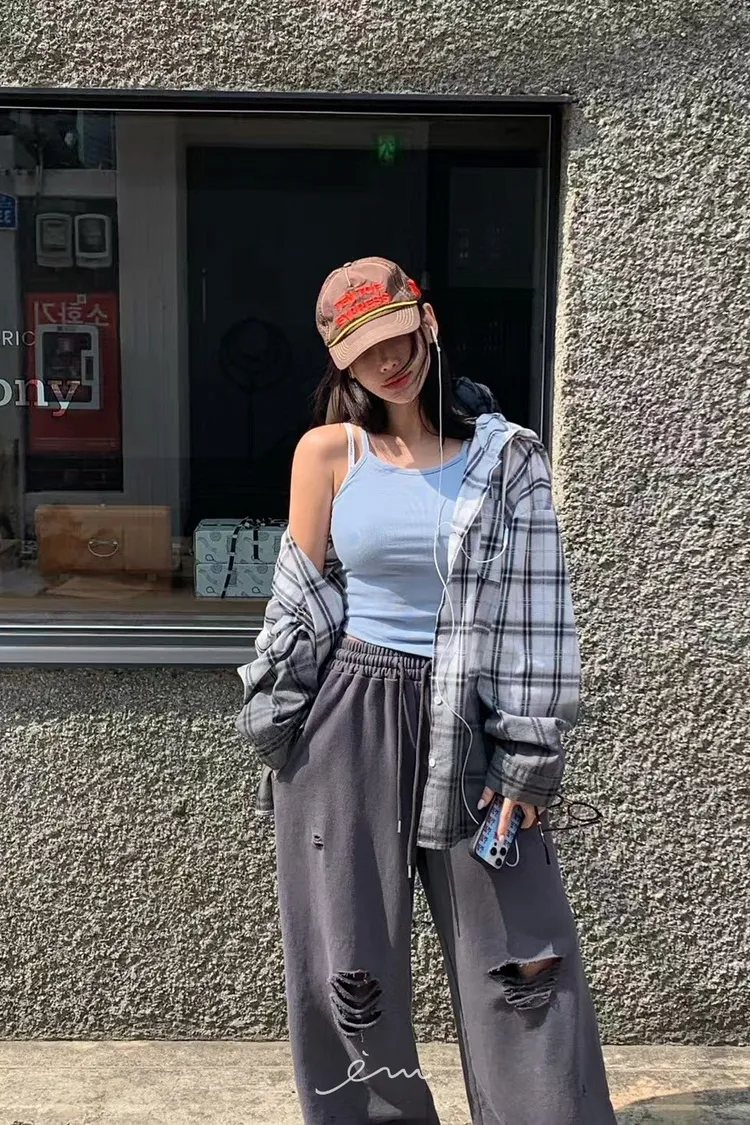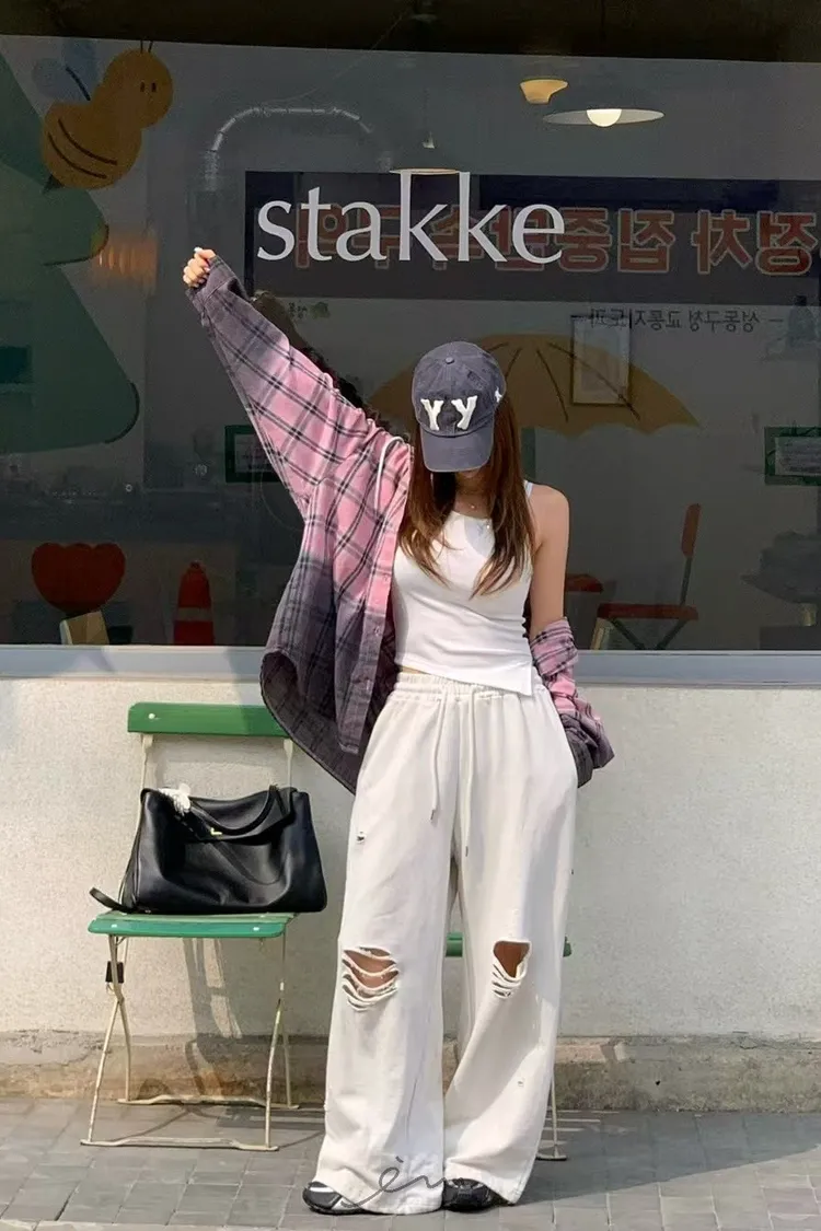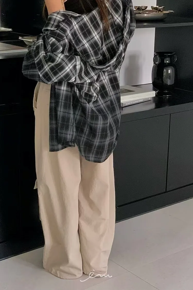 RE黑漸層格紋連帽襯衫