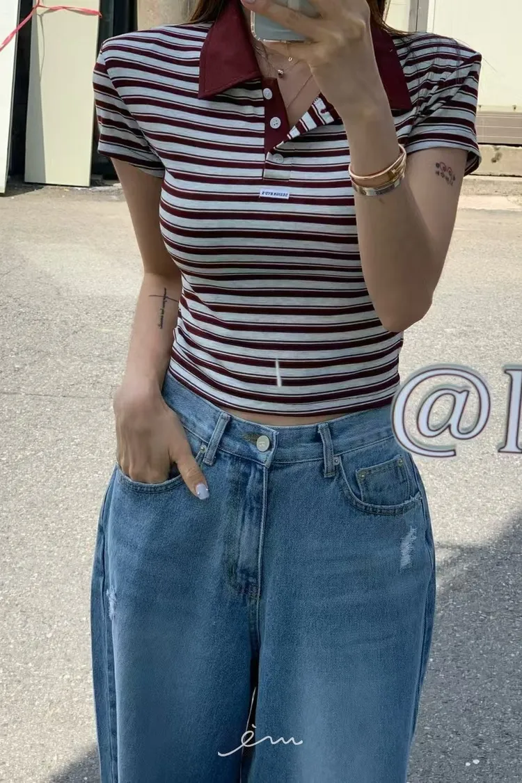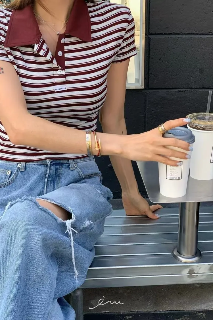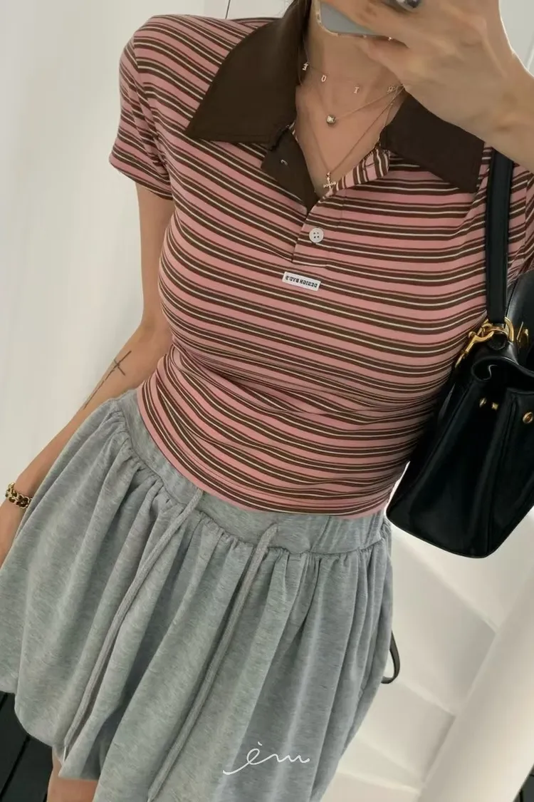 Re-條紋配色領polo衫(肉0清單)