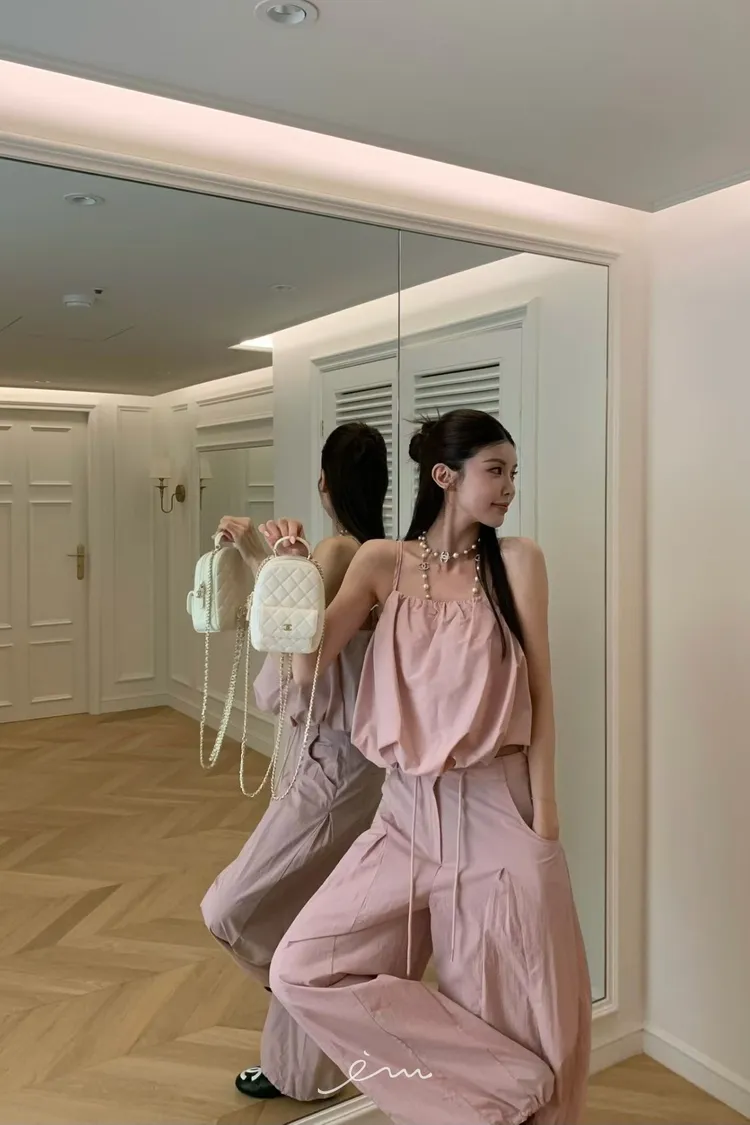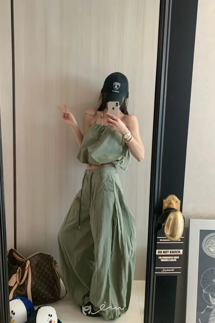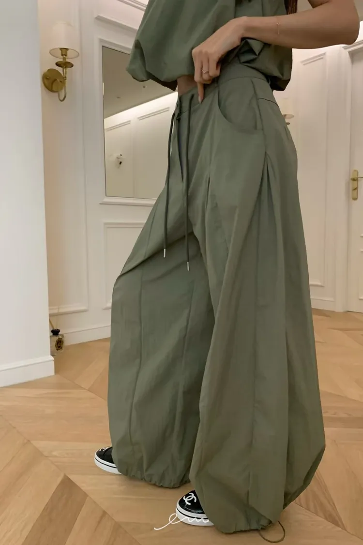 VK皺皺壓摺抽繩彎刀褲