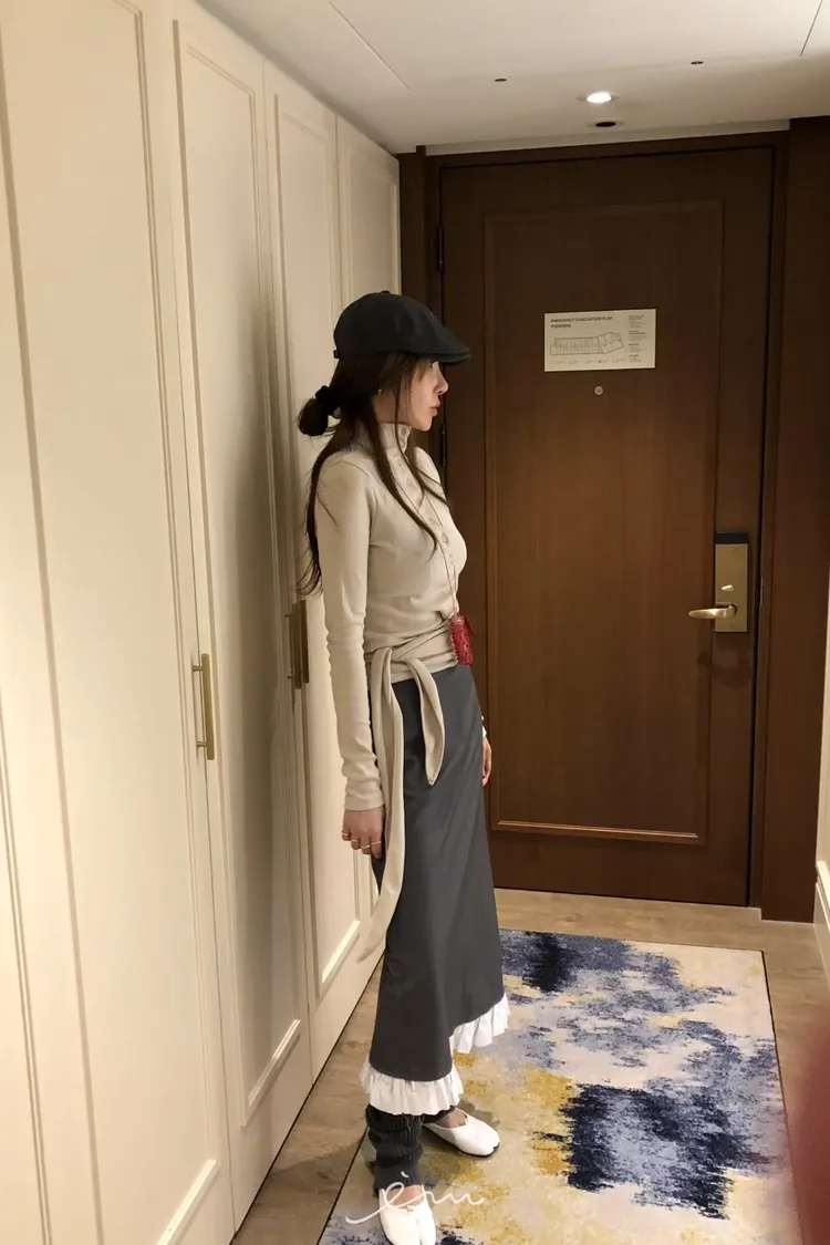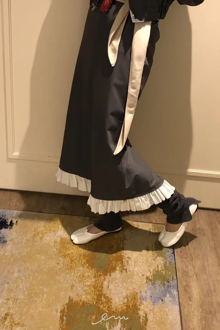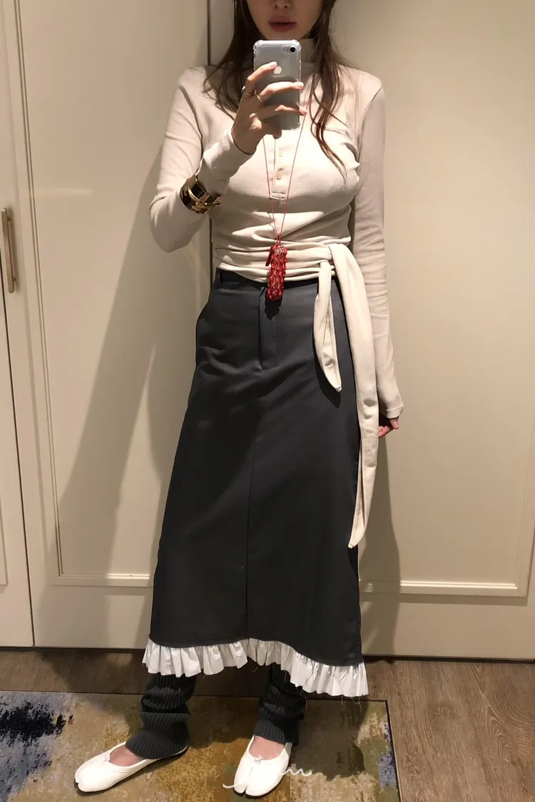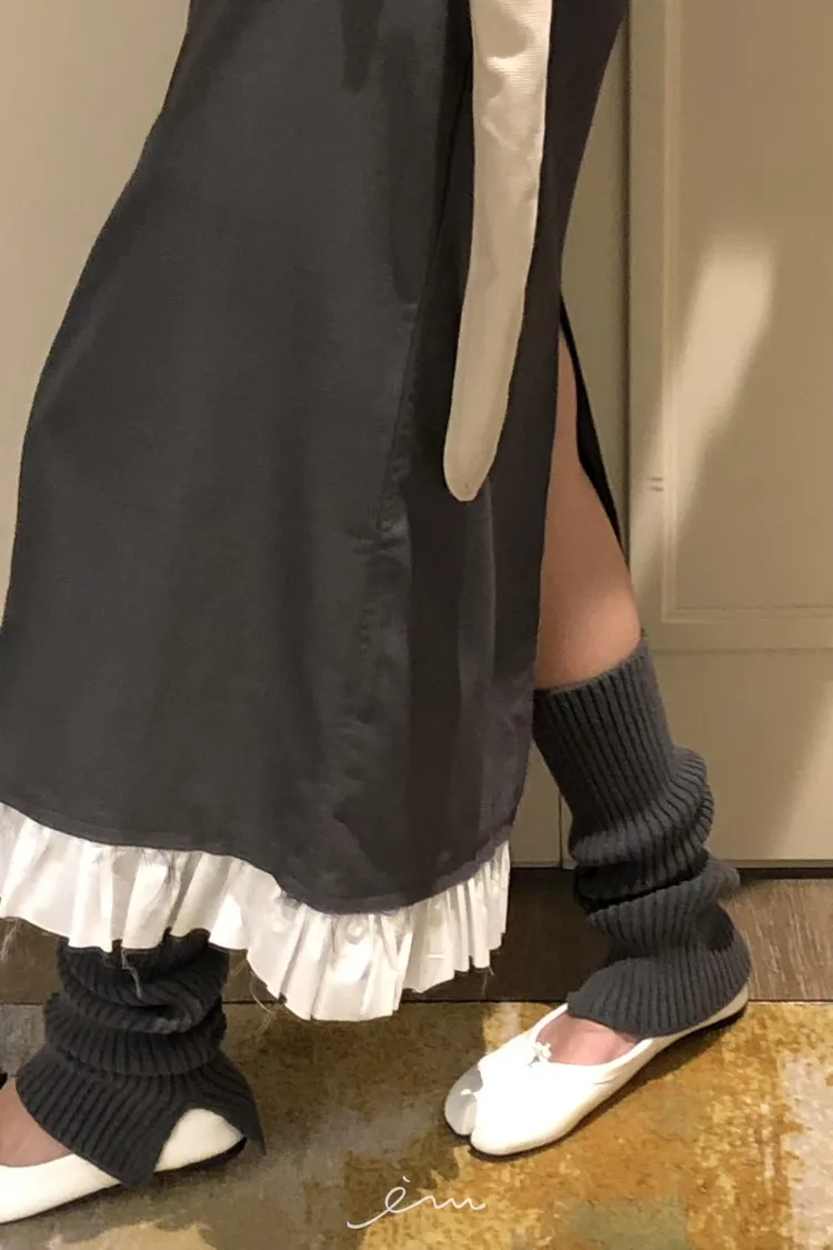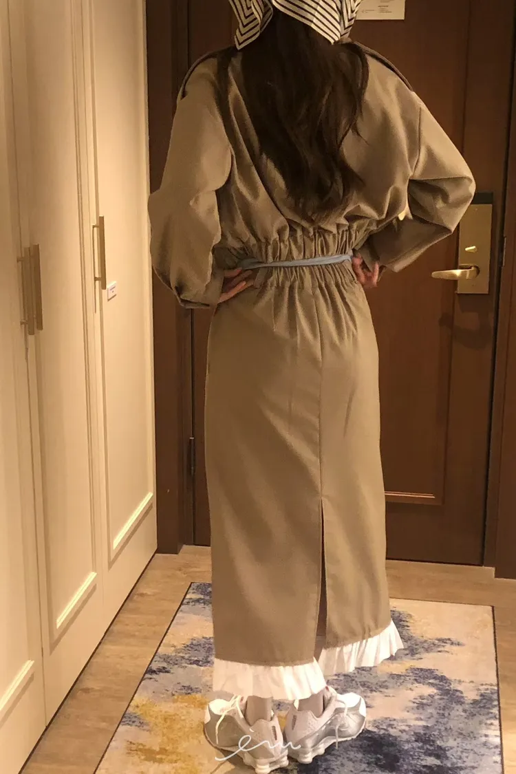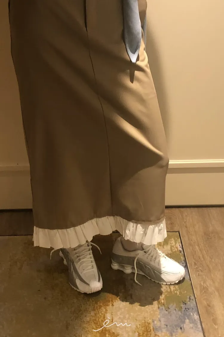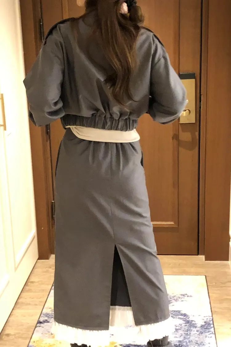 PER下荷葉隱藏釦後開岔長裙