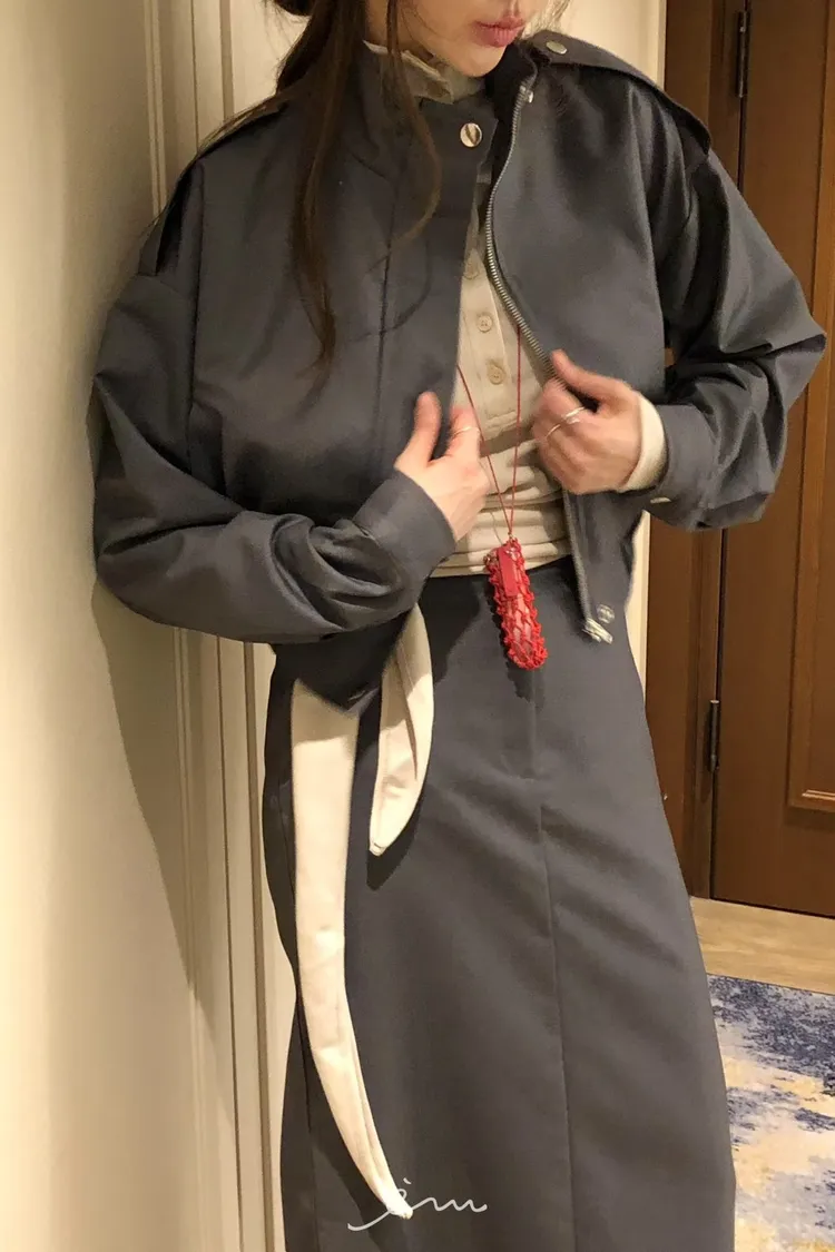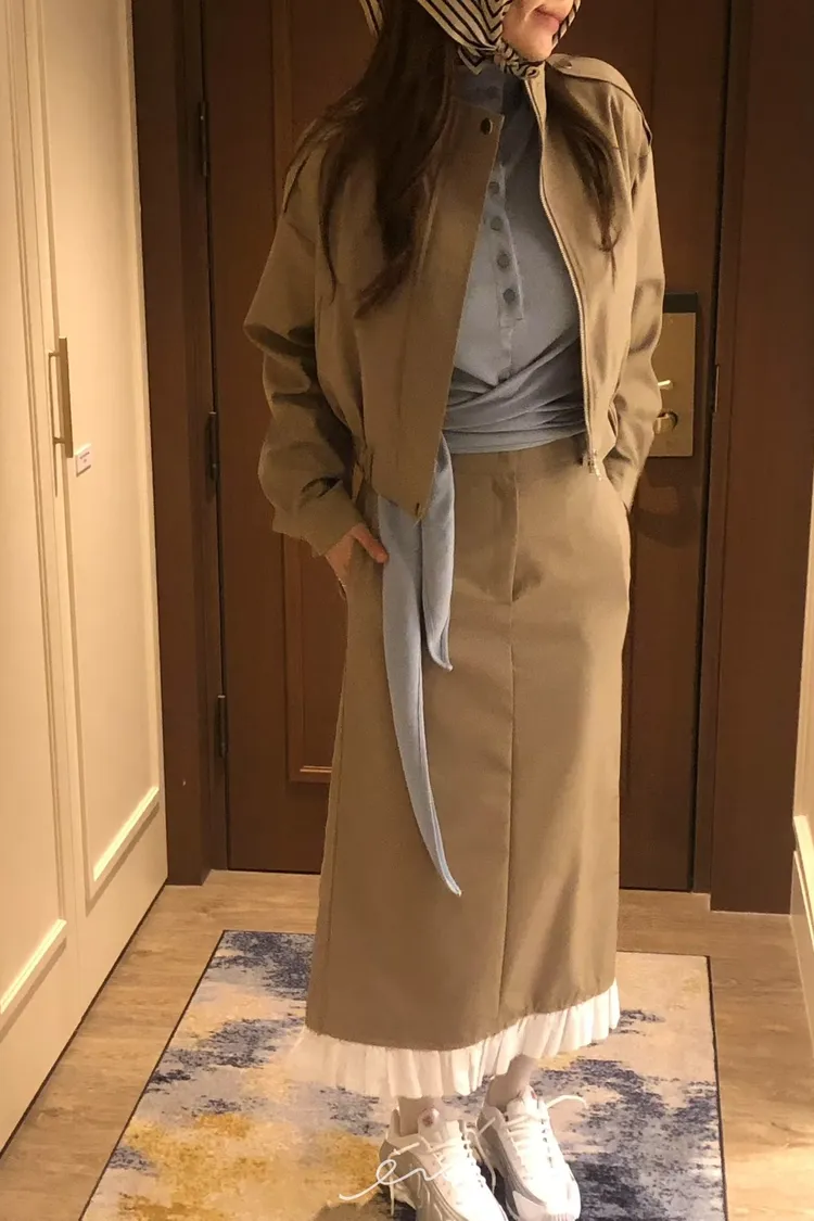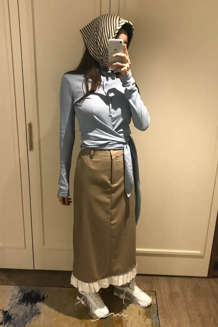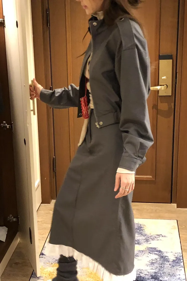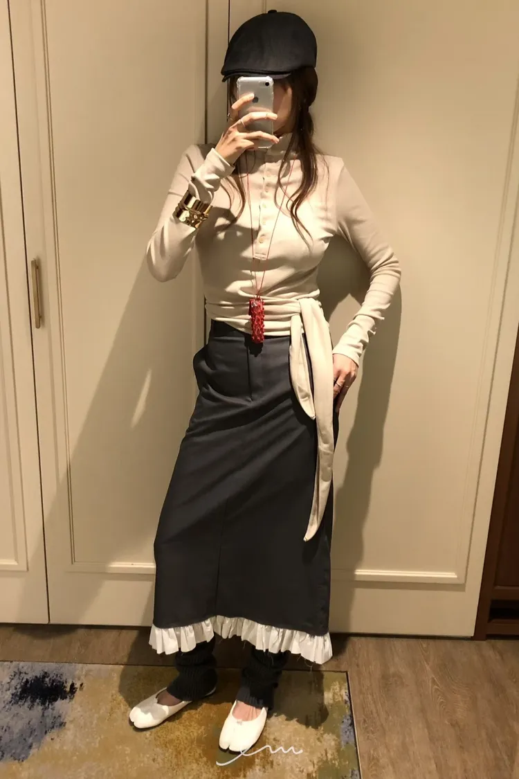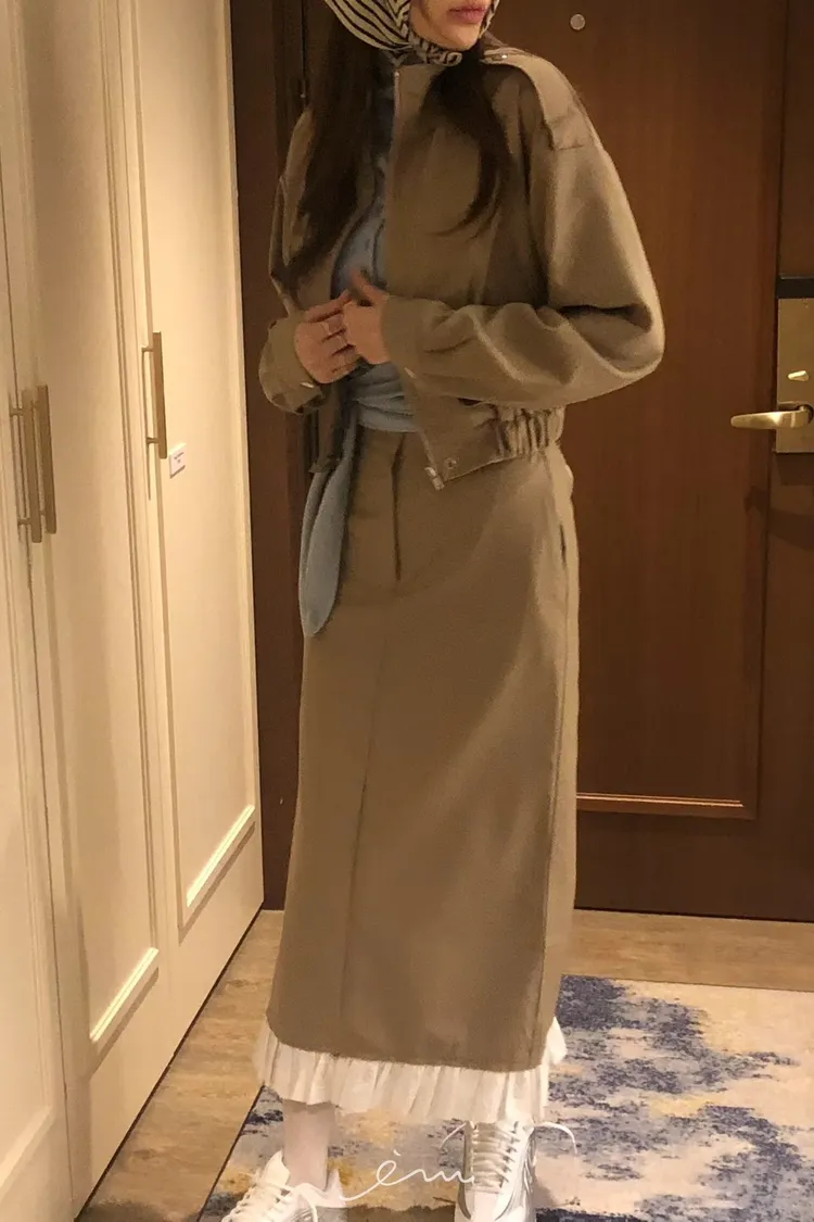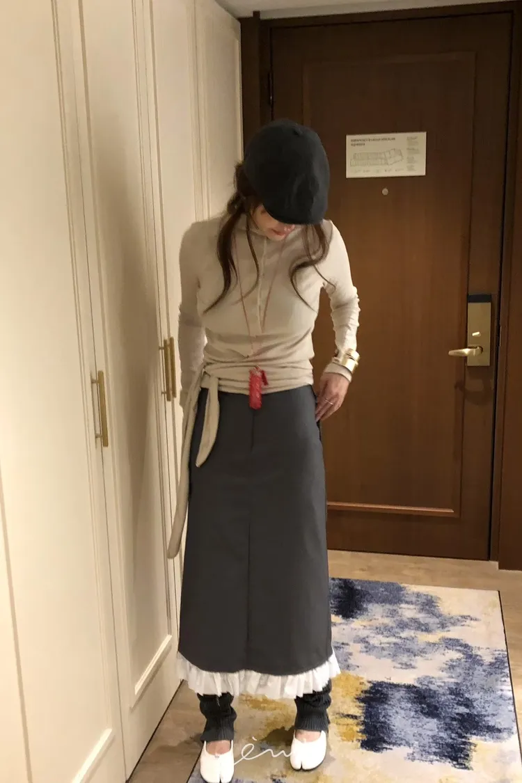 PER下荷葉隱藏釦後開岔長裙