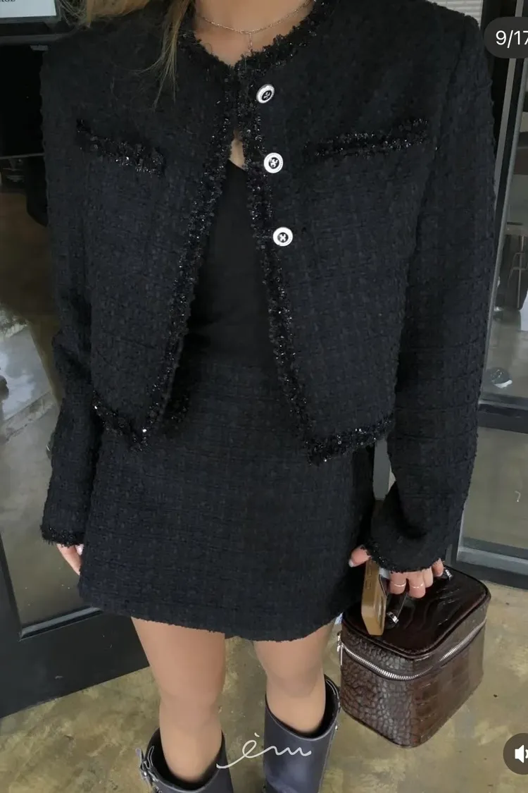 PER金蔥邊三釦小香外套