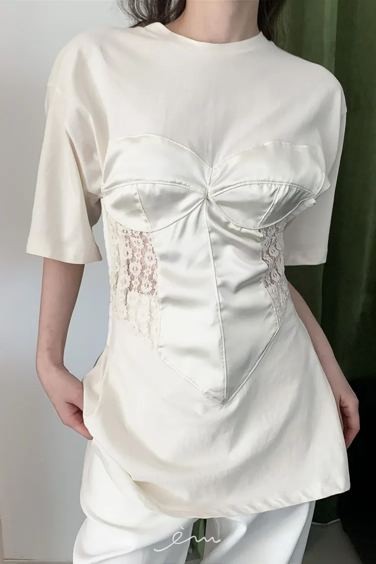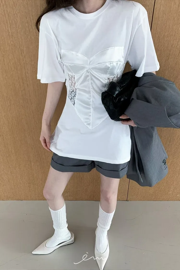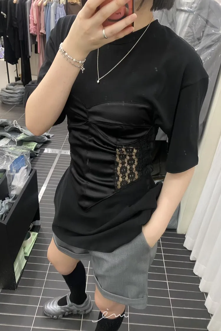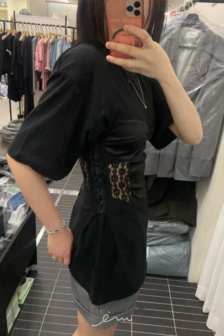PER側鈎釦蕾絲馬甲造型T