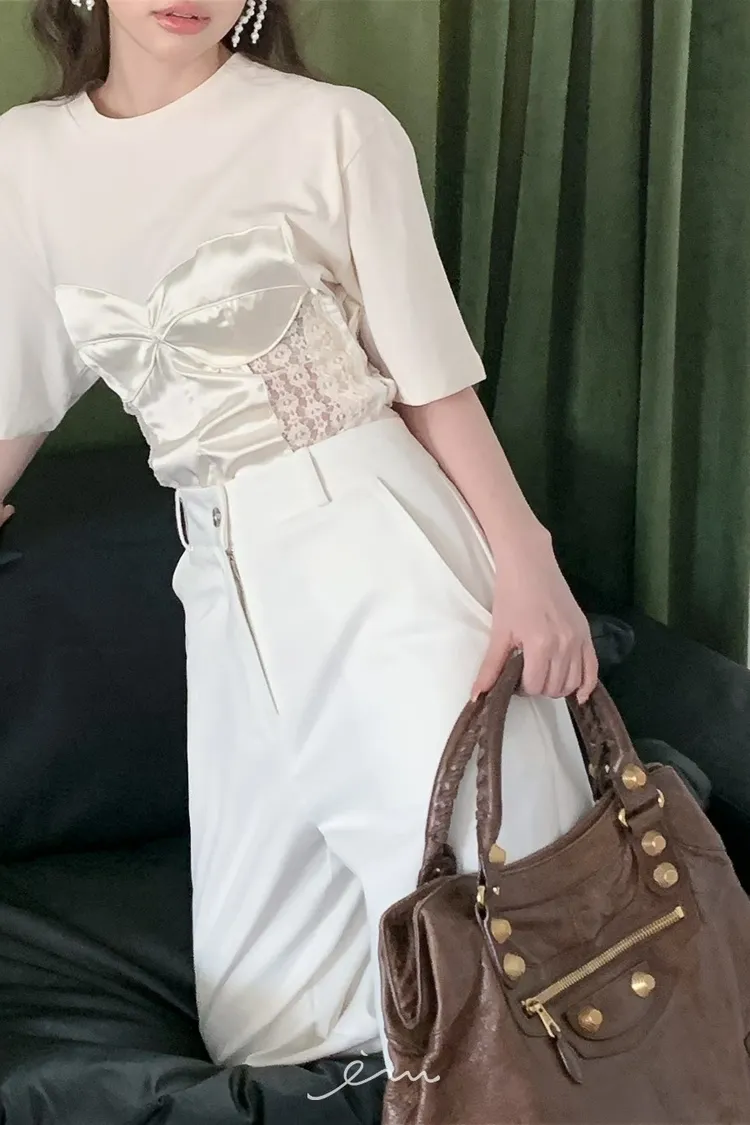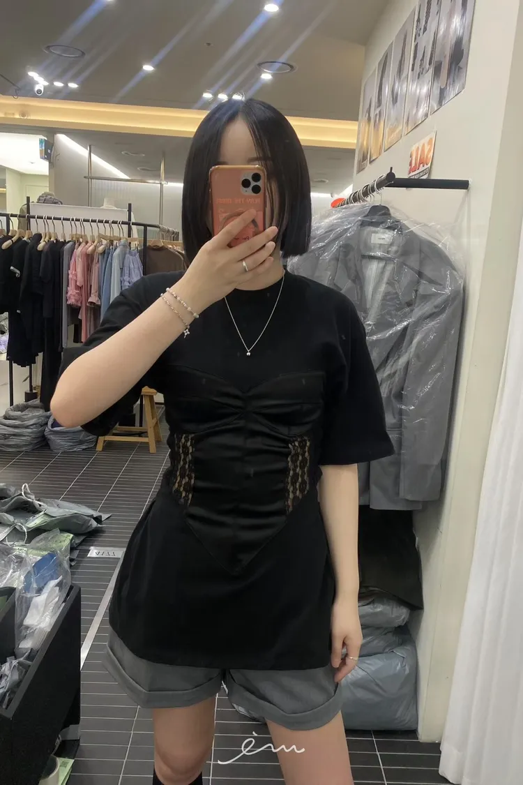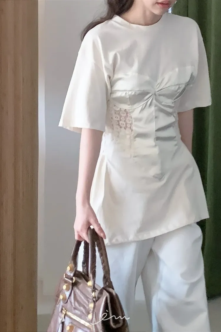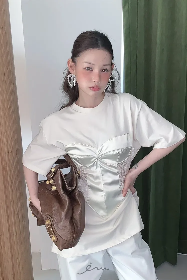 PER側鈎釦蕾絲馬甲造型T