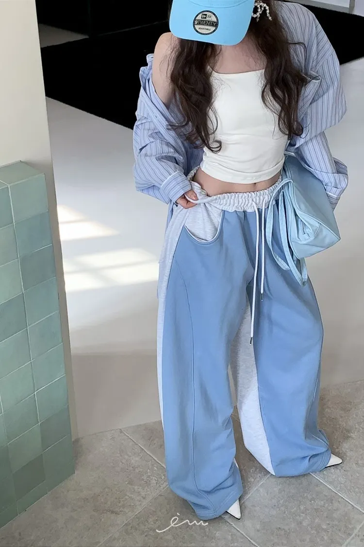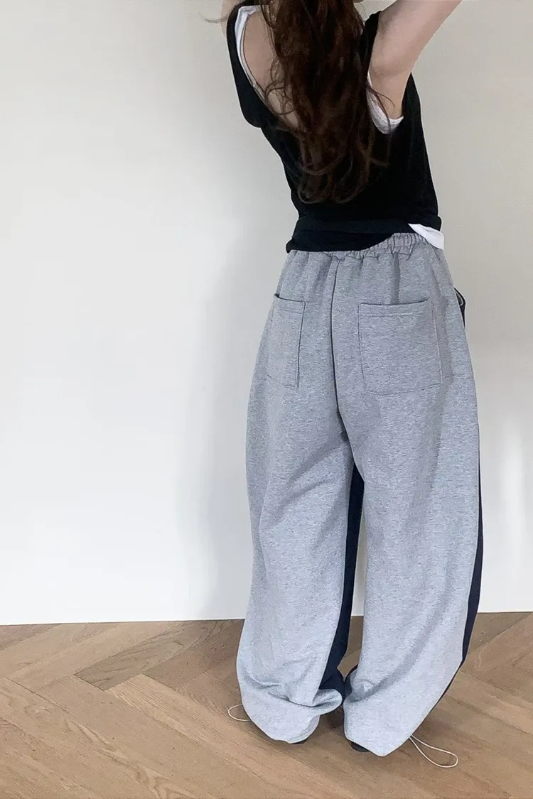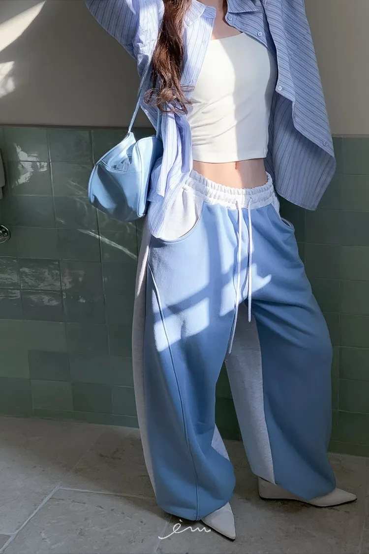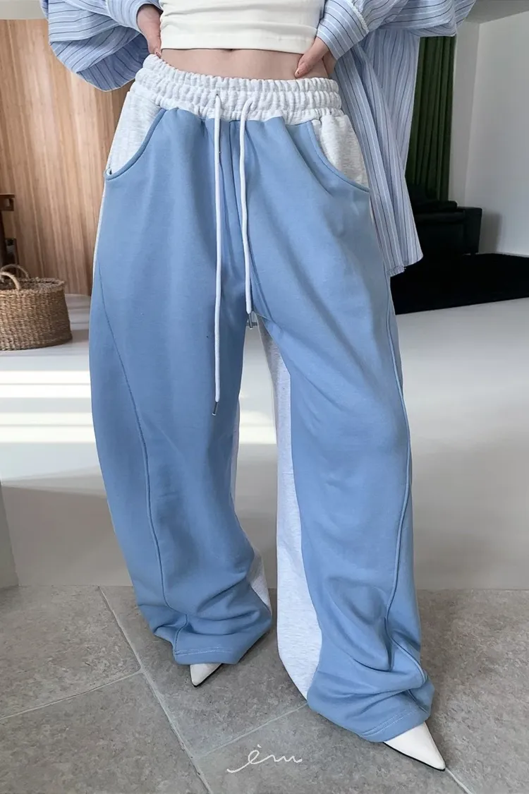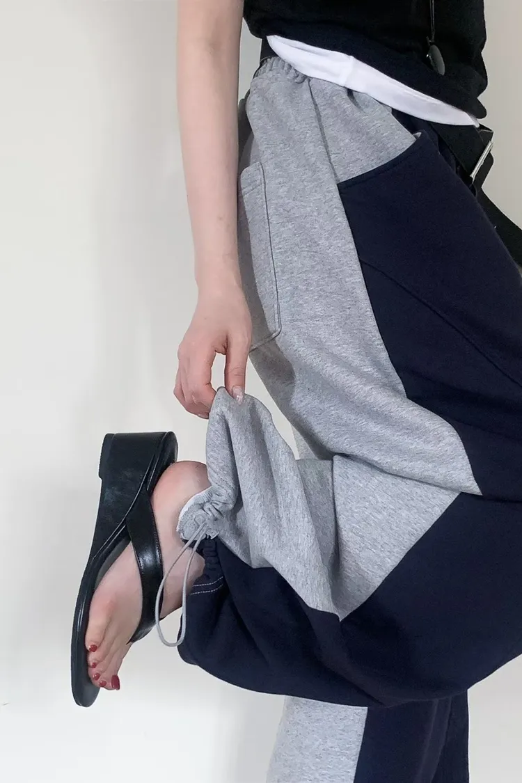 PER抽繩鬆緊拼色長褲