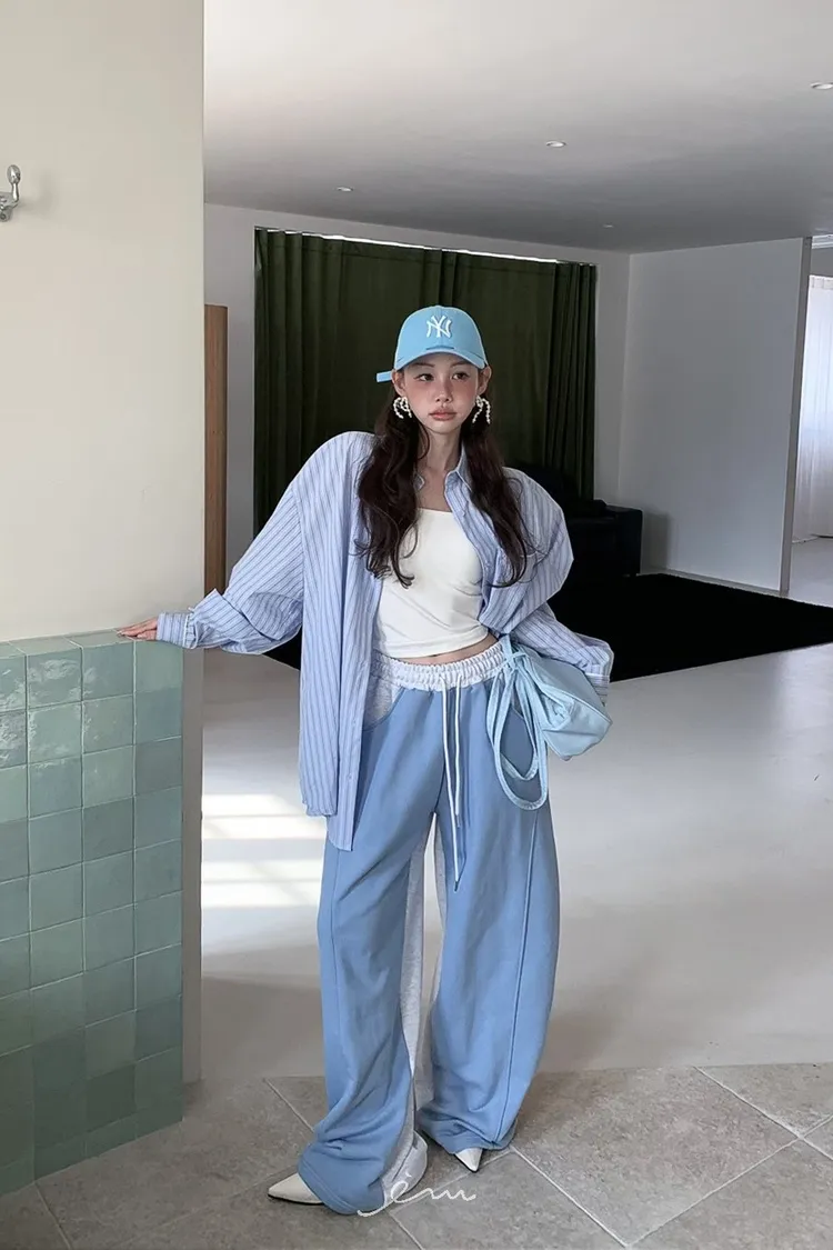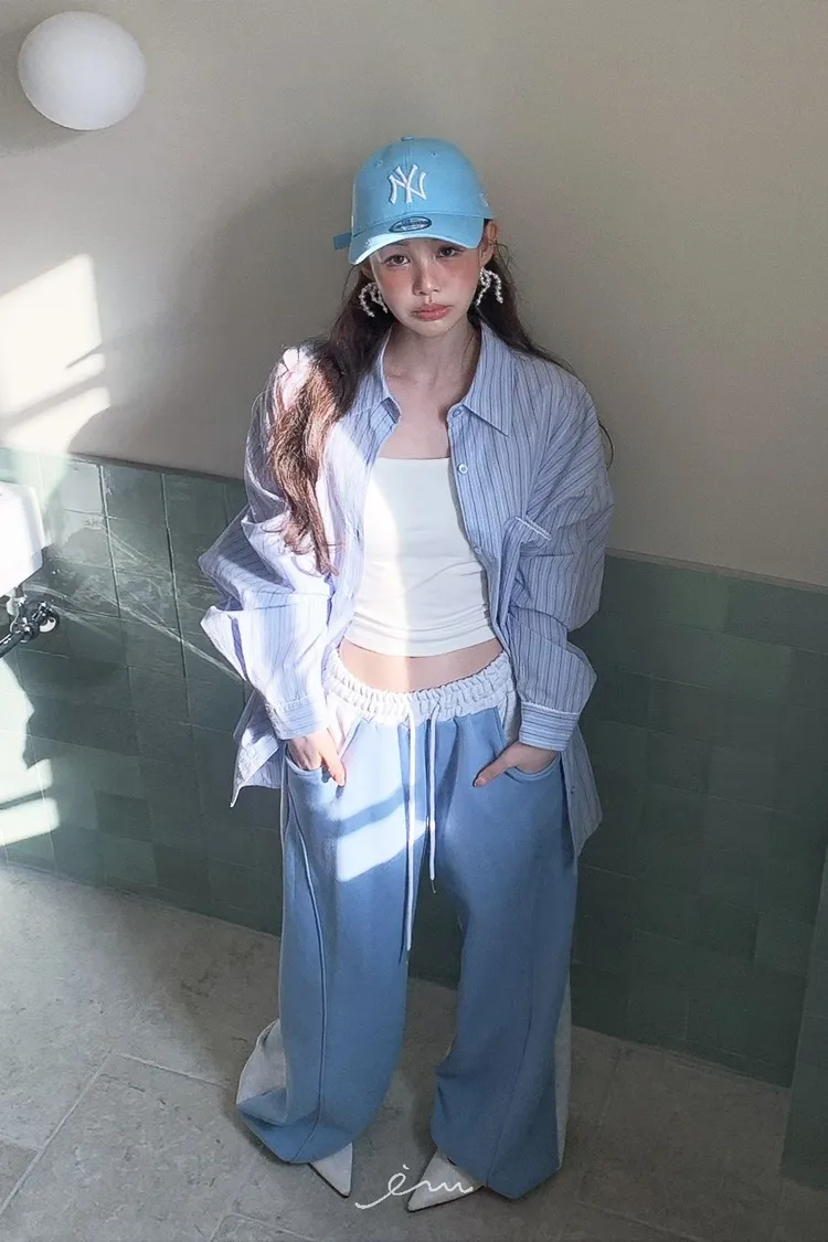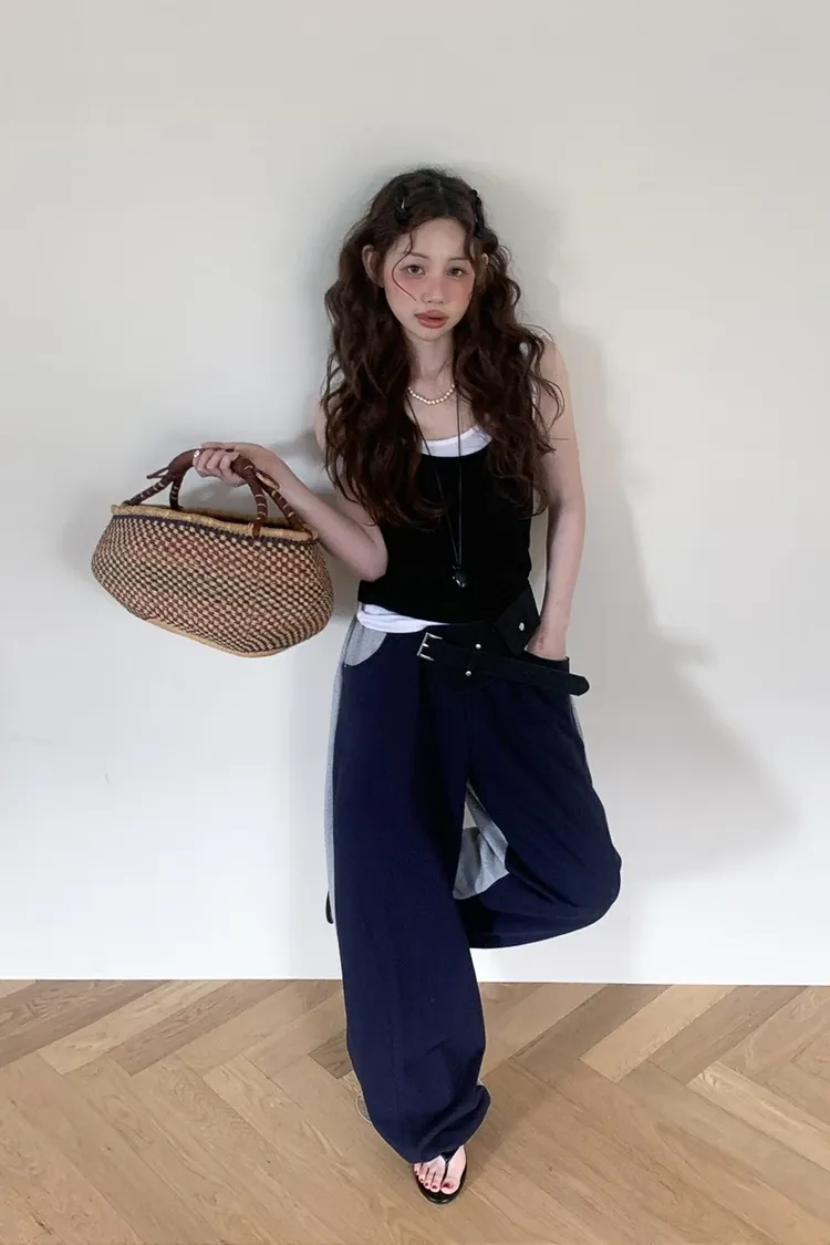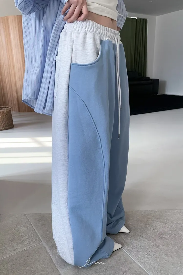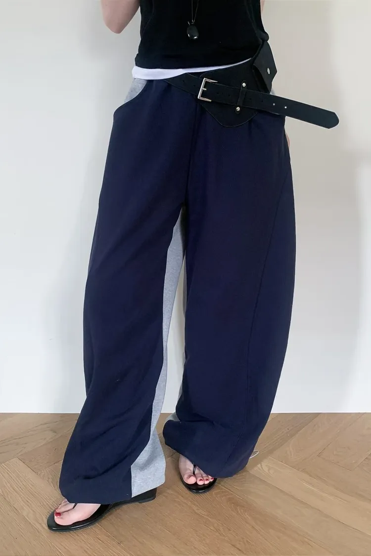 PER抽繩鬆緊拼色長褲