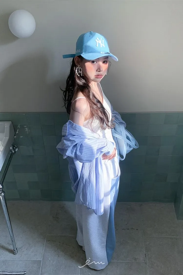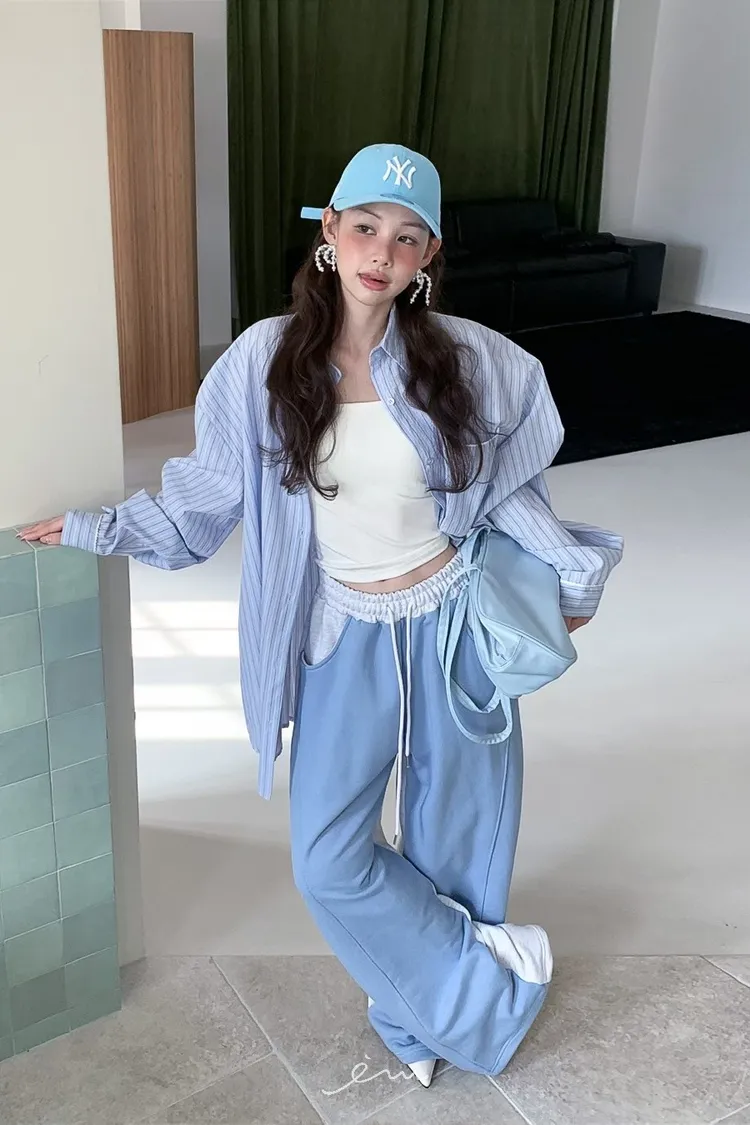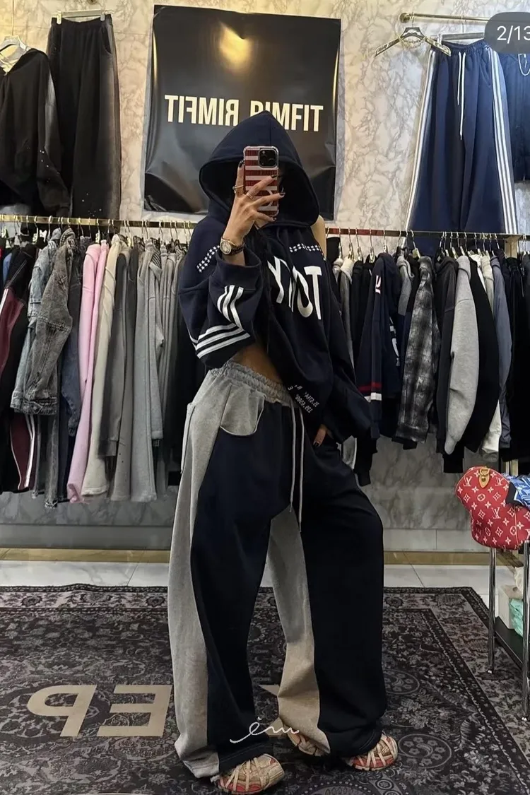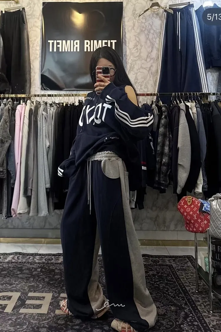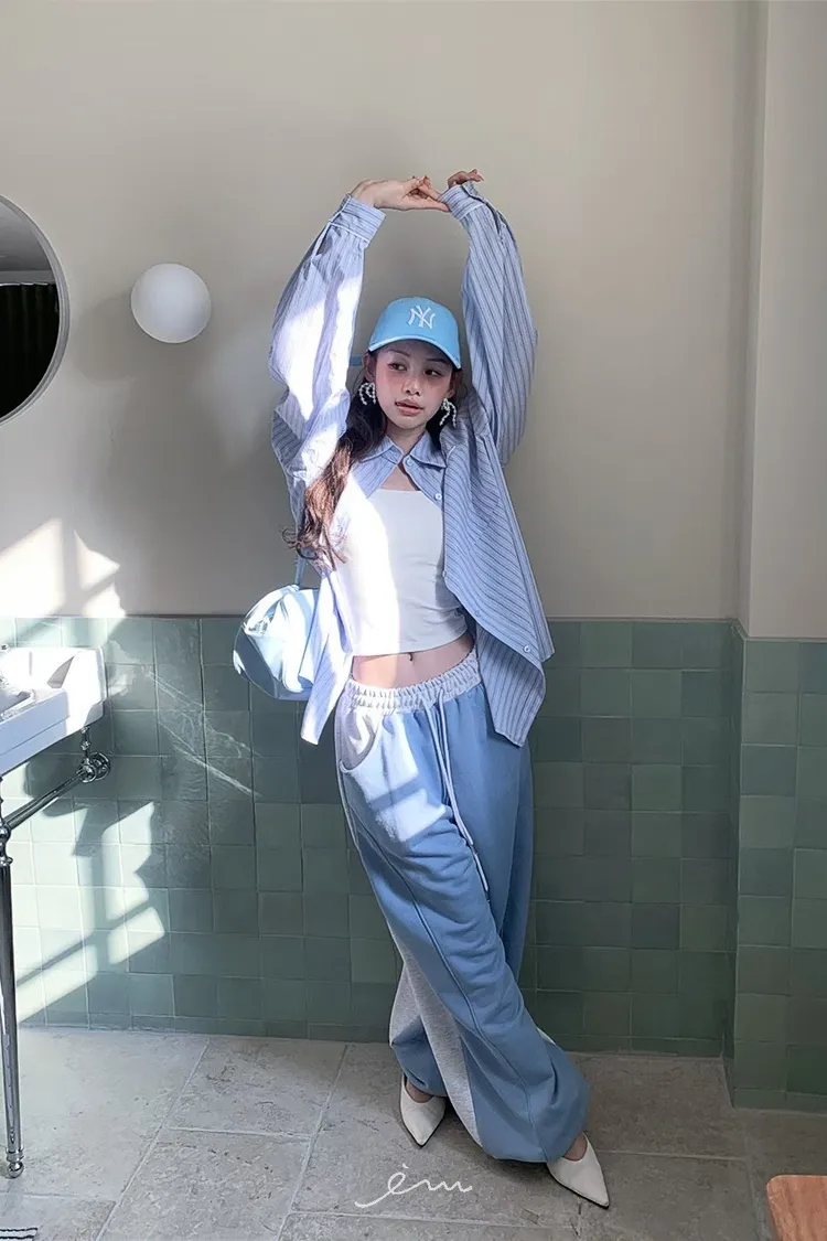 PER抽繩鬆緊拼色長褲