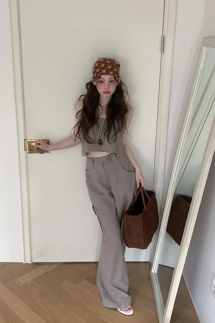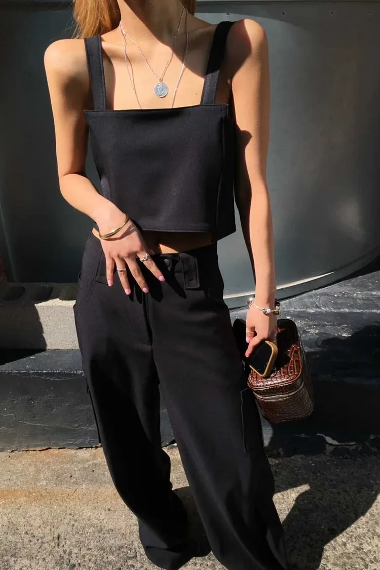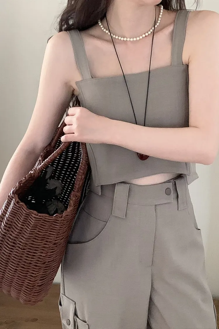 PER後拉鍊鈕釦肩帶背心