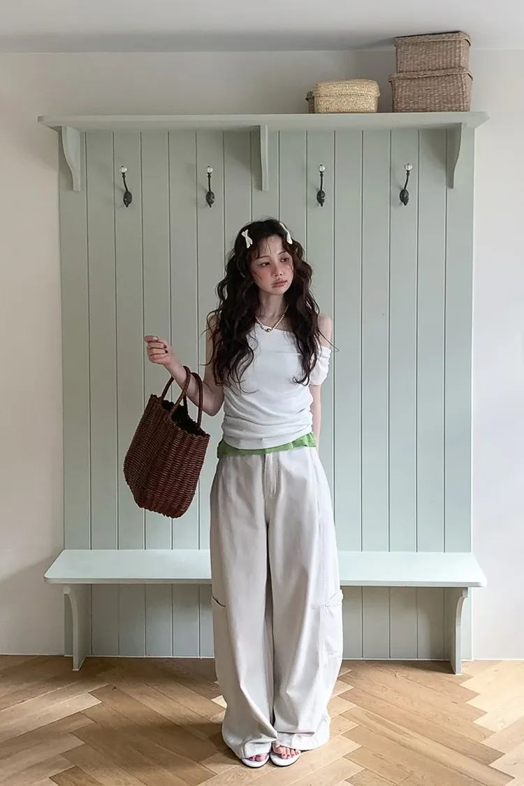 PER鈕釦口袋寬褲