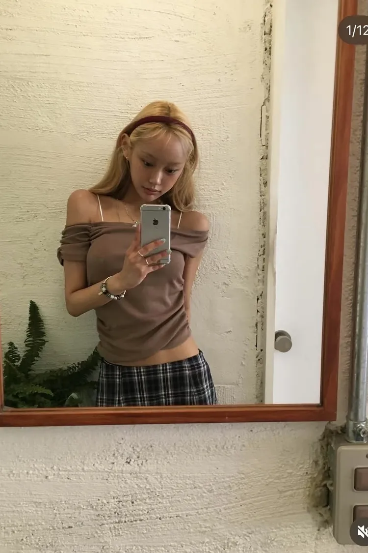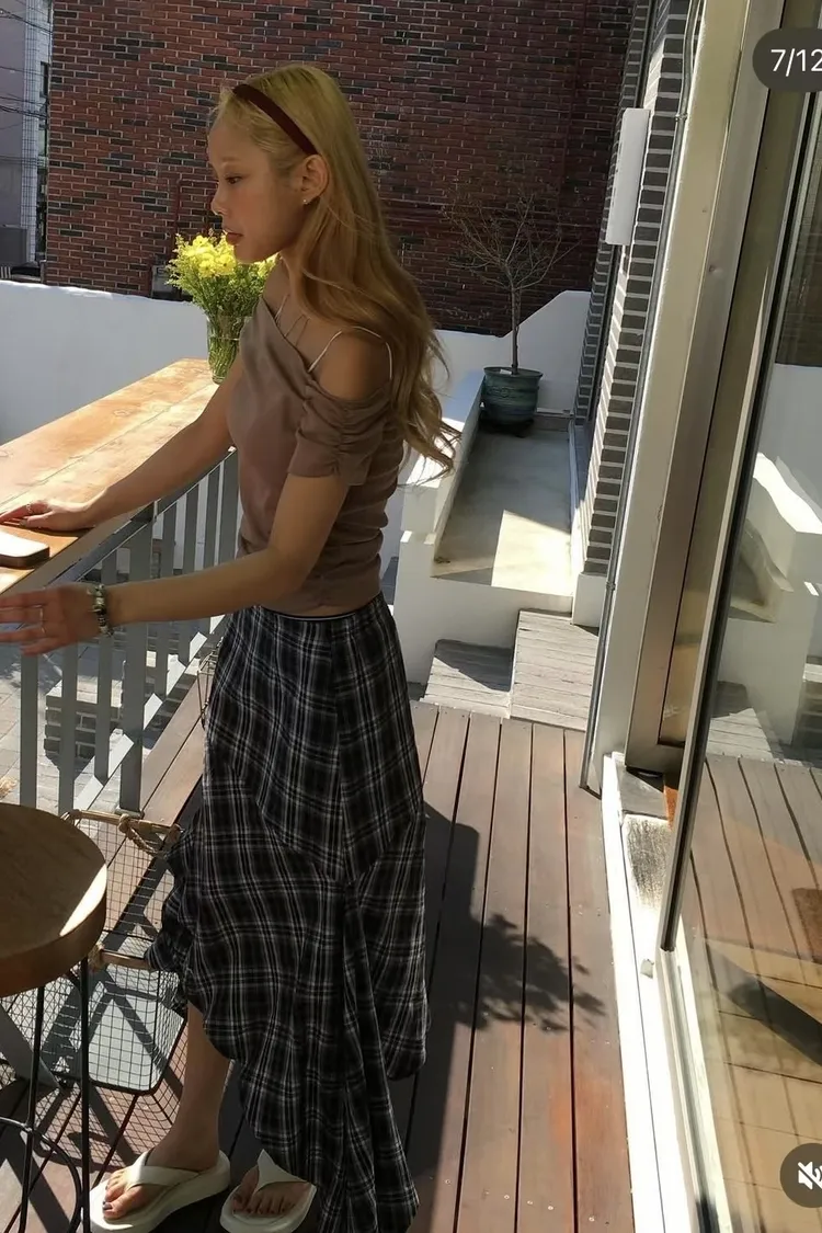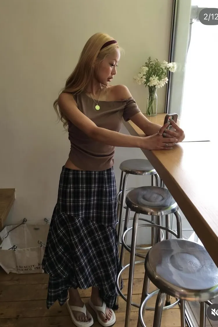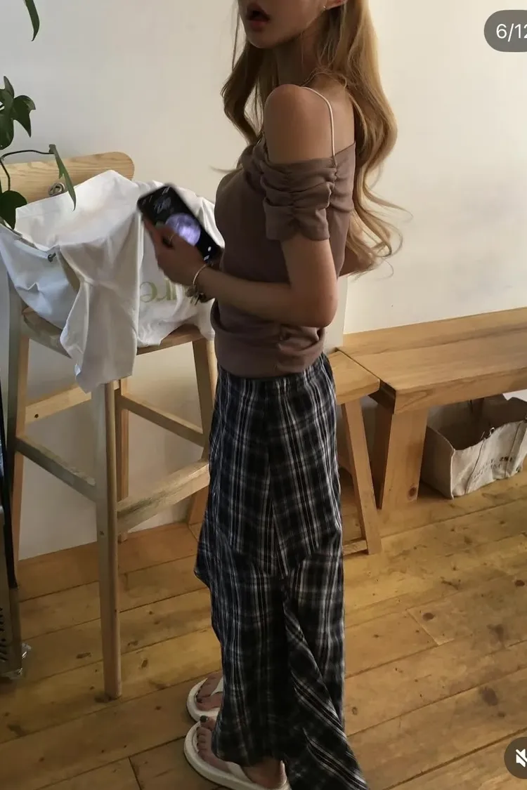 PER側抓皺斜肩素面衣