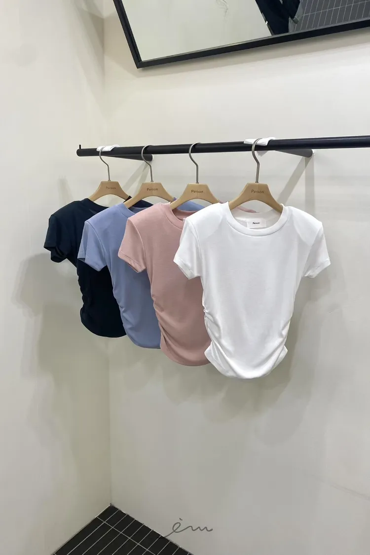 PER側抓皺墊肩短袖上衣