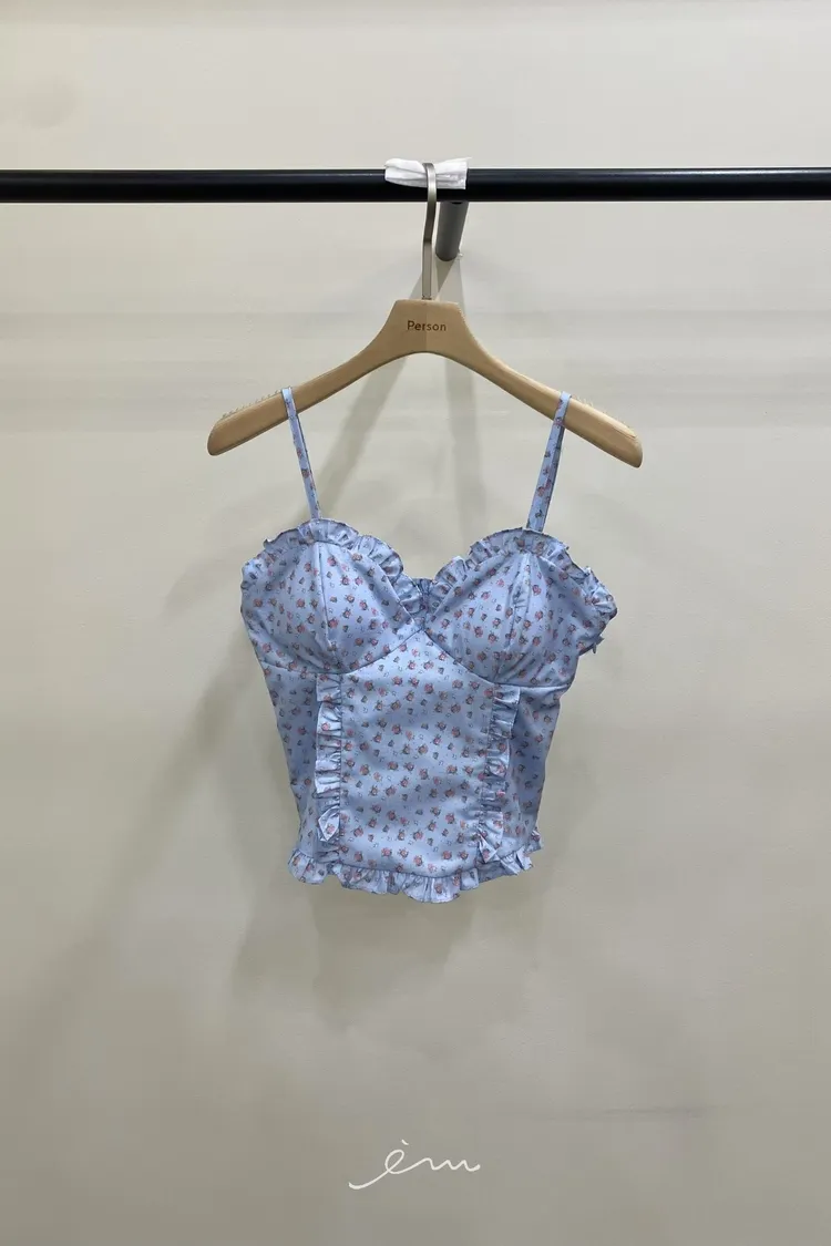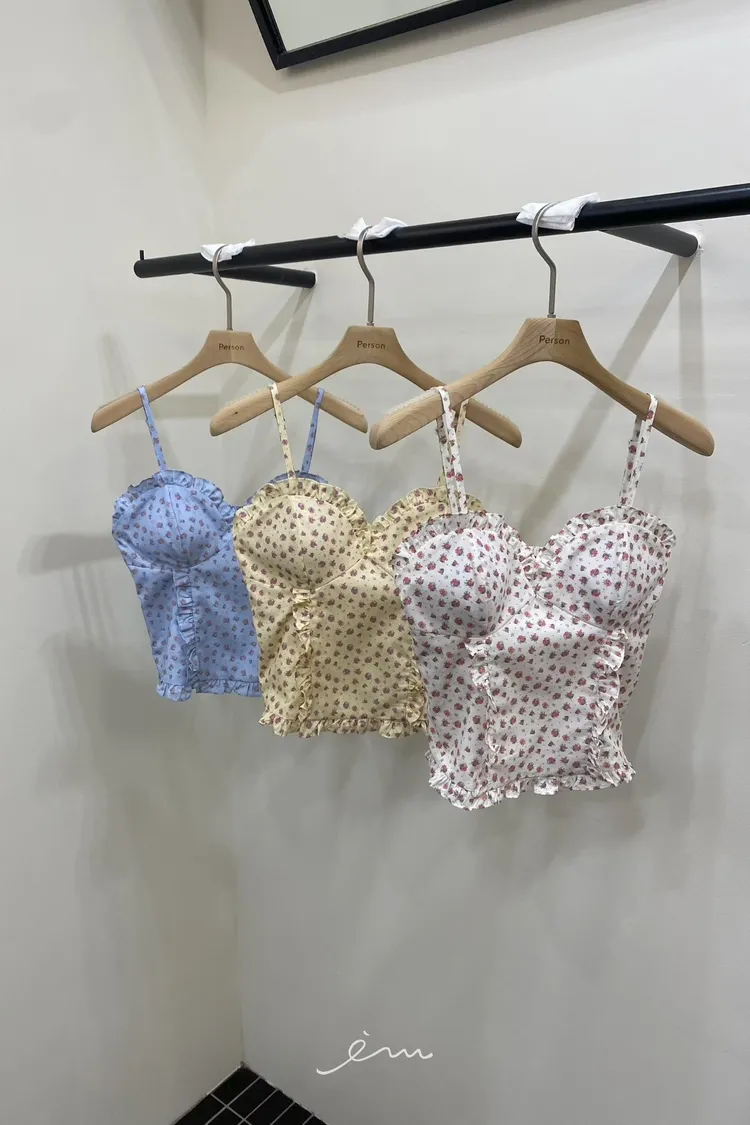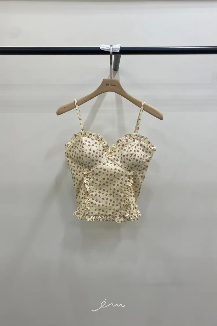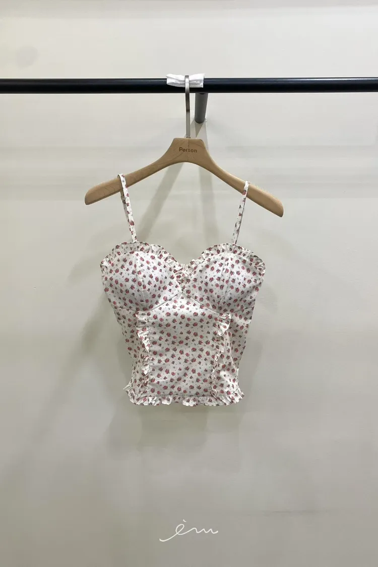 PER荷葉細肩碎花馬甲罩杯背心