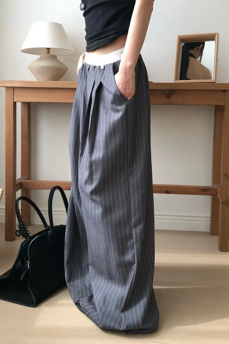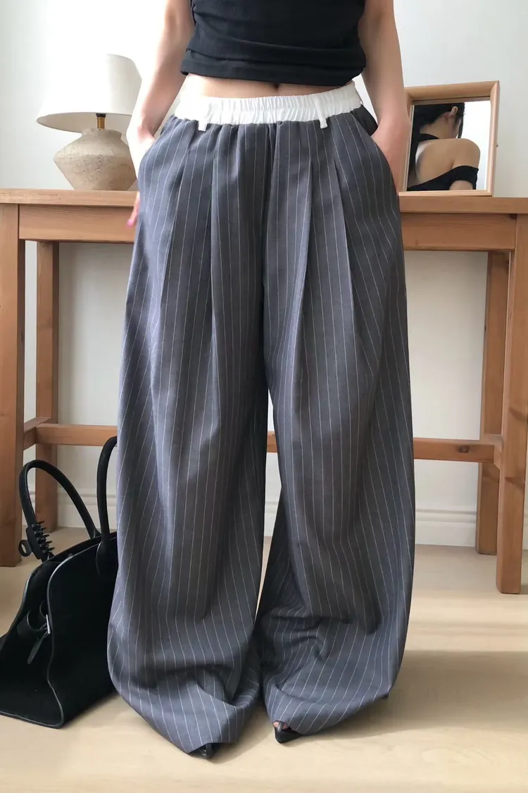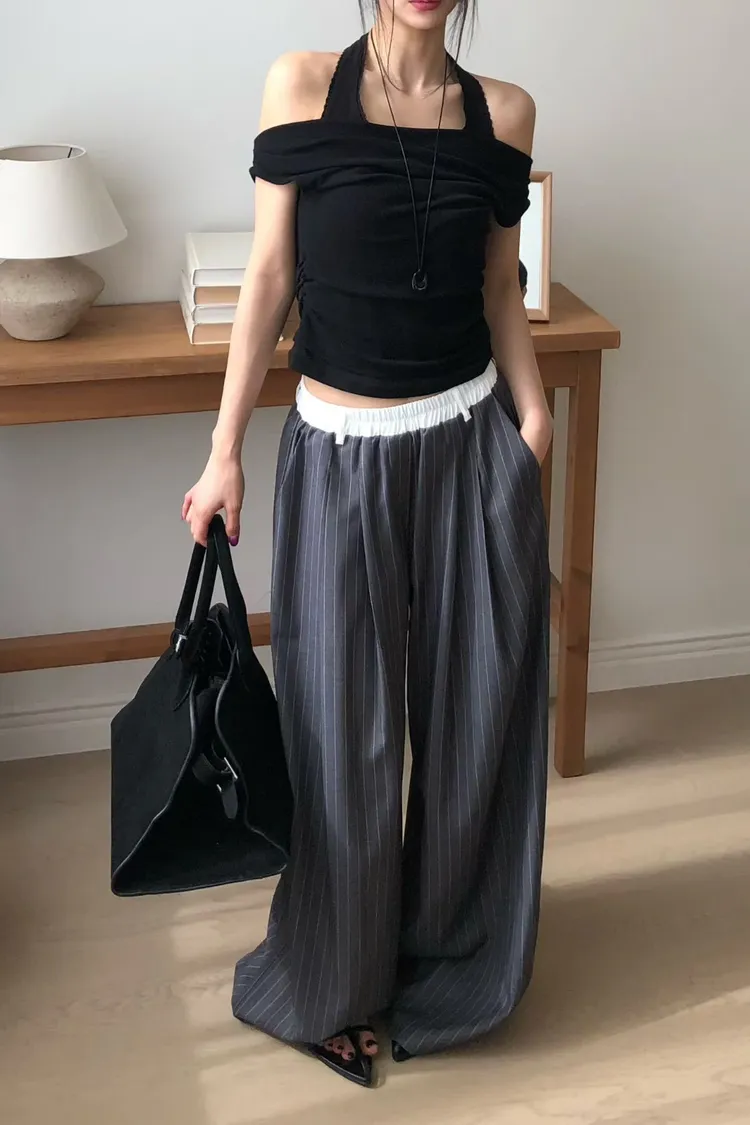 OK白褲頭抽繩直條褲