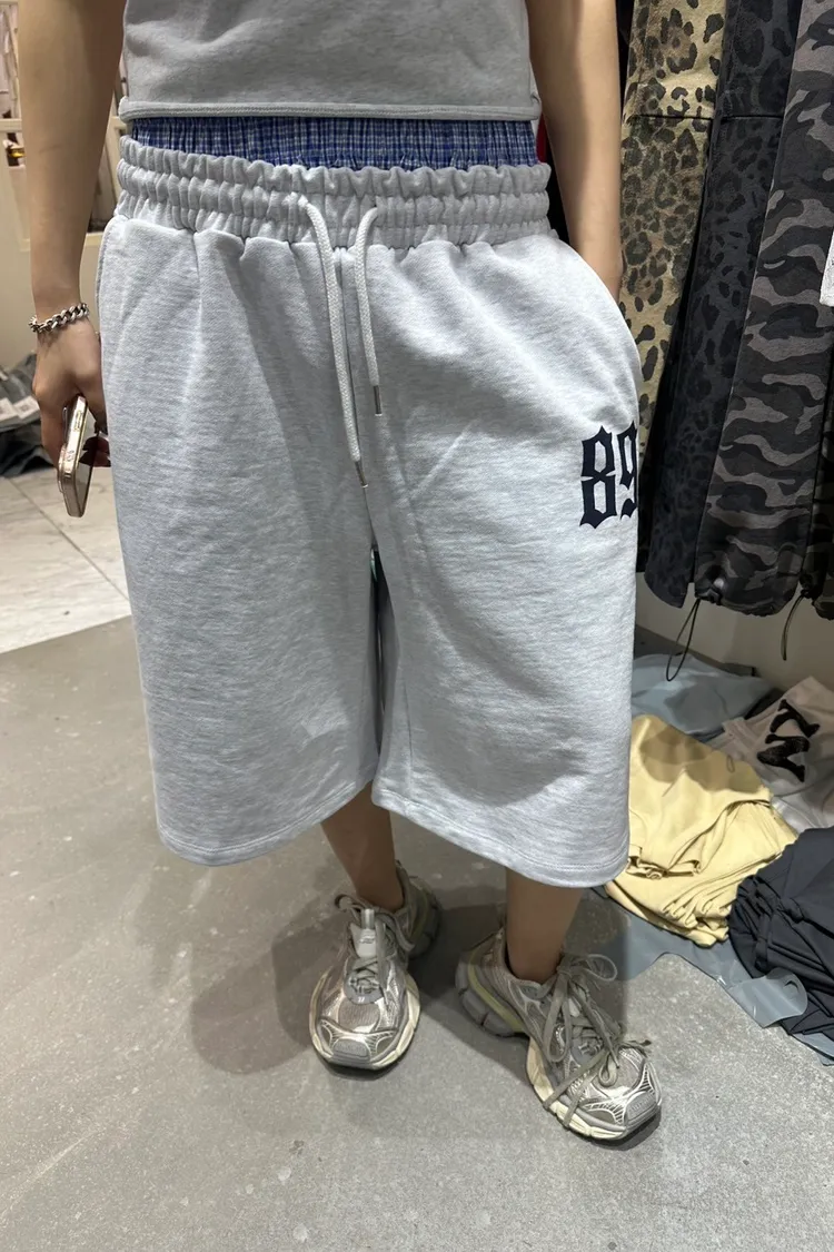 OK雙格紋褲頭五分棉褲