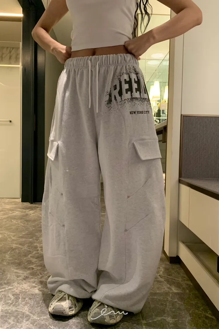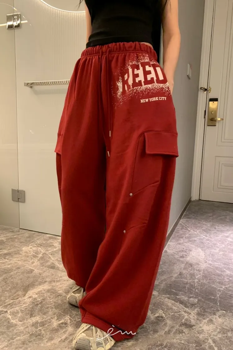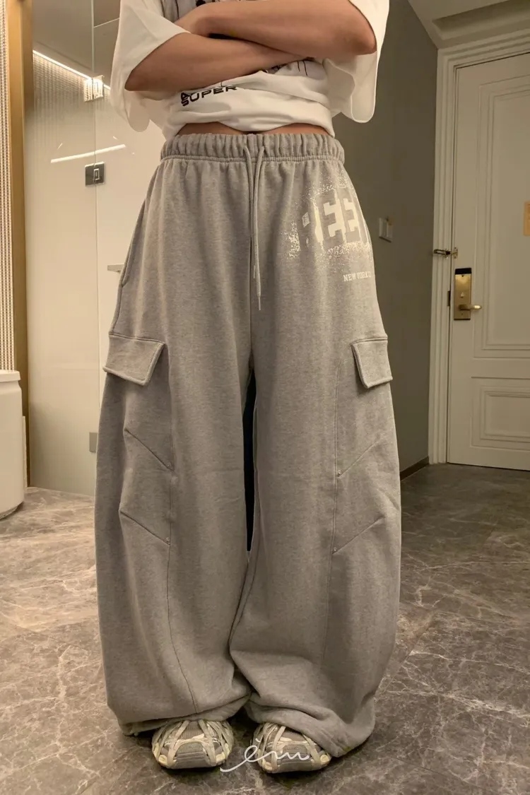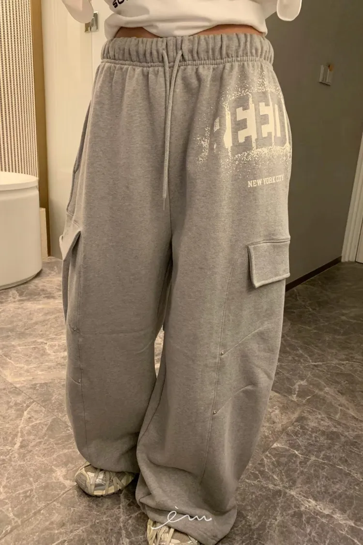 BAD噴漆感英字車線抽繩褲