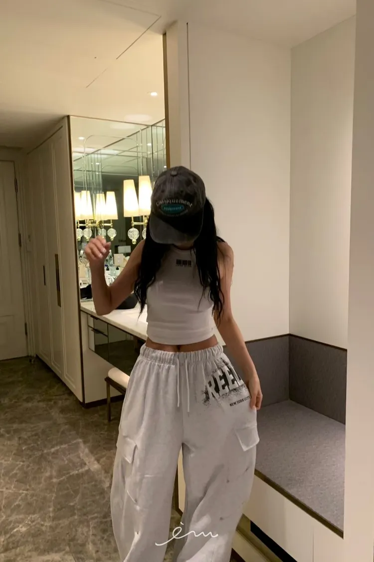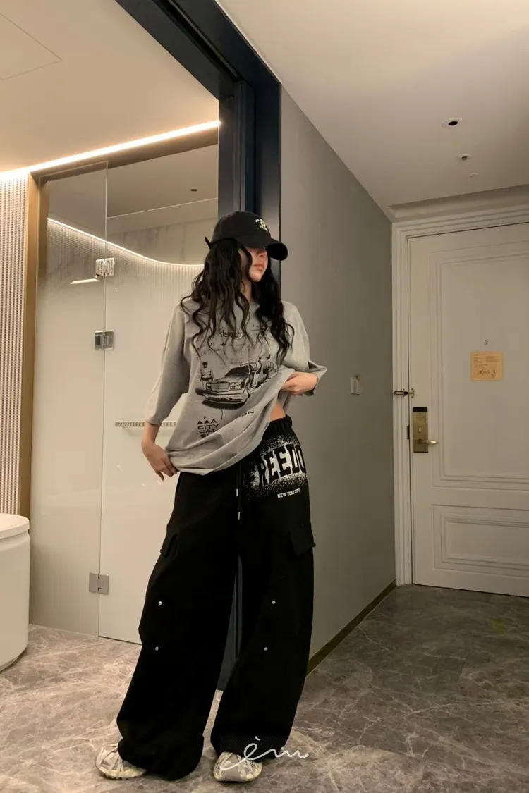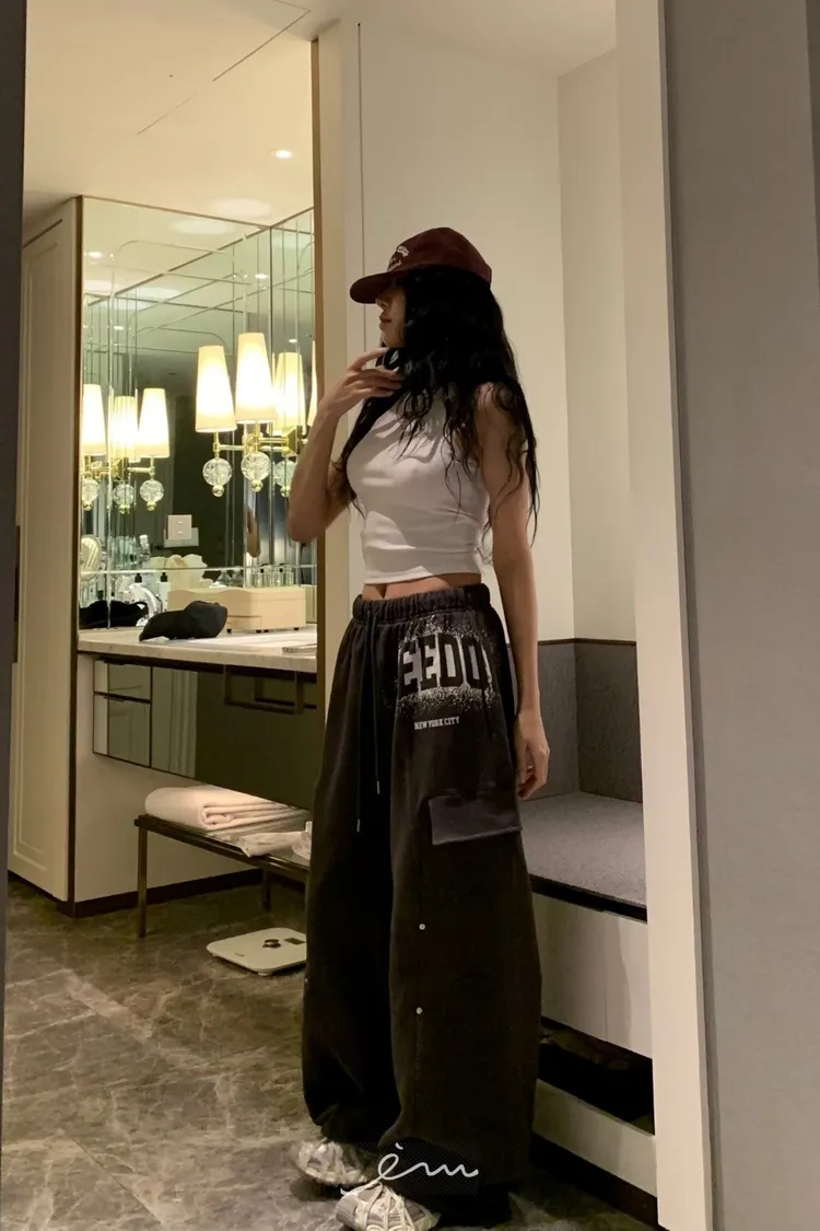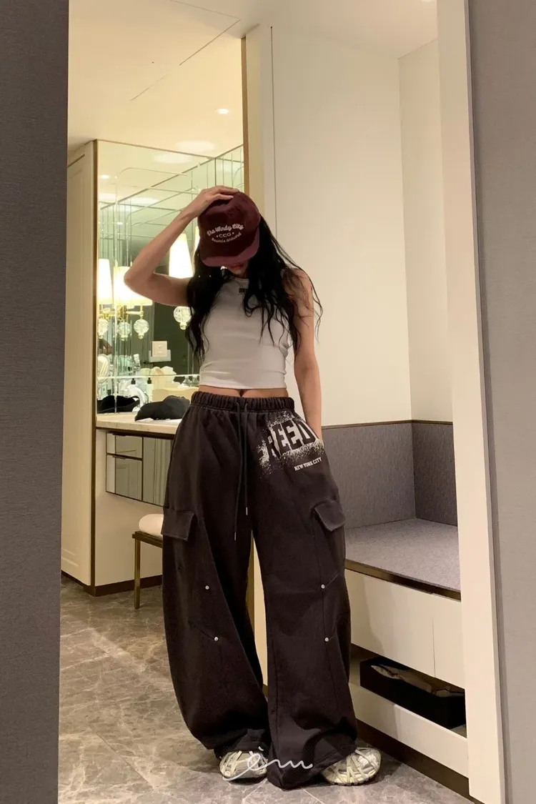BAD噴漆感英字車線抽繩褲