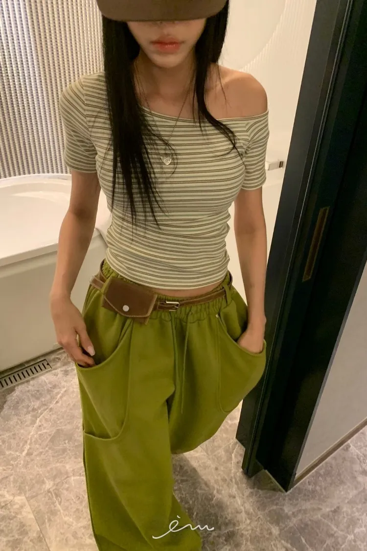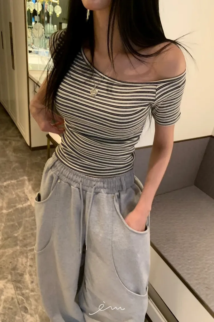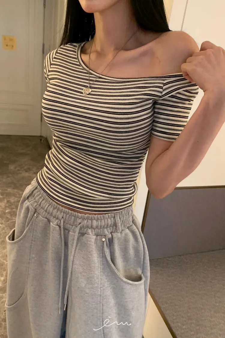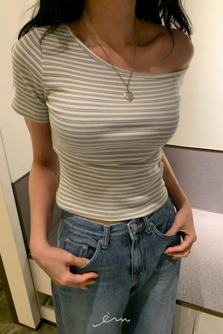 BAD斜肩條紋上衣