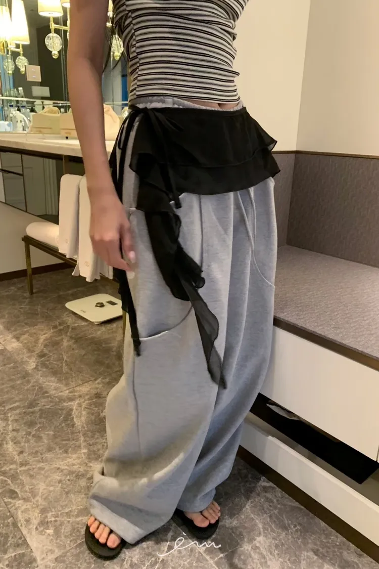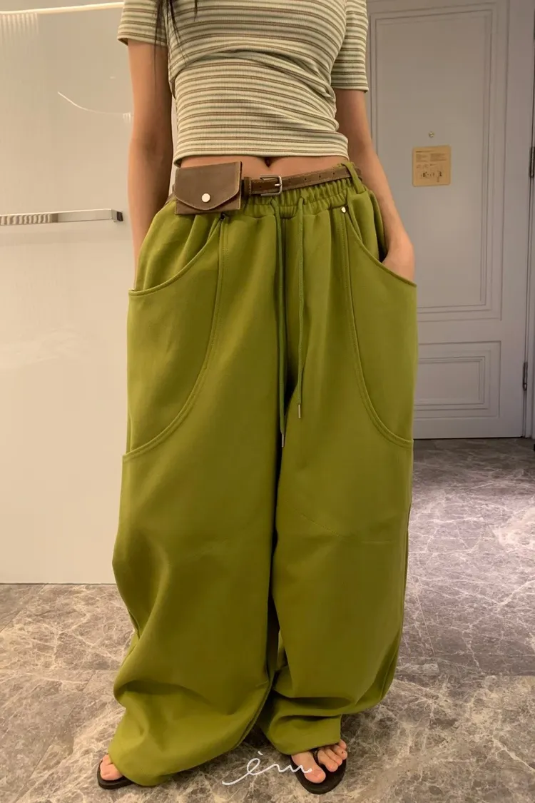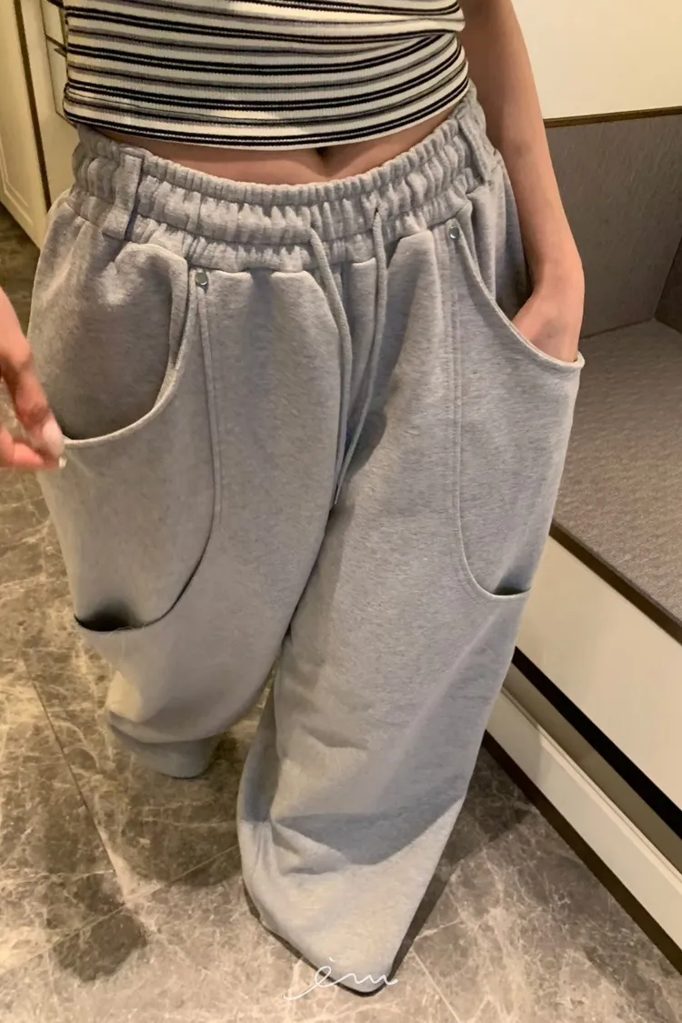 BAD弧形口袋抽繩長褲