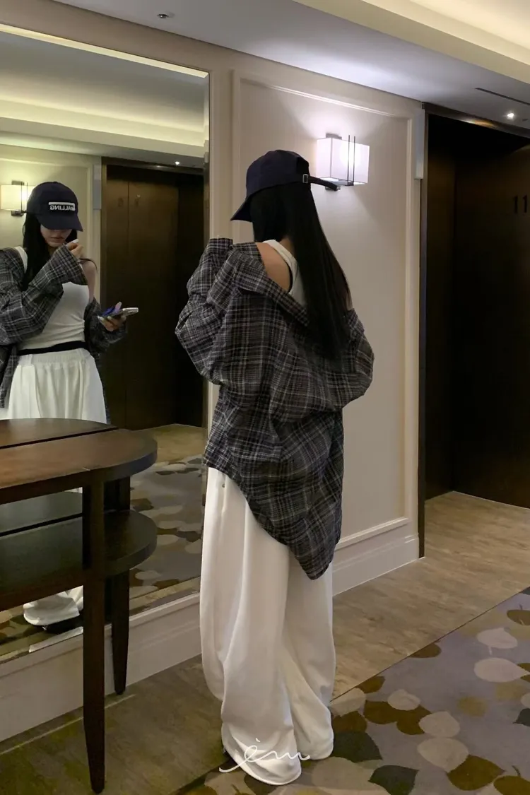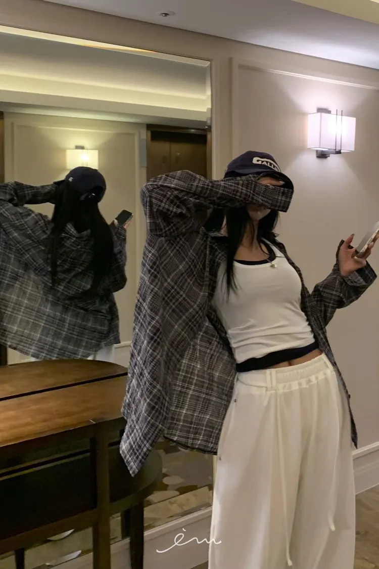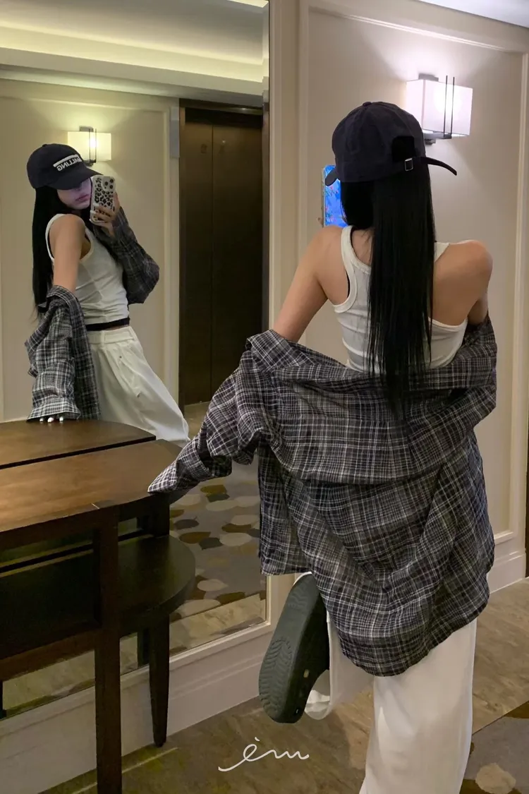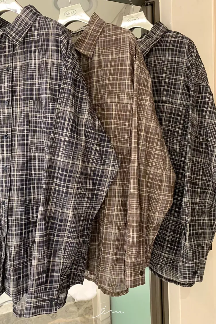 BAD單口袋格紋薄襯衫