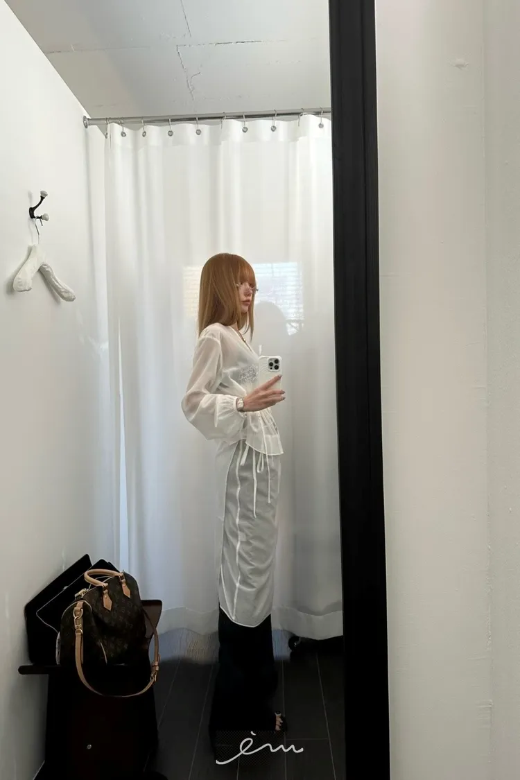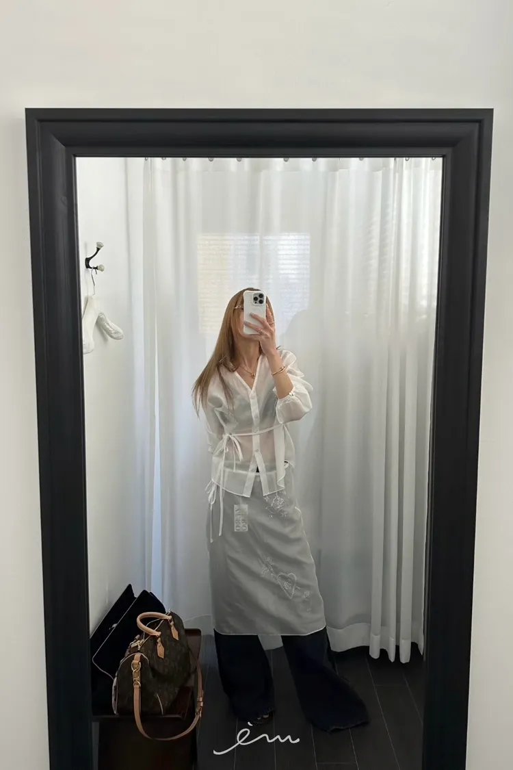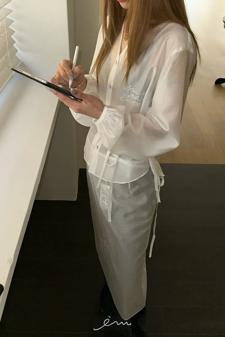 ZERO刺繡英字綁帶排釦天絲衣