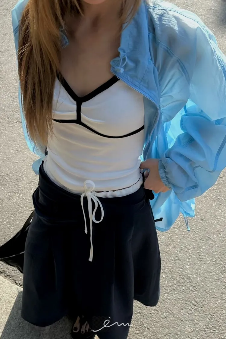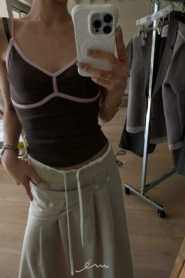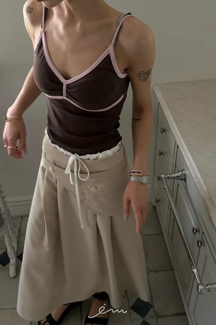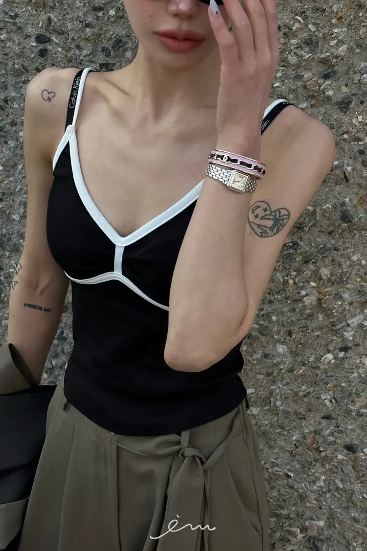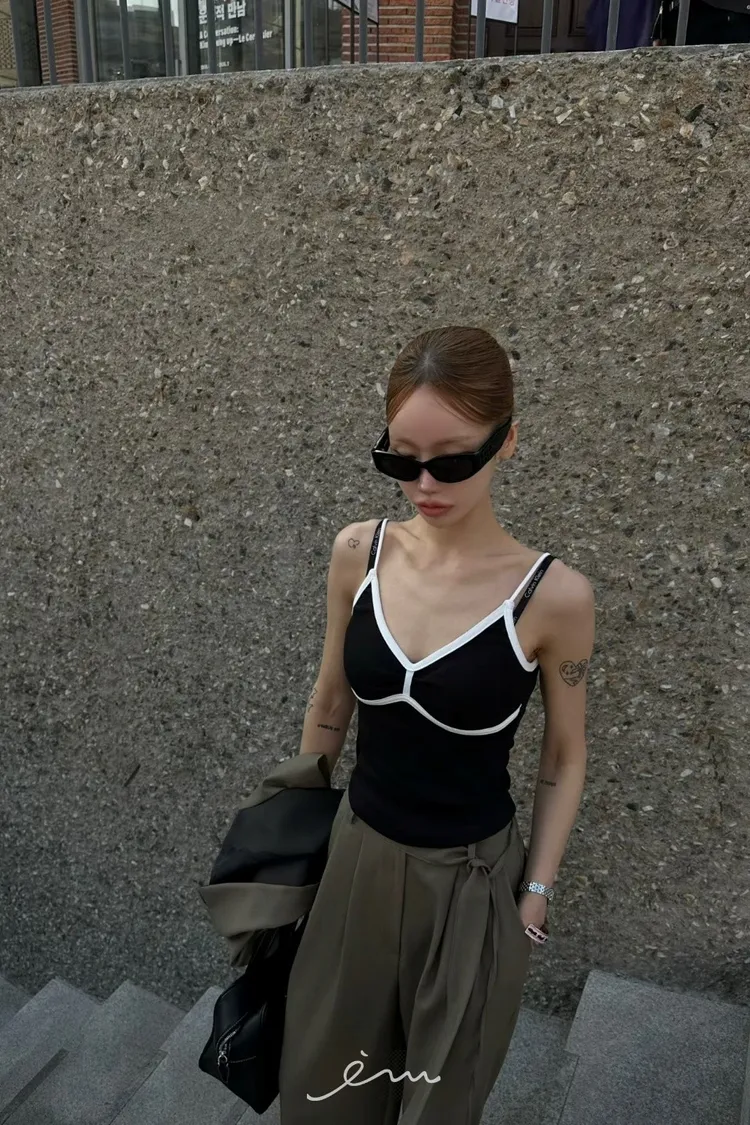 ZERO撞色邊抓皺細肩背心(肉0清單)