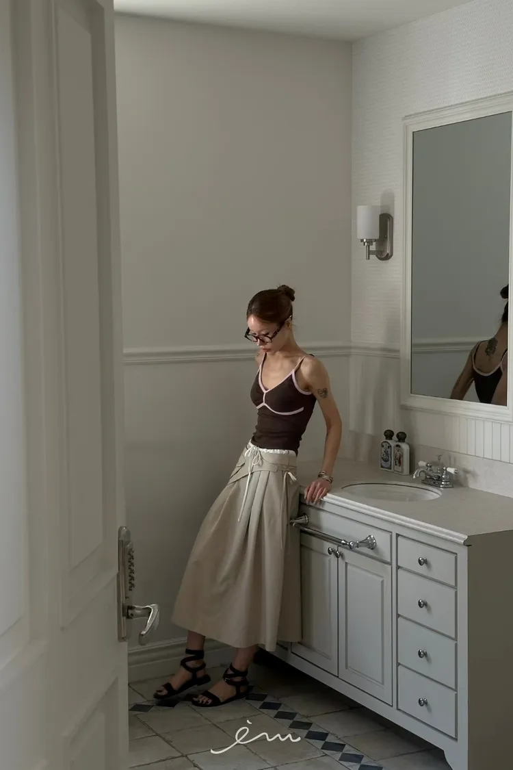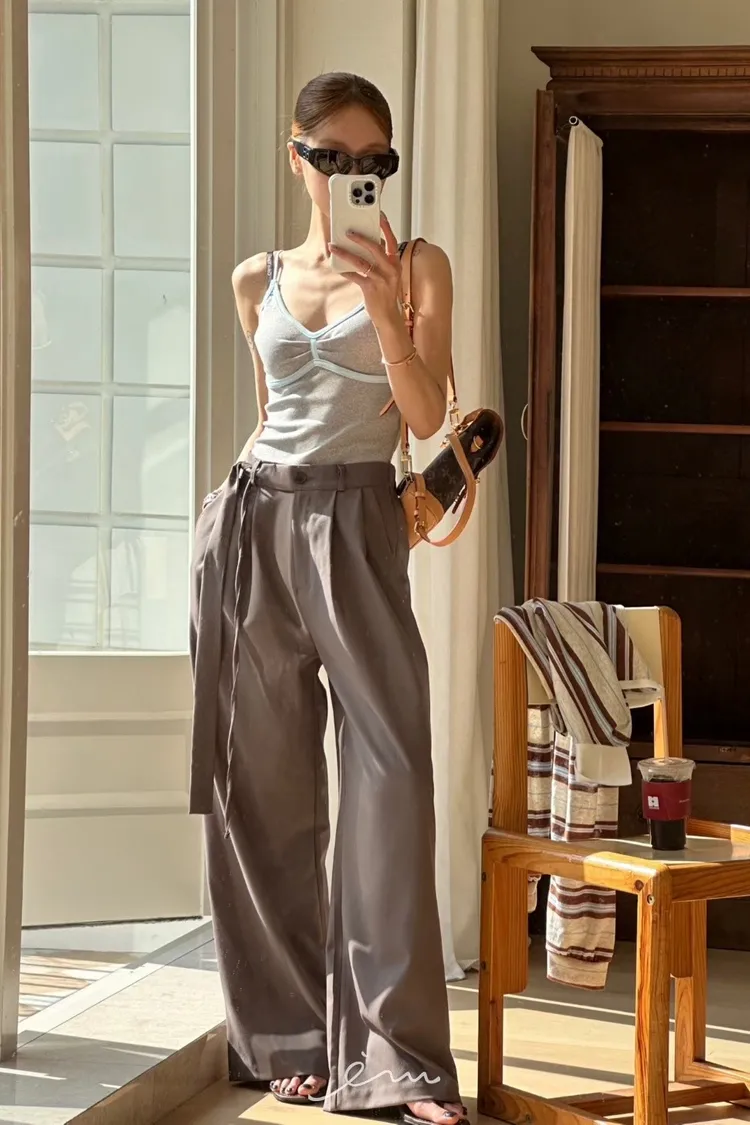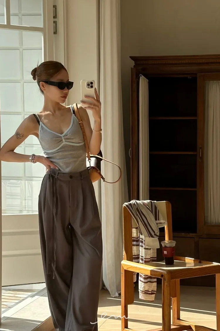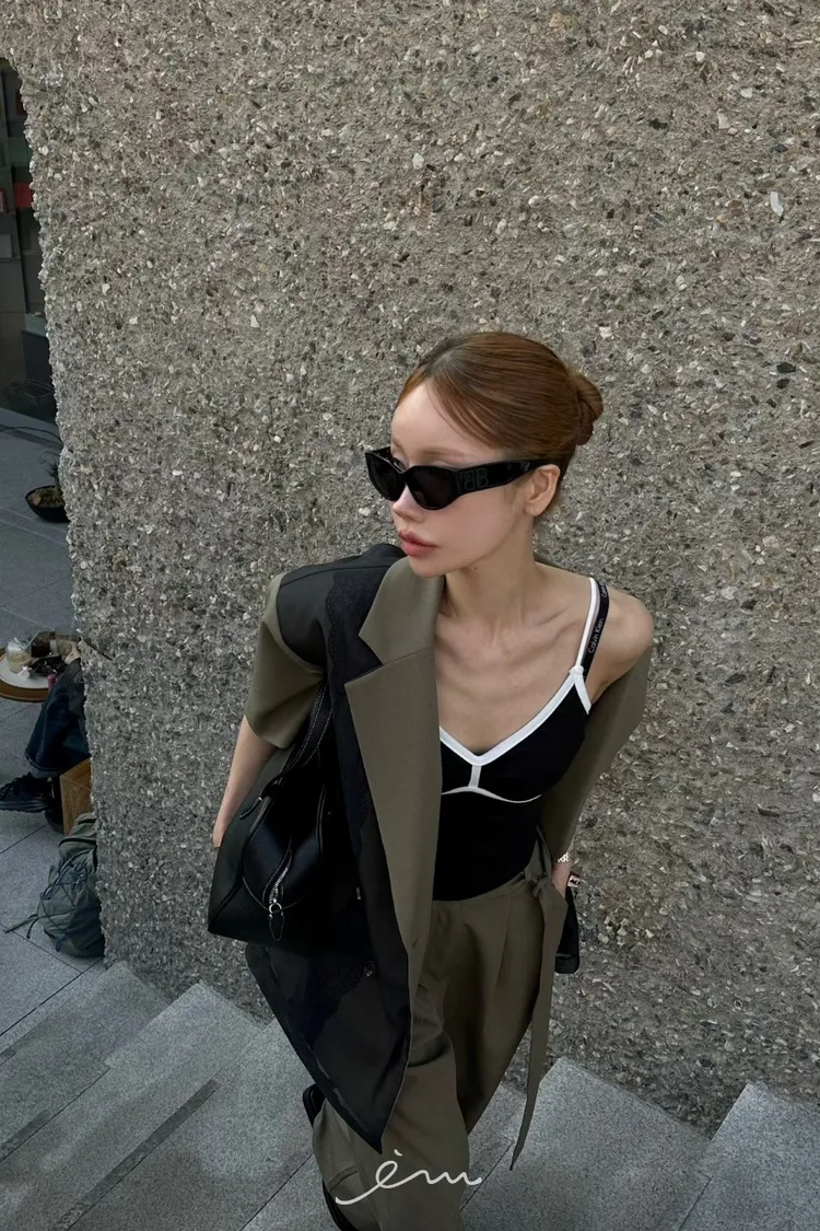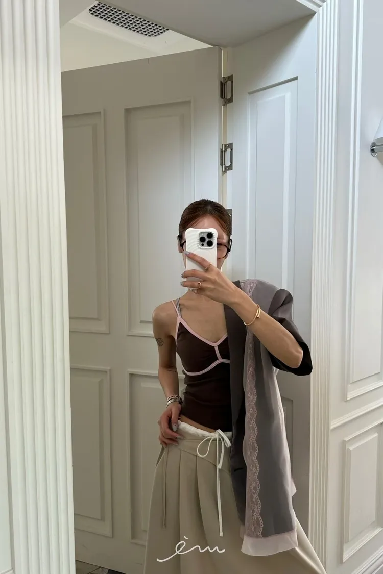 ZERO撞色邊抓皺細肩背心(肉0清單)