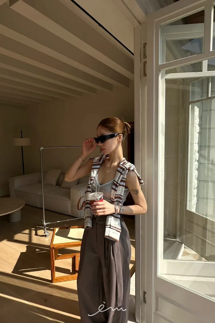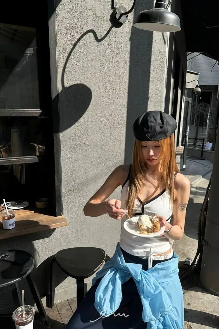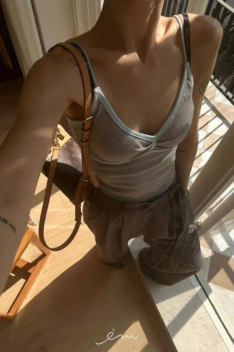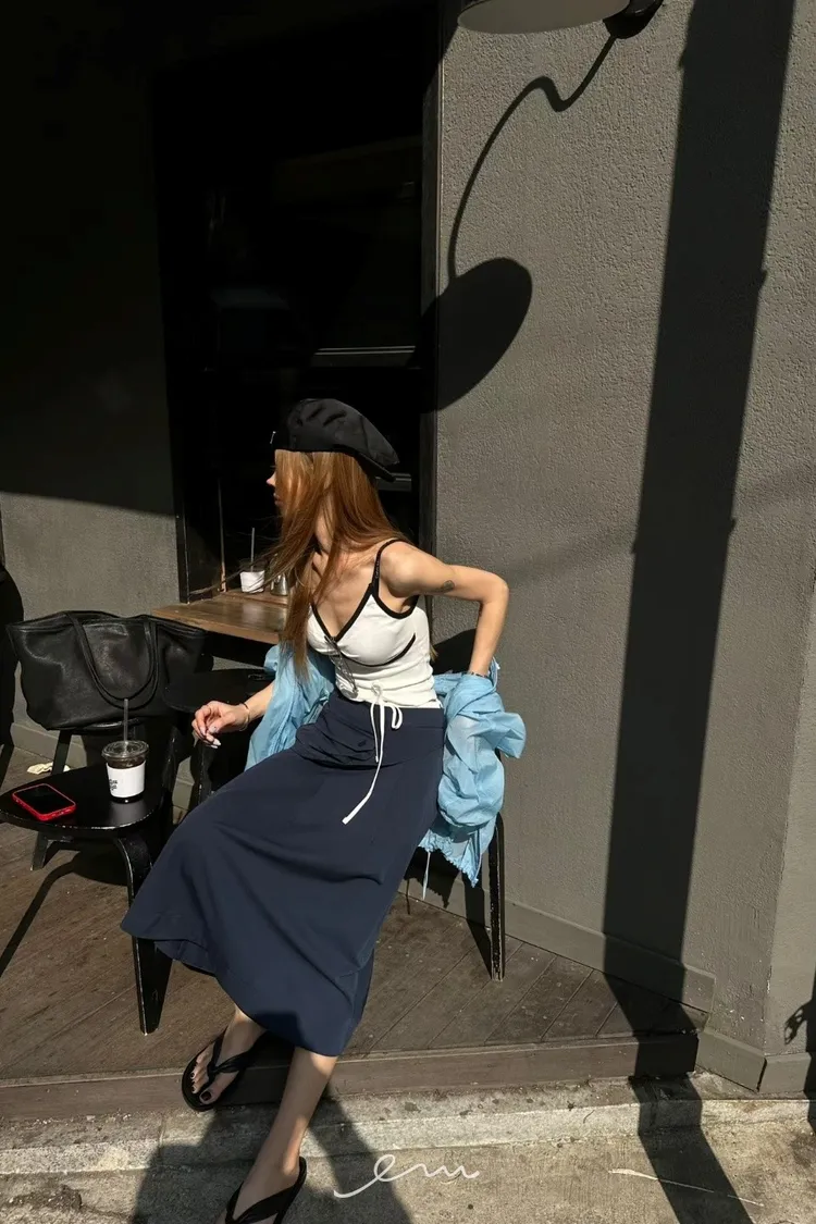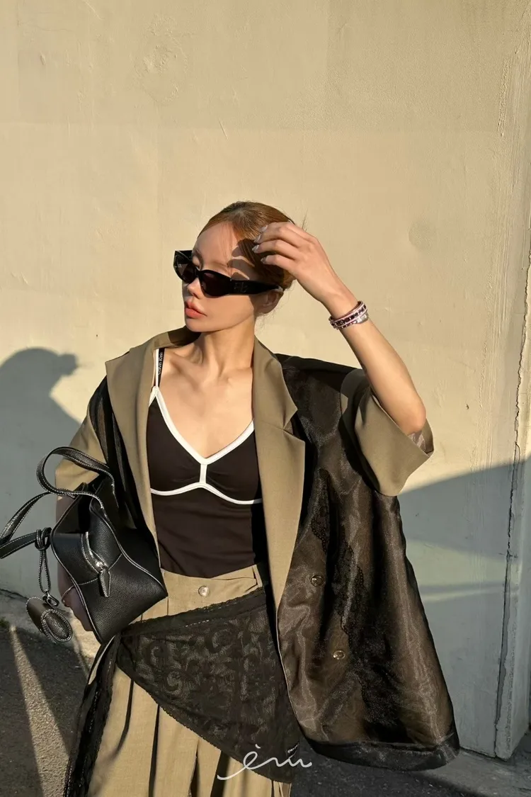 ZERO撞色邊抓皺細肩背心(肉0清單)
