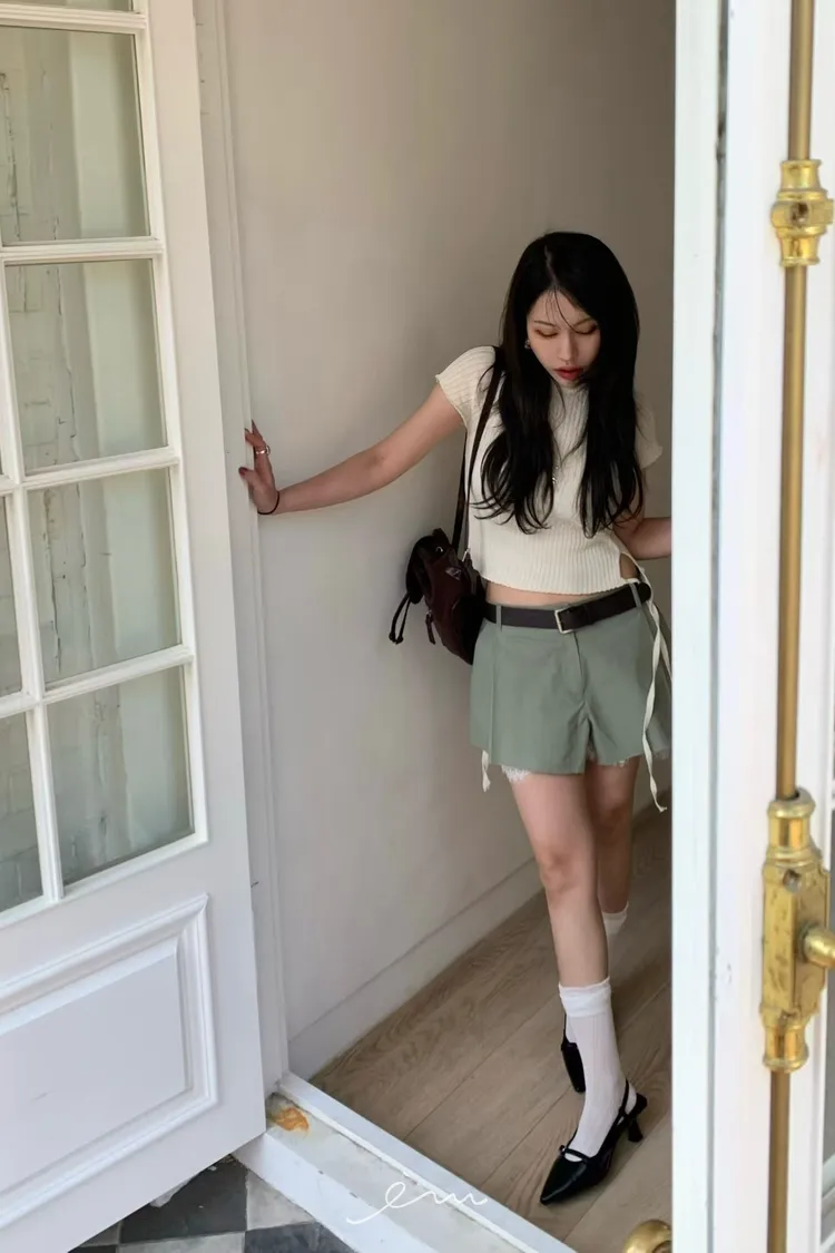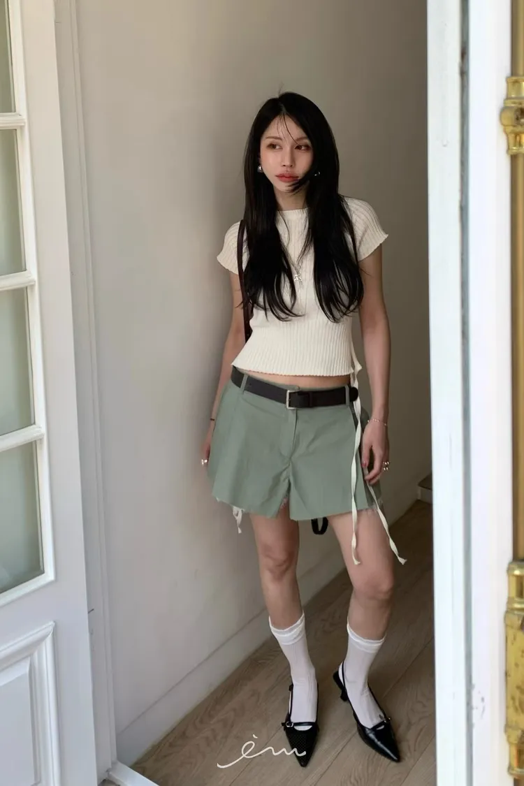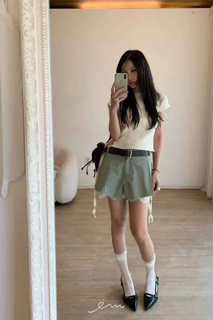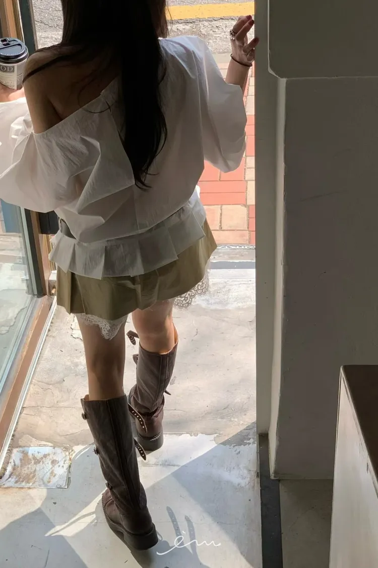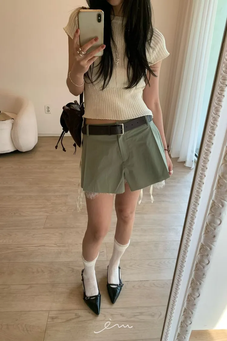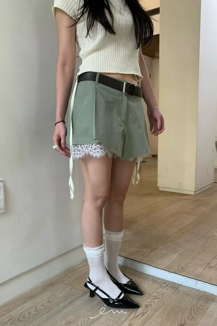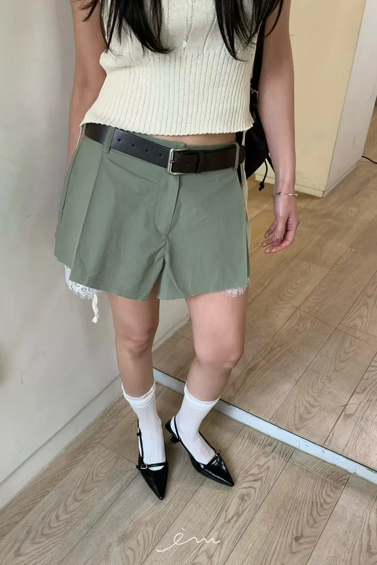 BER下拼蕾絲隱藏釦褲裙