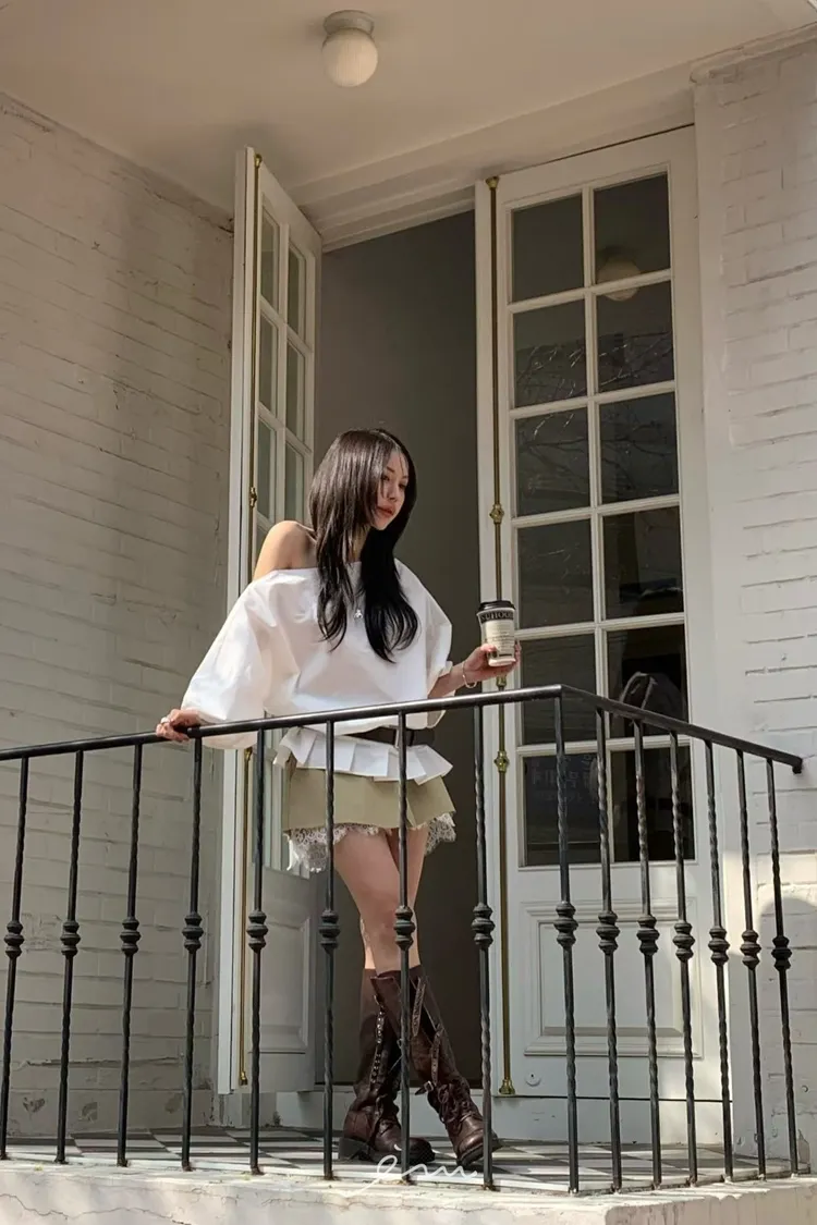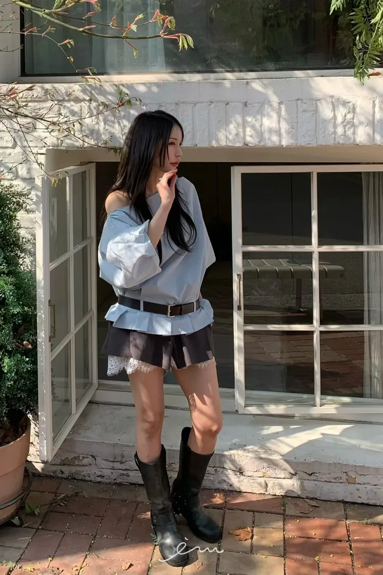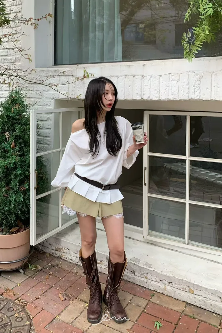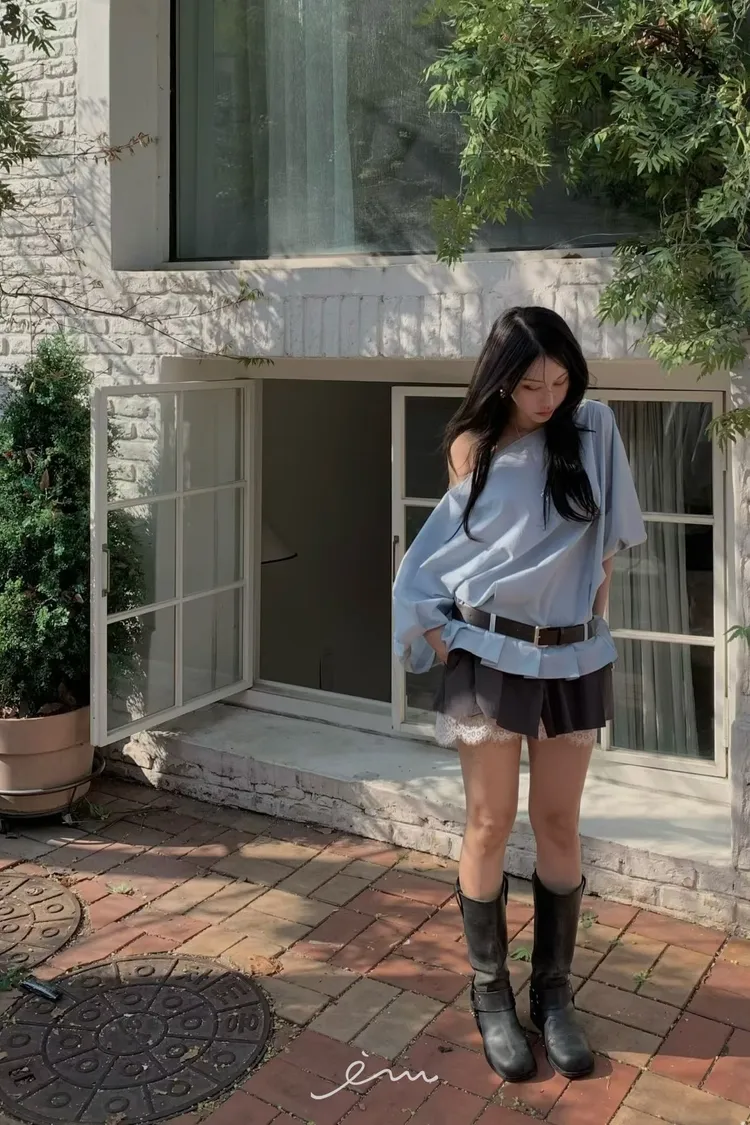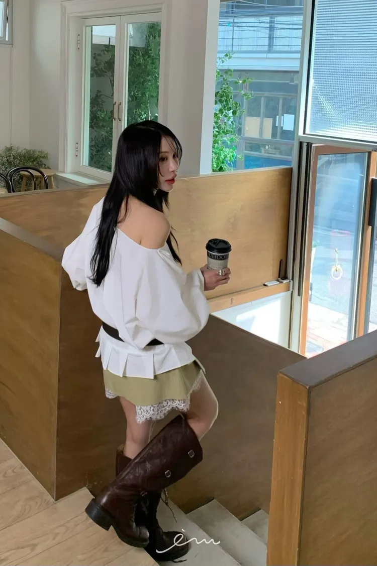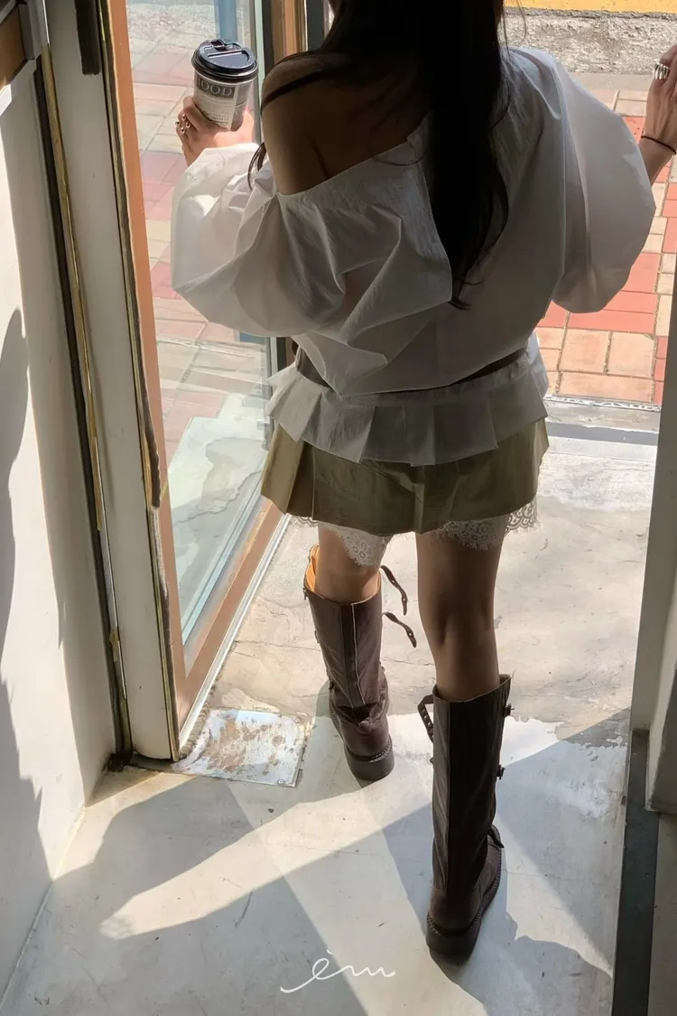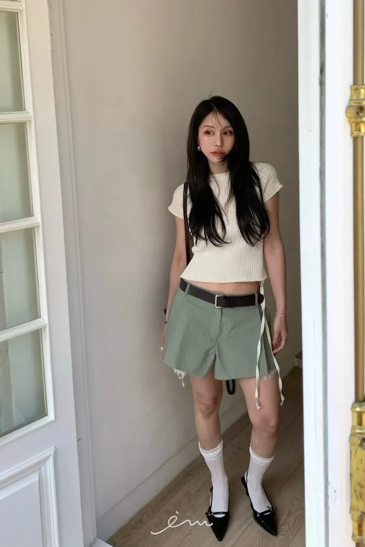 BER下拼蕾絲隱藏釦褲裙