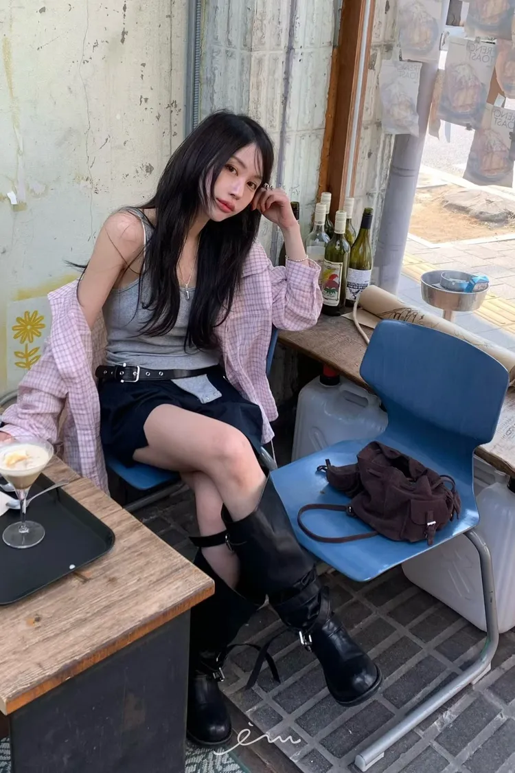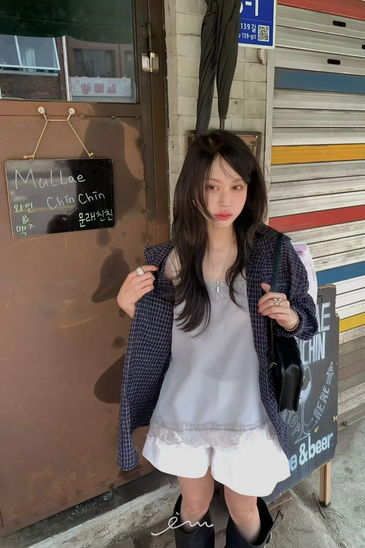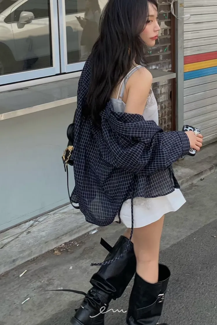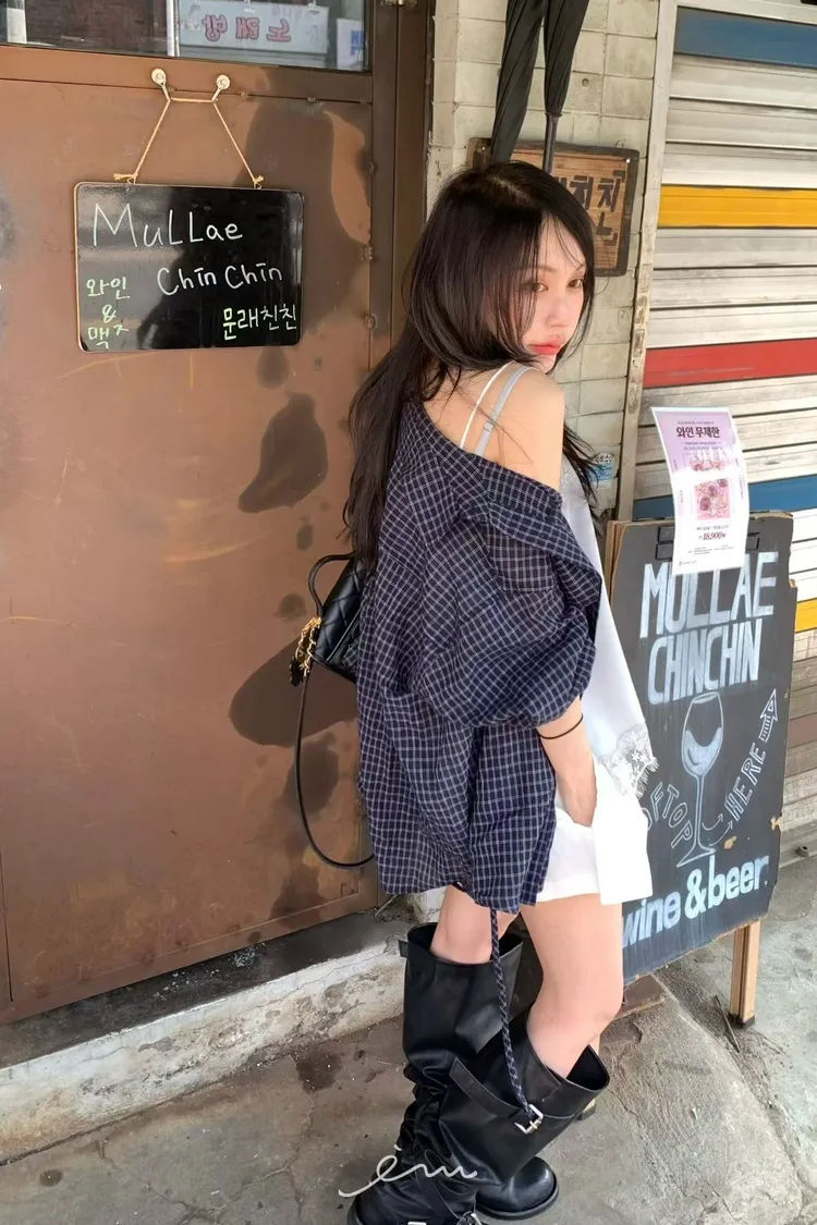 BER繩子+蓋式雙口袋格紋襯衫