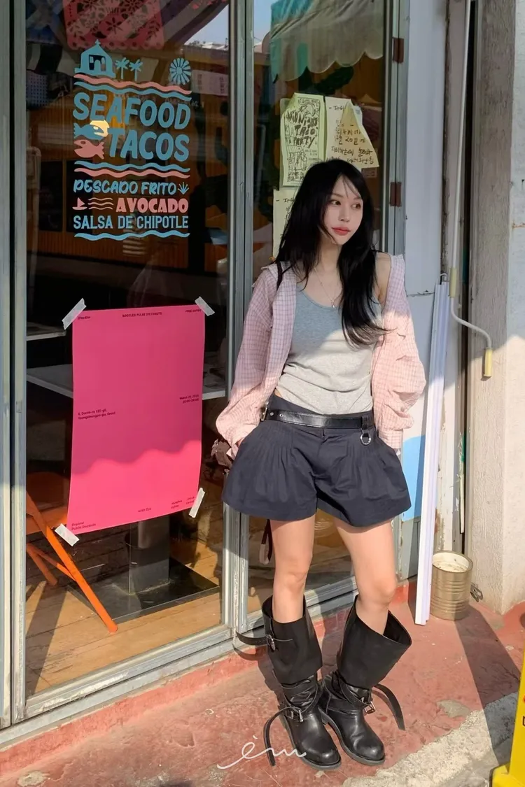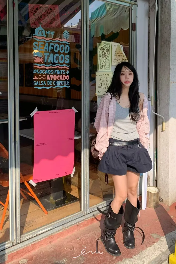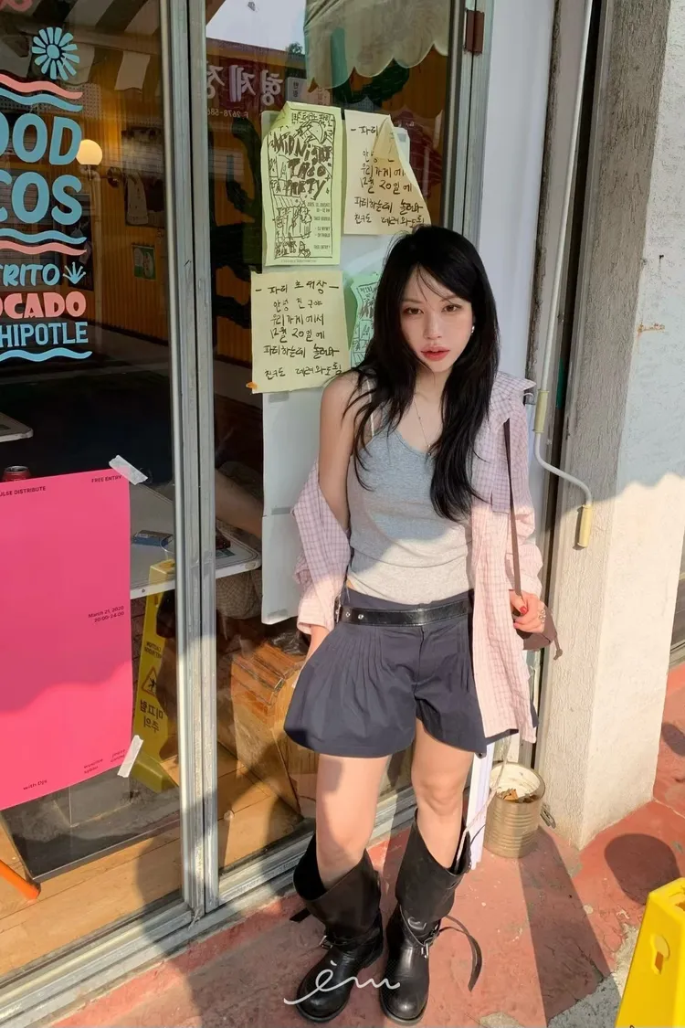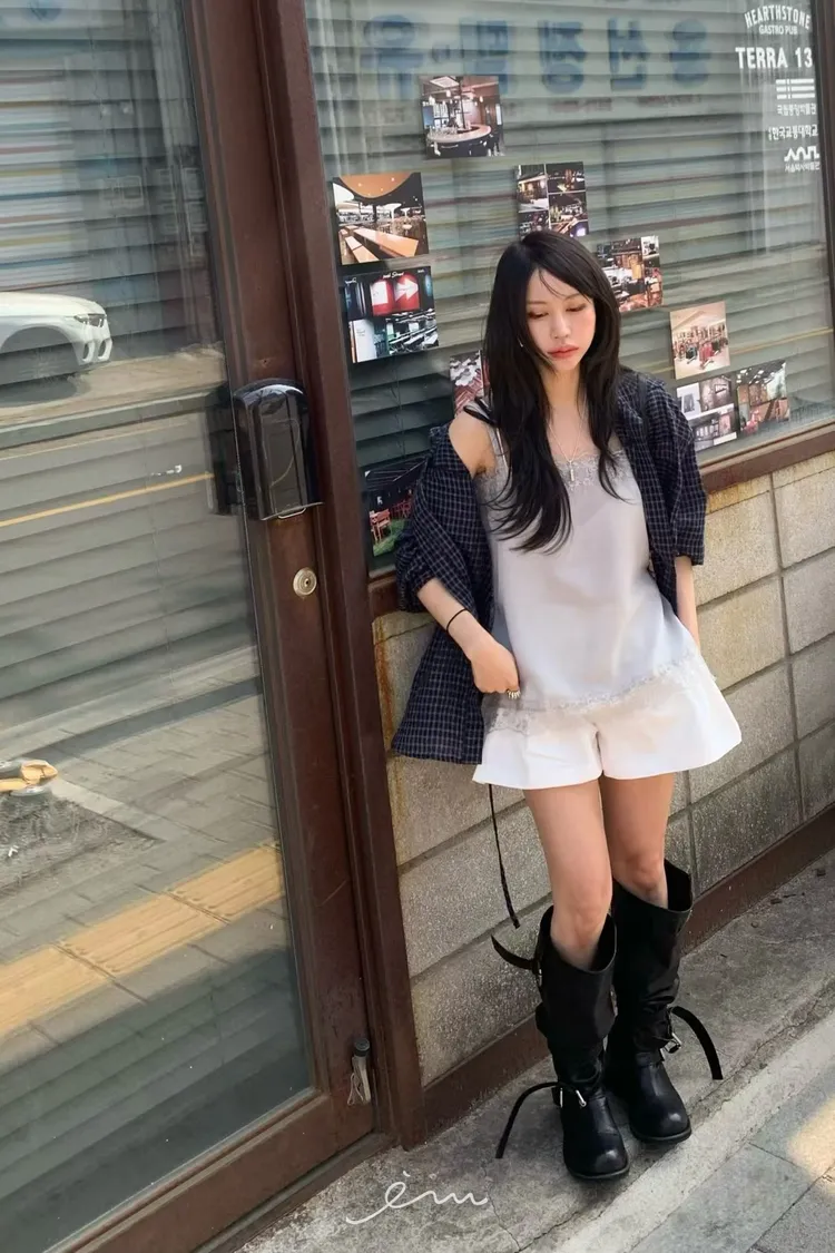 BER繩子+蓋式雙口袋格紋襯衫