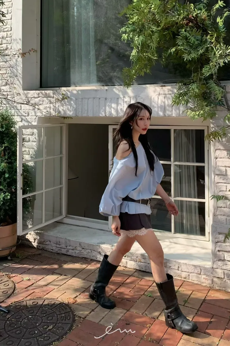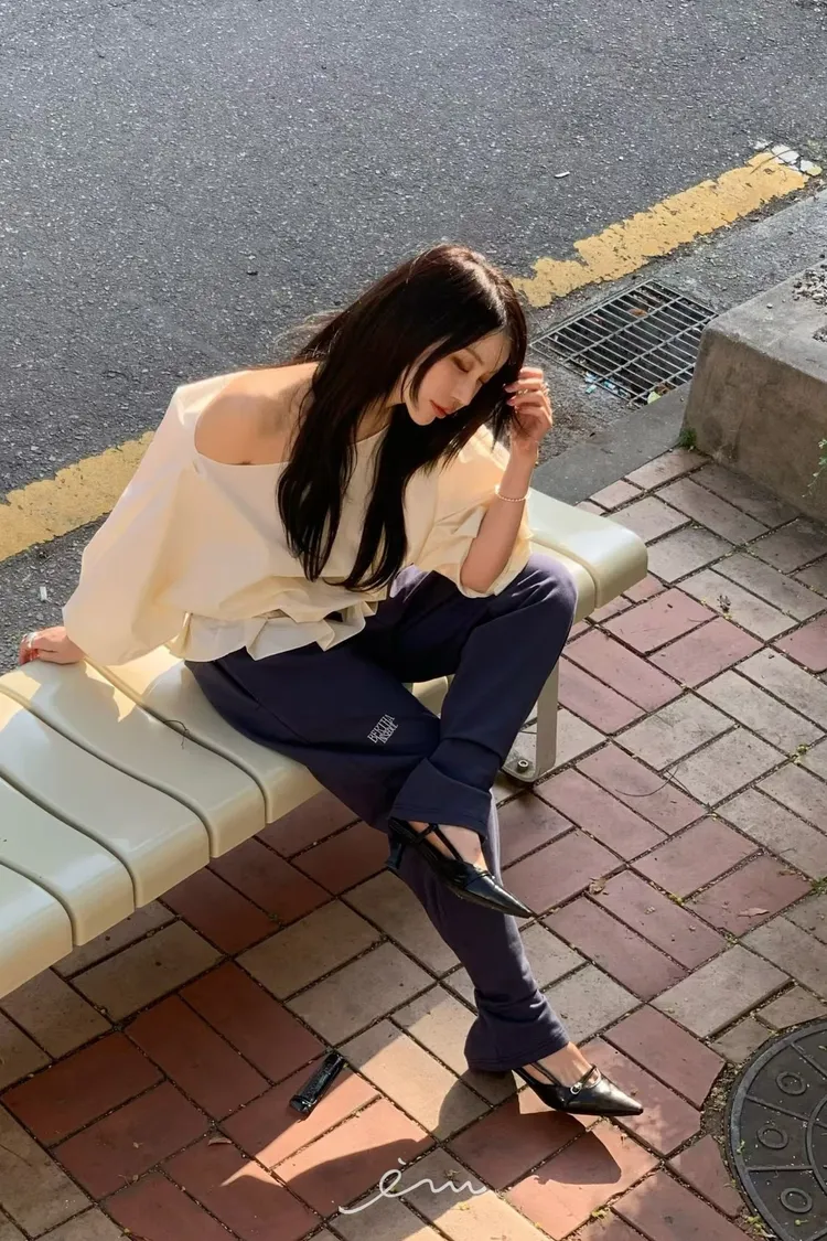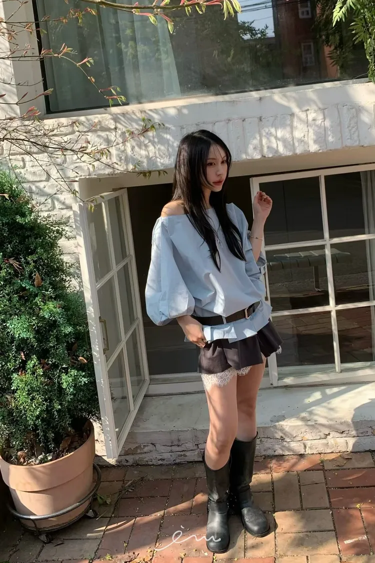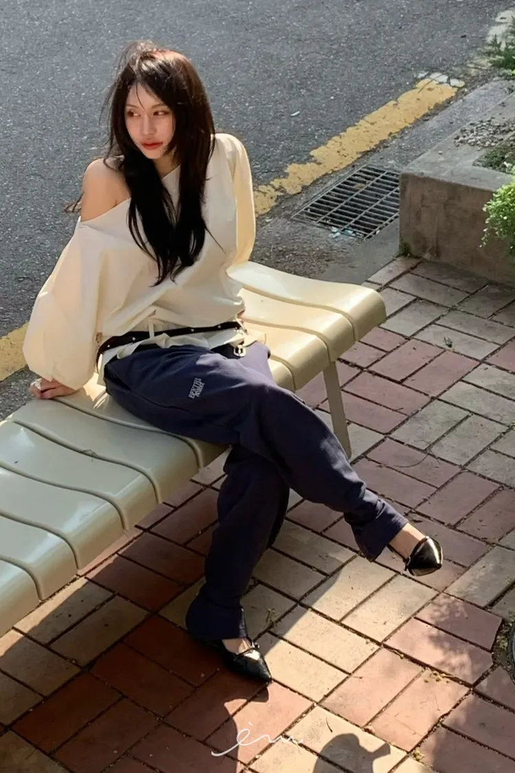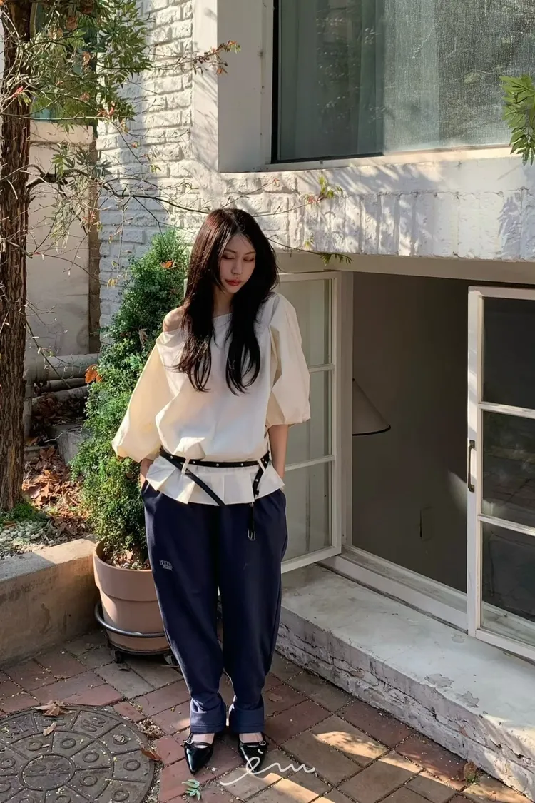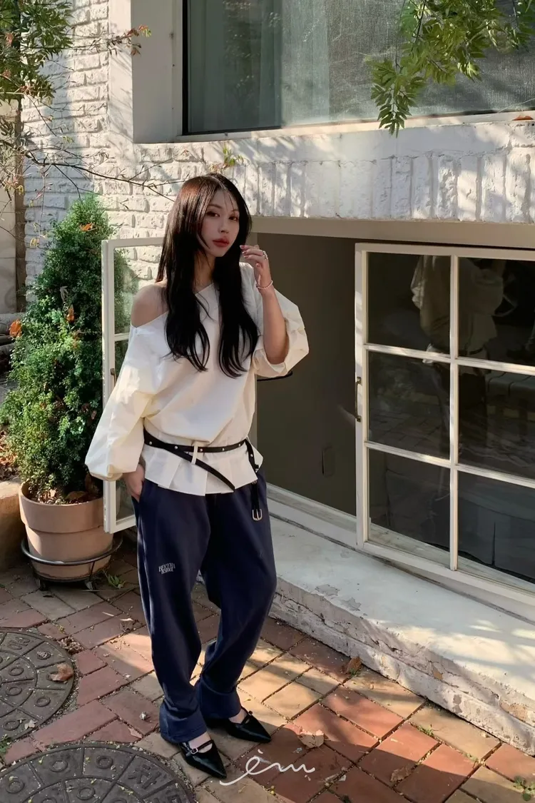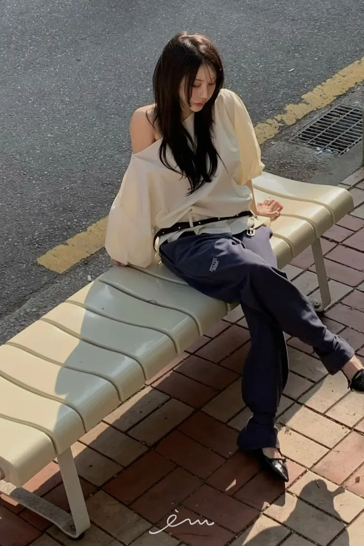 BER下擺摺腰帶環斜肩上衣