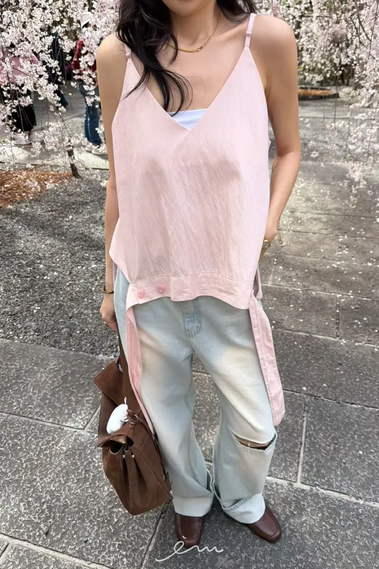 SOL下挖洞鈕釦V領細肩背心