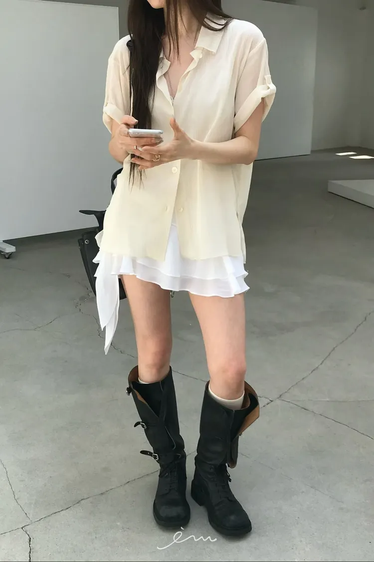 NU反摺手袖鈕釦襯衫