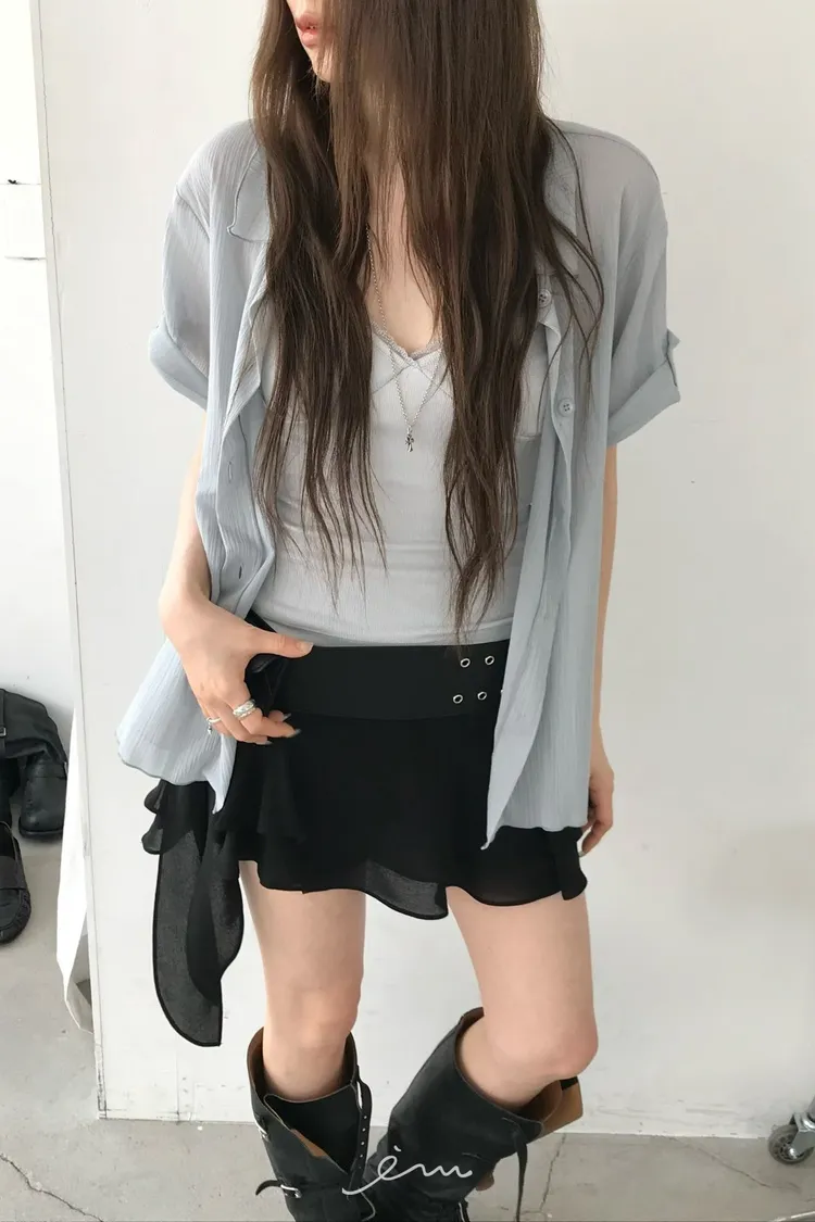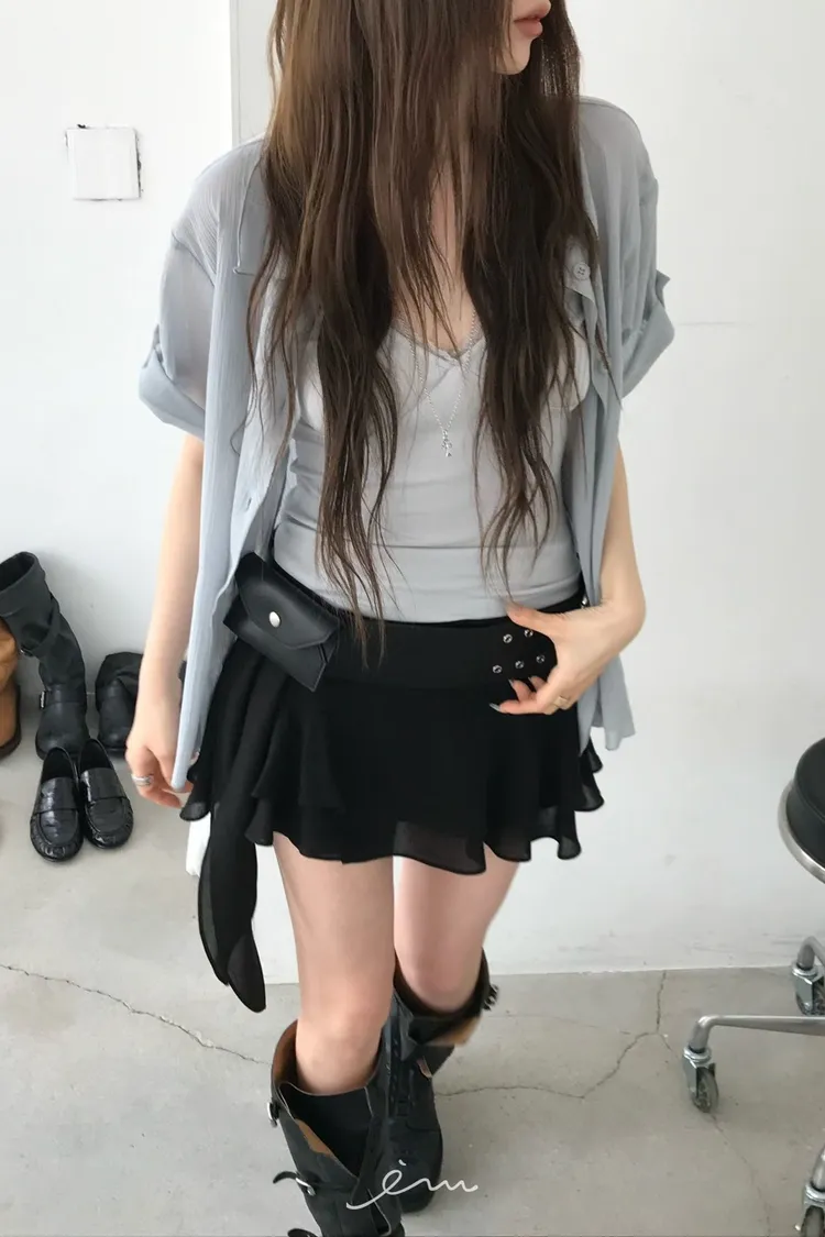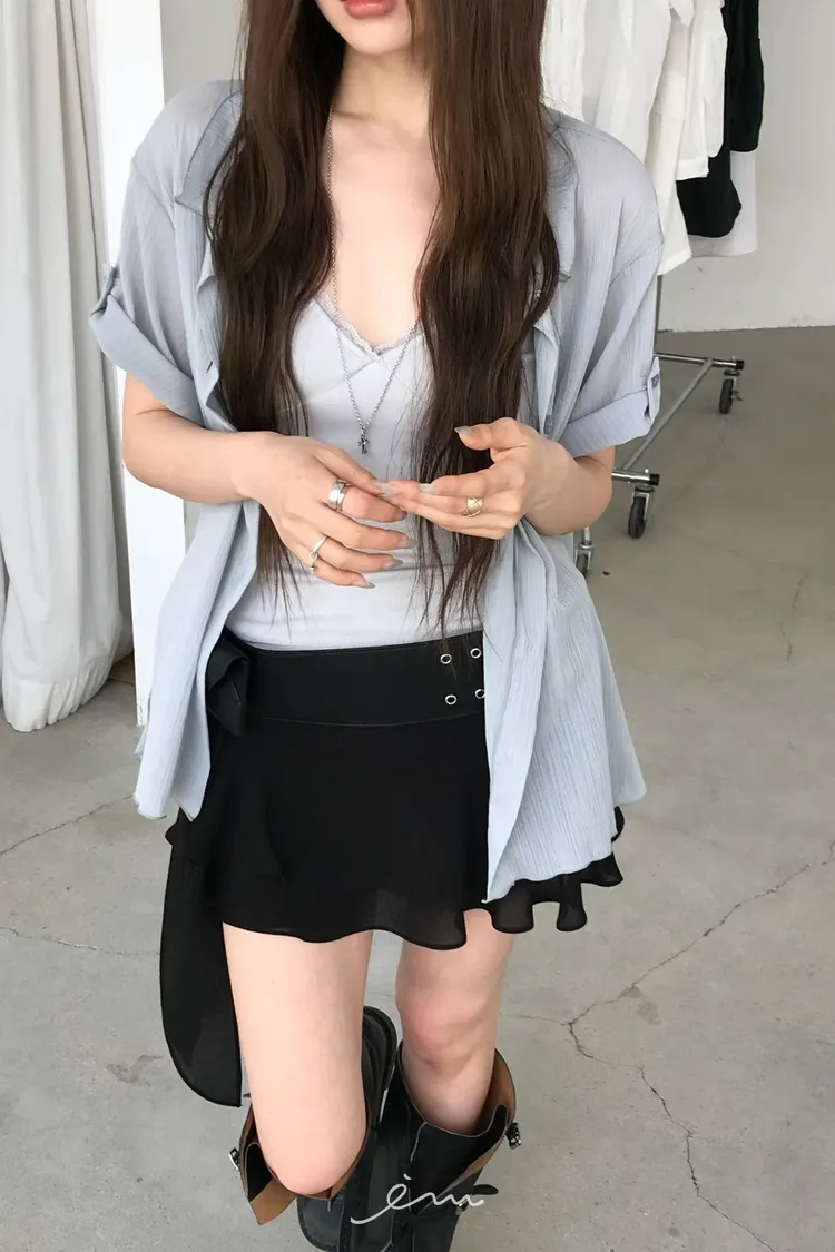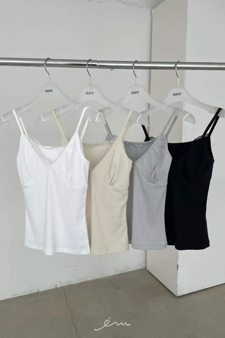 NU拼蕾絲胸抓皺細肩背心