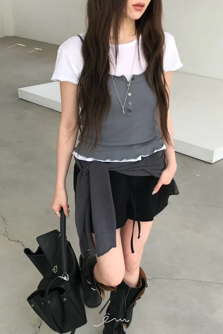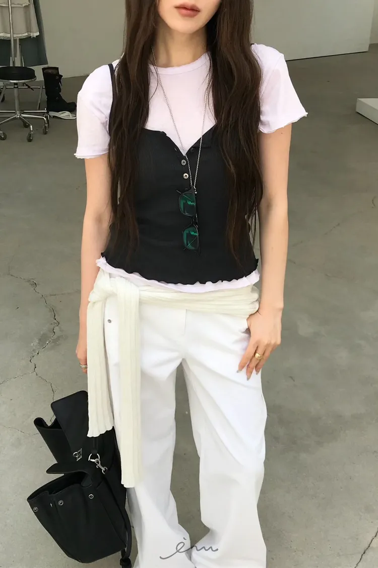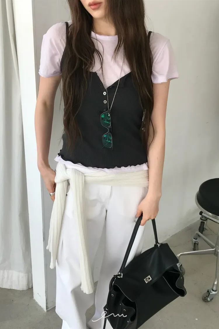 NU不修邊圓領素T