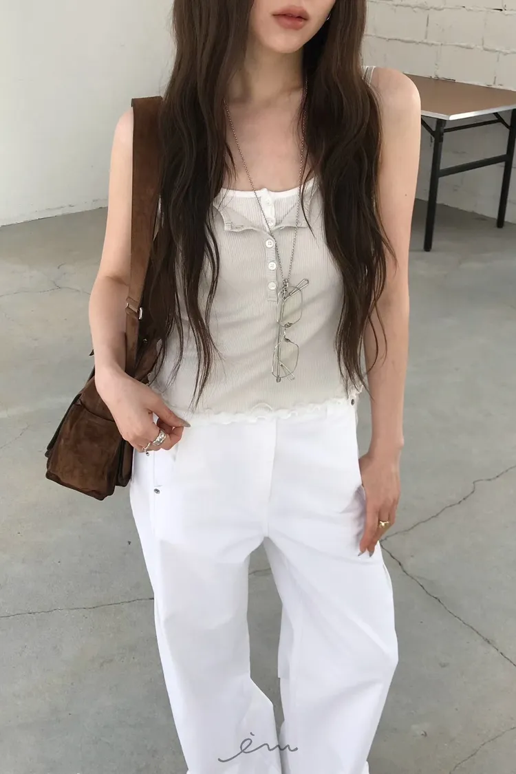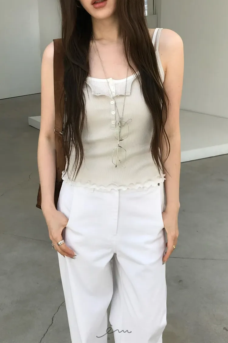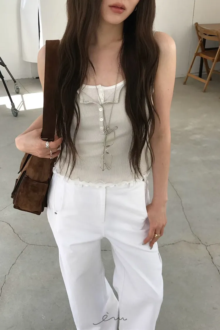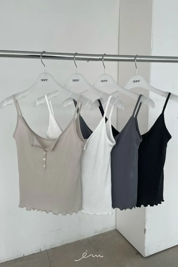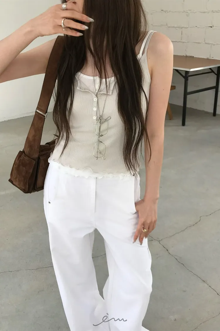 NU下捲邊鈕釦細肩背心(肉0清單)