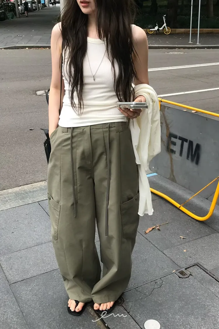 NU鈕釦口袋抽繩長褲