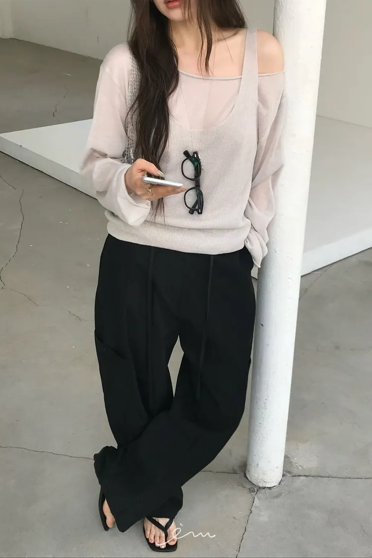 NU兩件式亞麻料素面衣